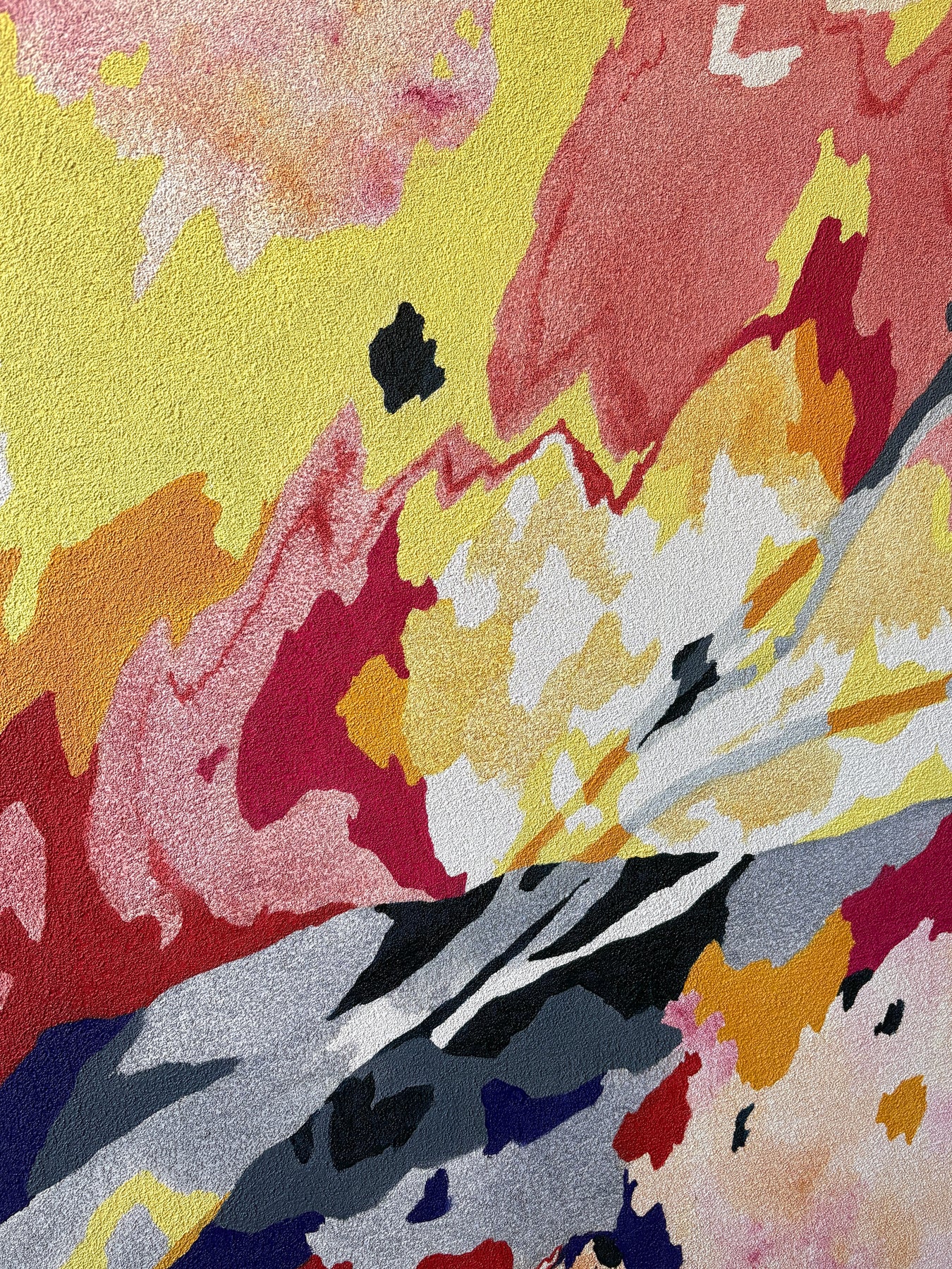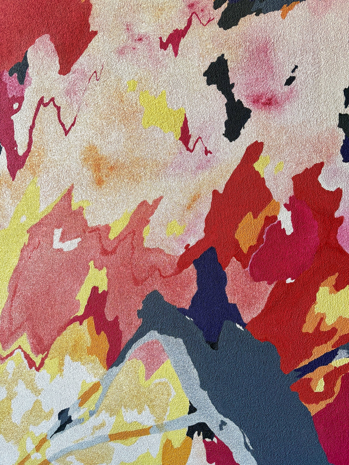 Erin Touey’s work straddles the line between abstraction and representation in her new series of pumice-primed canvas oil paintings. Touey utilizes fluid shapes, variation of line weight, non representational color, distortion of perspective, and in this series, the texture of the pumice primed canvas to bring her often tangible subject matter into the abstract realm. With a limited palette consisting only of Phthalo Blue, Cadmium Yellow, and Quinacridone Magenta, Touey challenges herself to mix all of her colors. The white of the canvas is preserved deliberately, the negative space making shapes that sometimes jump forward or fall back.