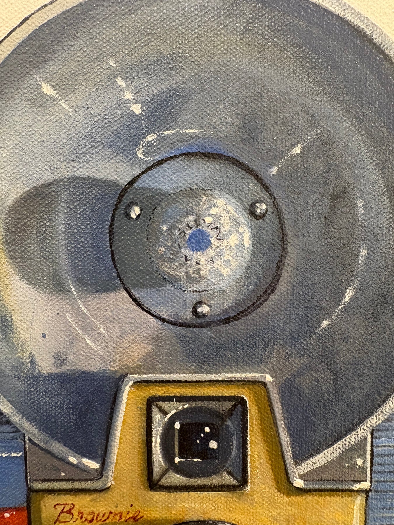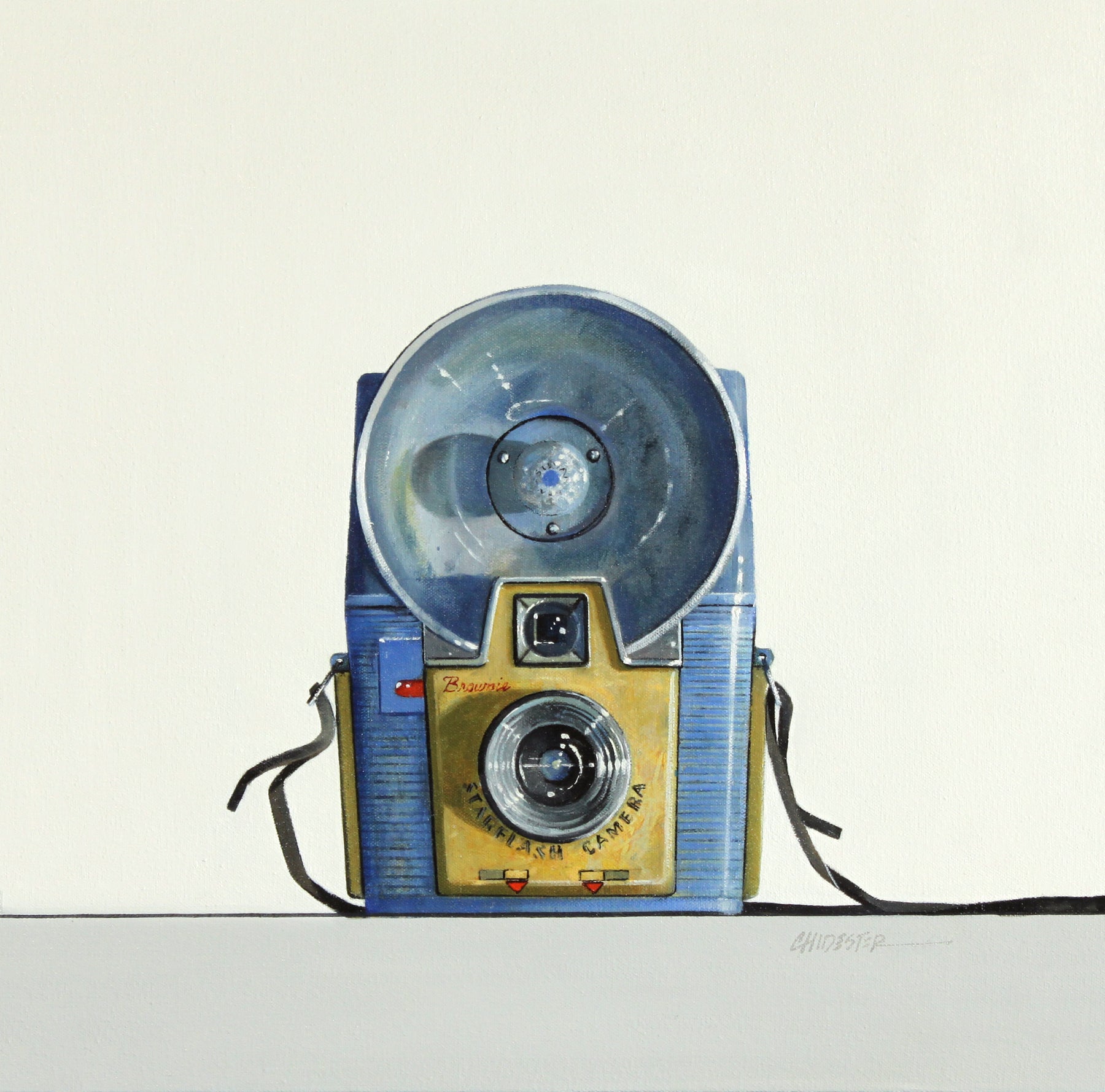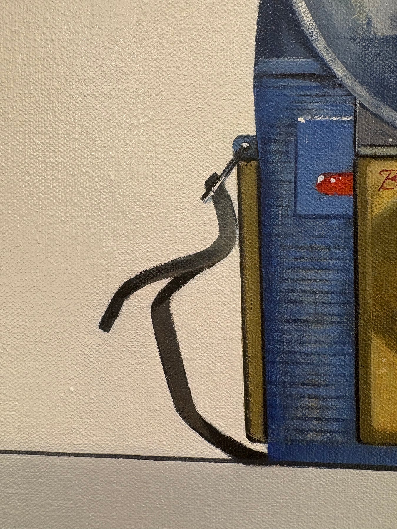 In her gorgeous photo-realistic still-lifes, American oil painter Wendy Chidester pays homage to lost relics of the past. Artifacts like vintage cameras and projectors, 40’s trunk luggage, bubblegum machines, childrens’ pedal cars and tricycles, and old telephones and typewriters are represented nostalgically in her work. She frames these objects as icons, memorializing the color and ingenuity of the past.