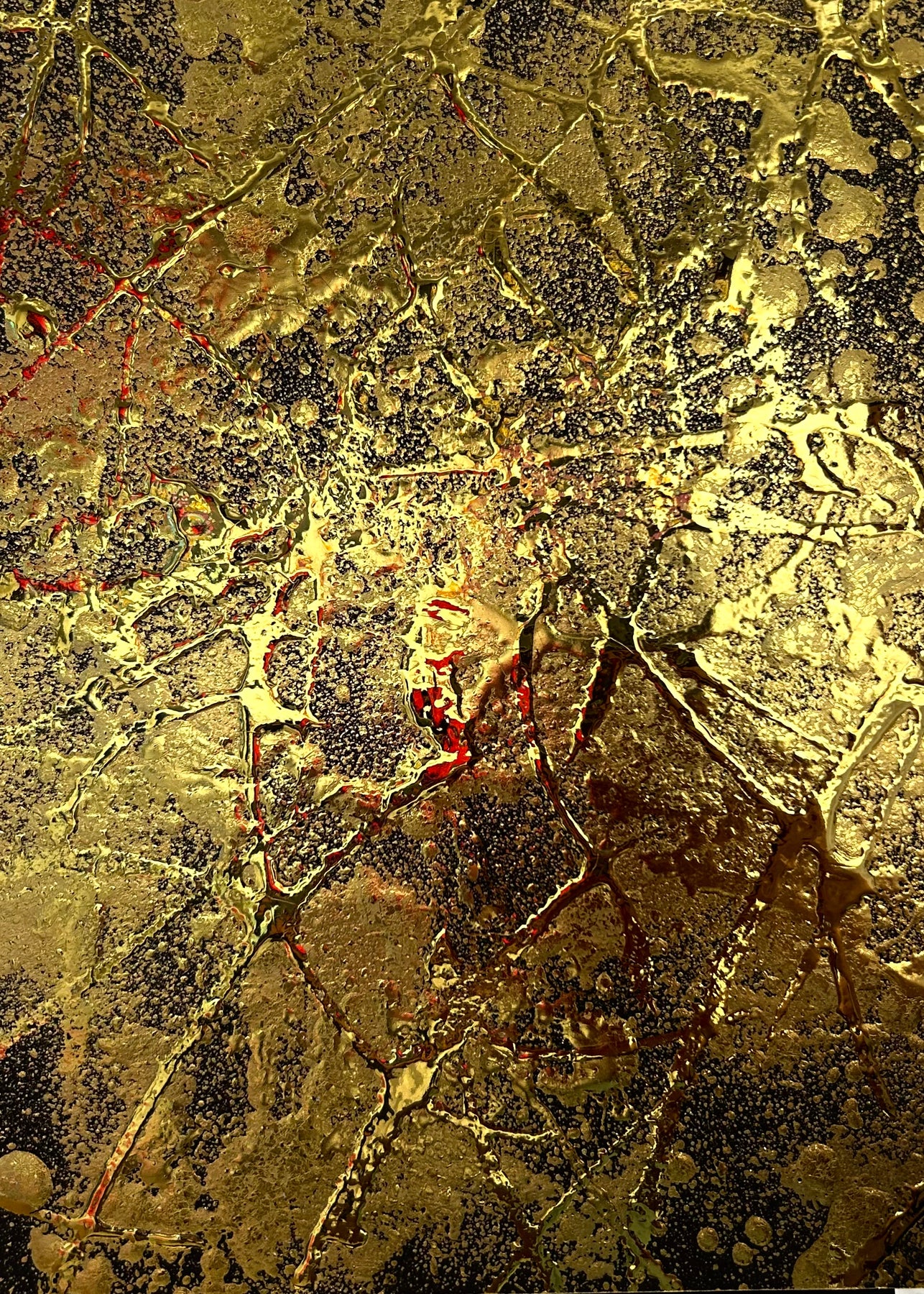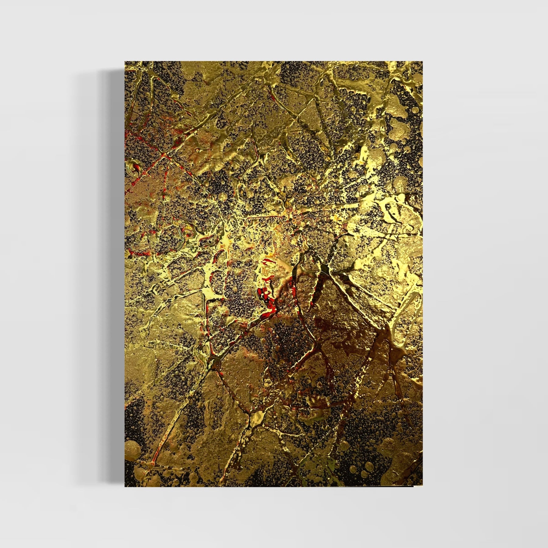 NYC based artist, M. Clark, creates light-reflecting works wherein the artist manipulates heat and pressure to fix metallic foil onto various surfaces -- there is no paint on her artworks, only gold, copper, or silver foil. Clark often uses a palette knife to help texturize her highly reflective, modern and minimalist works of art.