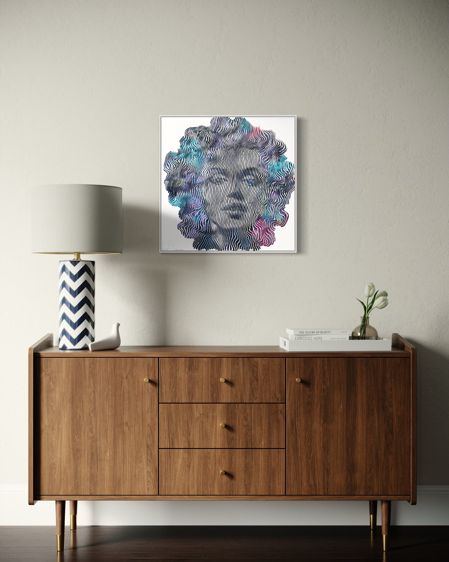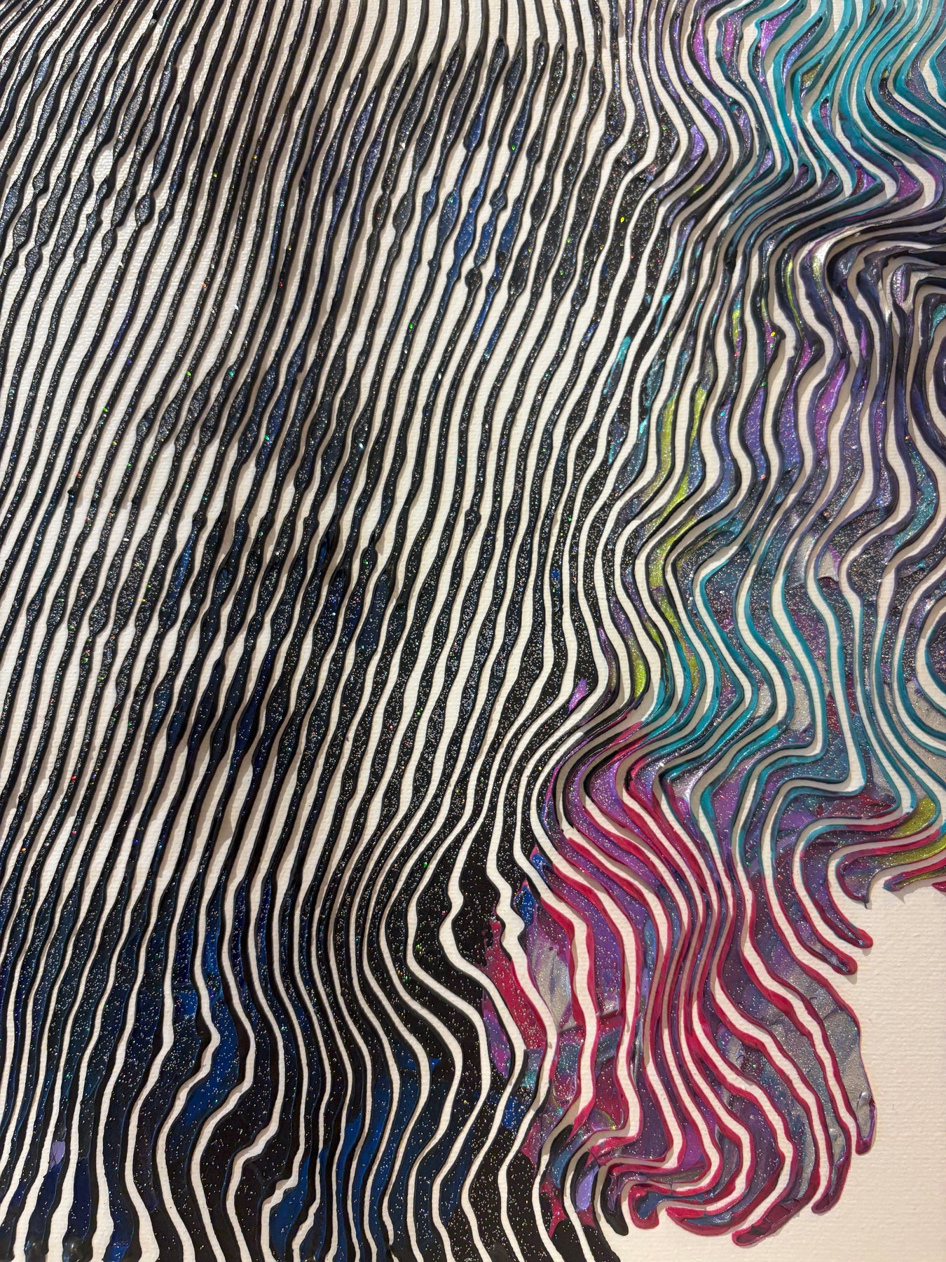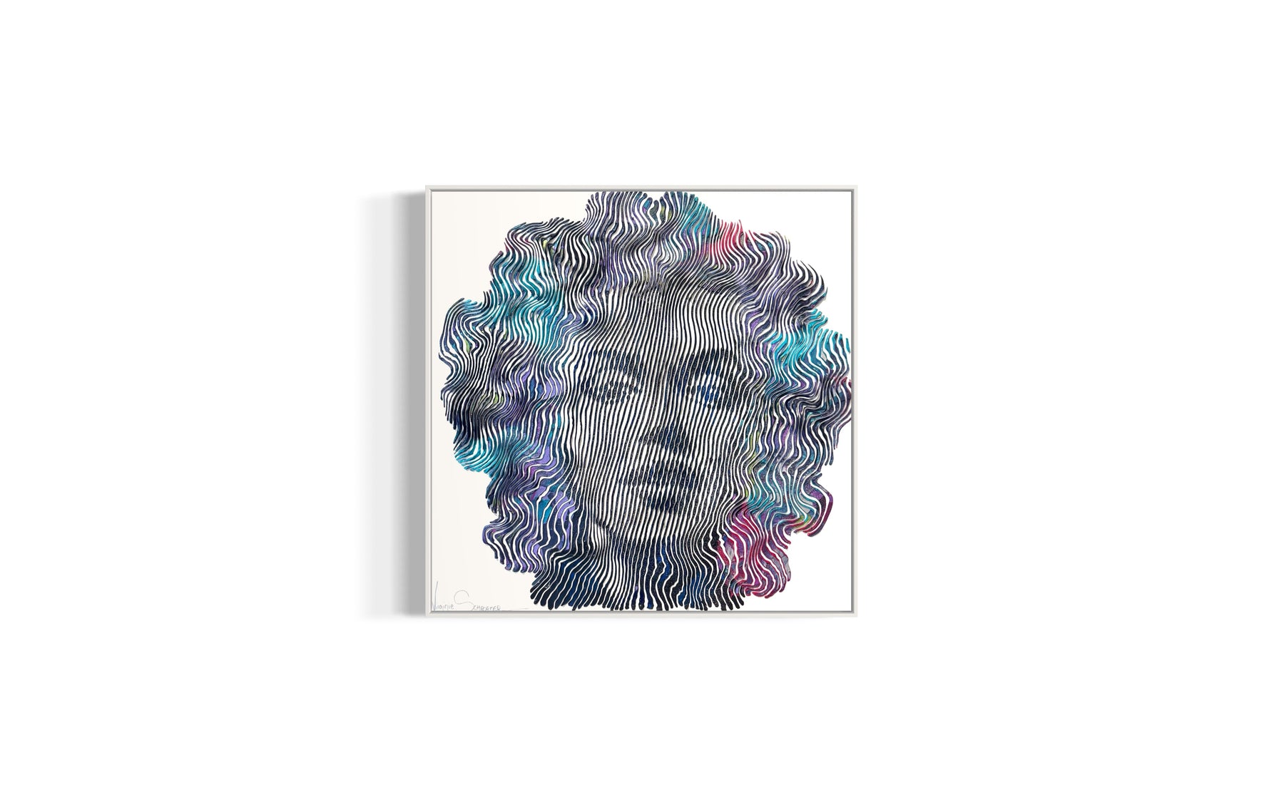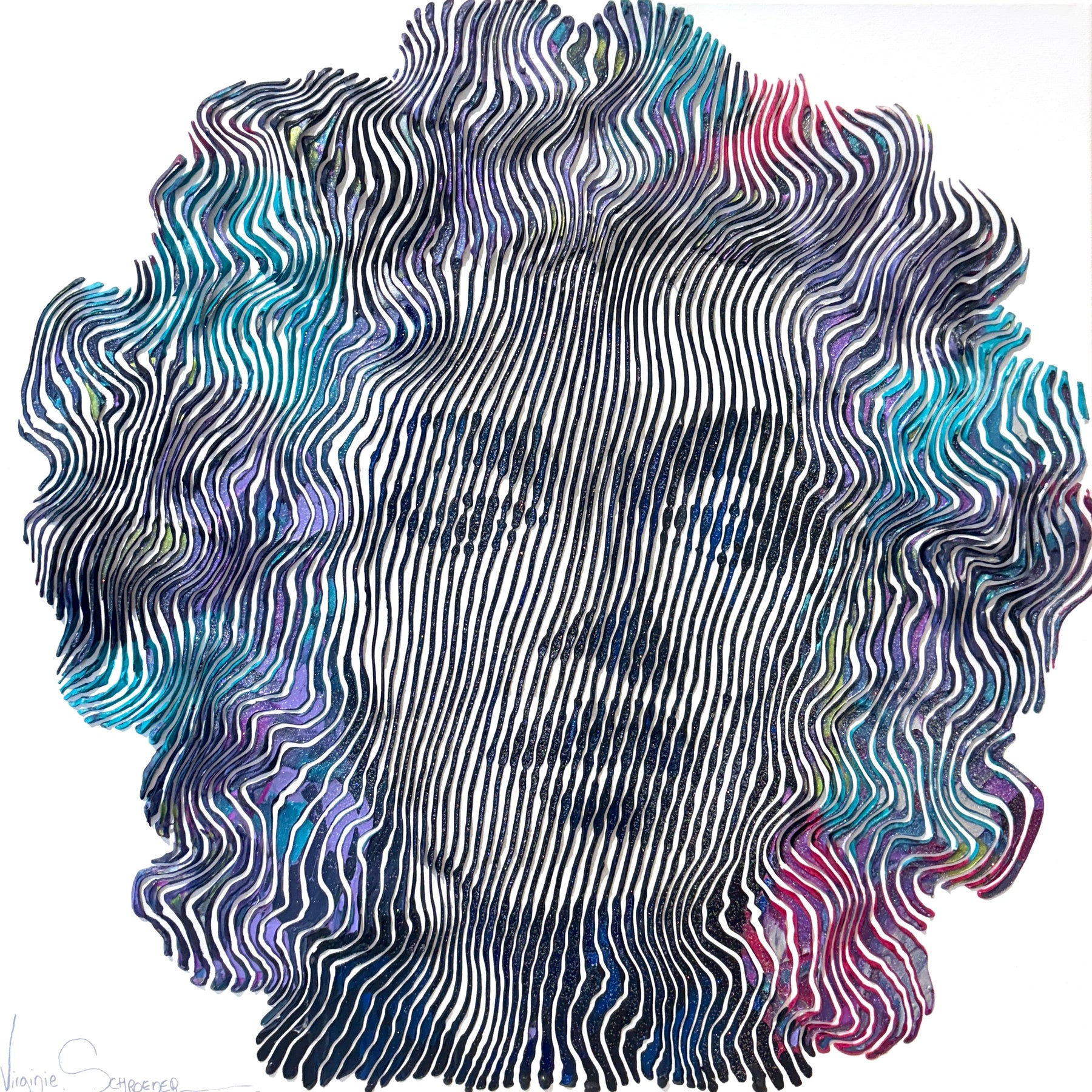 Virginie Schroeder's work is a mix of pop, street, and kinetic art that pays homage to contemporary icons. Her paints are applied with a knife, brush, and syringe that are delicately blended to bring out colorful details full of depth. Her work is conceived line by line; painted, and sculpted with patience and a lot of passion. This series is inspired by the kinetic art movement which allows us to experience the work from several angles.