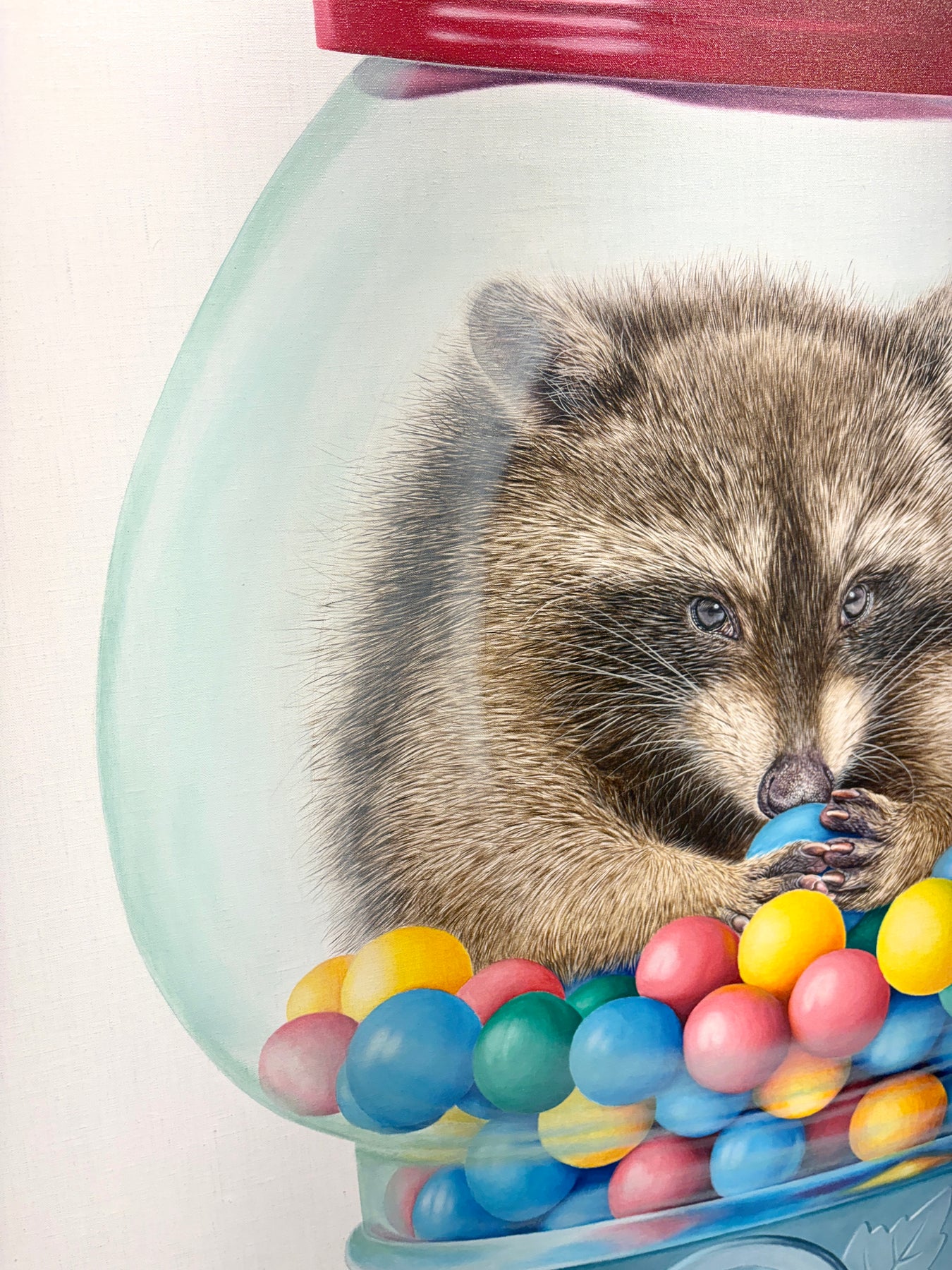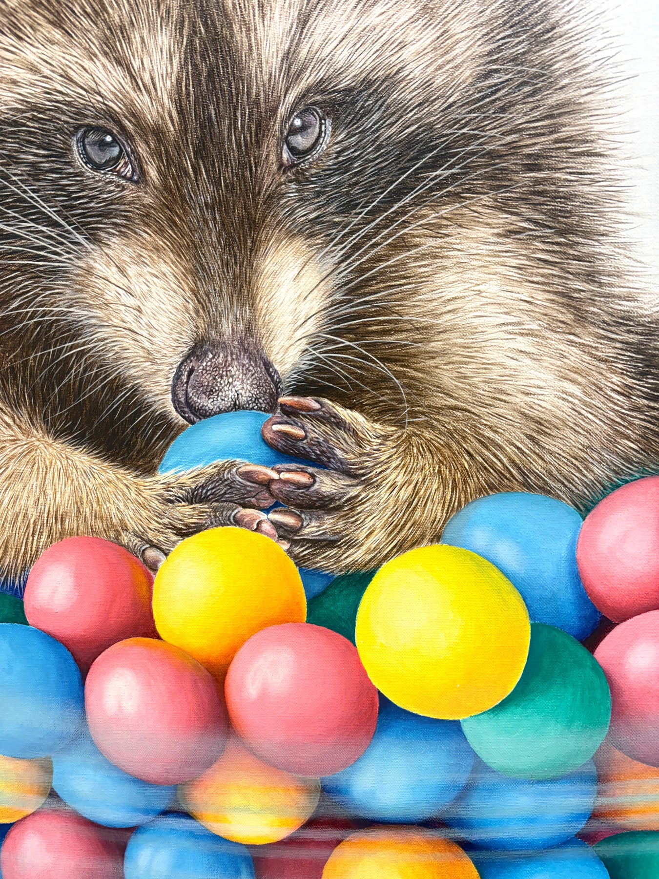 Guy de Potesta's surreal, dream-like canvases reveal the unsettling realities of a world undergoing rapid environmental degradation. Known for pairing wildlife with human-made objects in humorous, improbable ways, de Potesta uses absurdity not as escape but as a sharp lens on a natural world increasingly strained by human materialism.