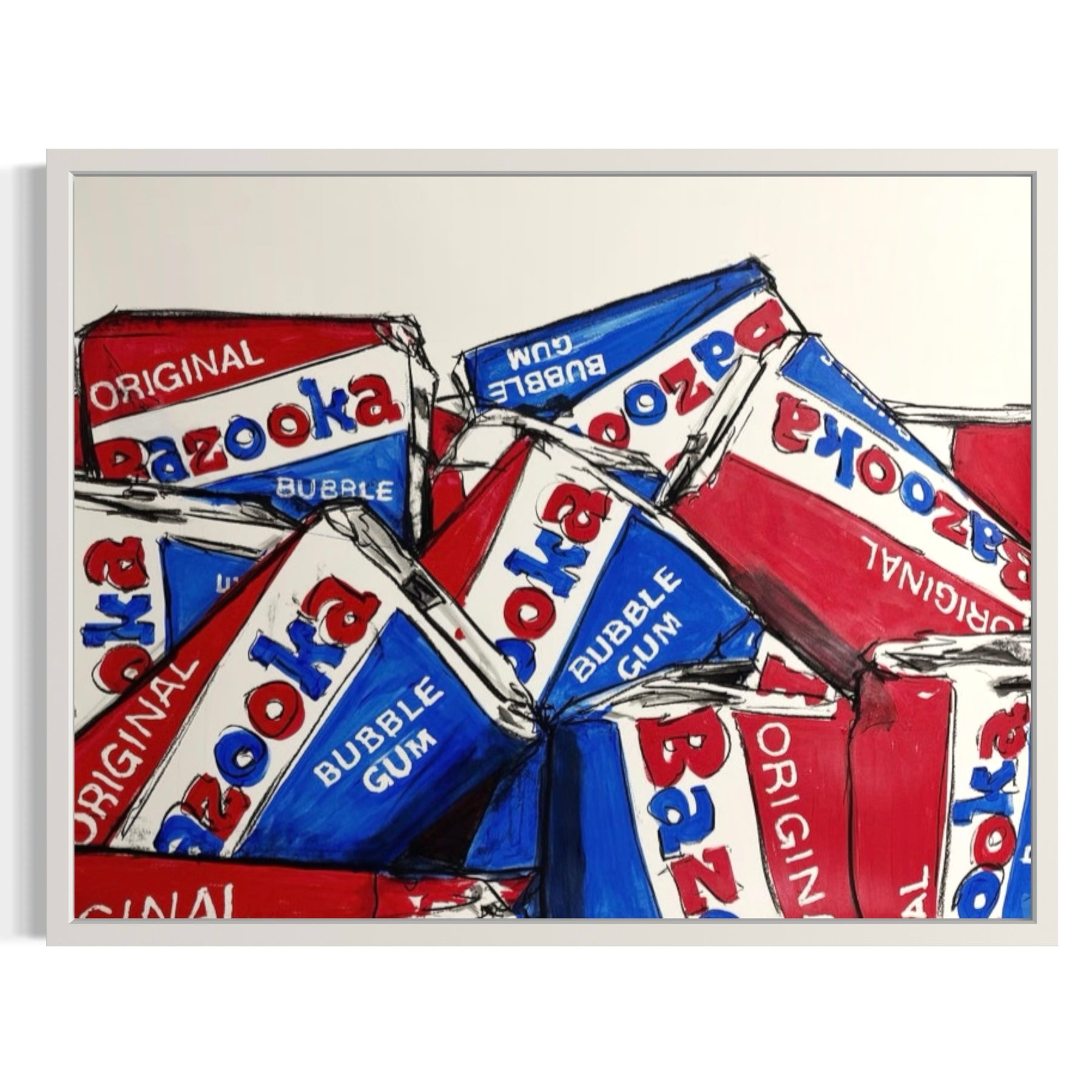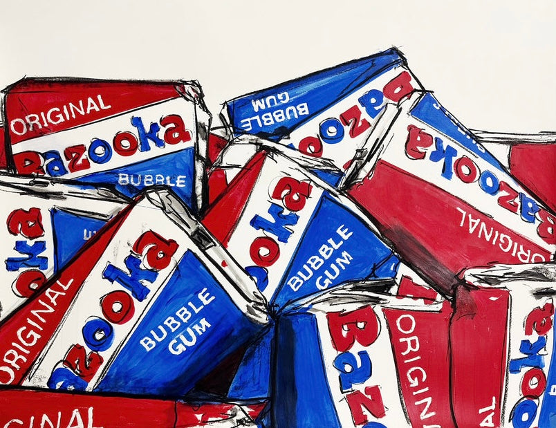 As a form of commentary on cultural recognition, ubiquity, and community, Cabrer elevates popular culture and symbols to the level of contemporary fine art. For example, the artist paints minimalist retro candies such as Life Savers, Bazooka Bubble Gum, and Blow Pop Lollipops with distinct patterns, bold colors, and texture. Using acrylic on panel, Cabrer paints with strong, dark lines and tropical colors, situating recognizable symbols in a white, raw space that sits on the flat surface of the panel. Cabrer engages with a conceptual approach to nostalgia of the 80s and 90s, repositioning popular culture and framing the memorabilia to be seen in new and unique ways. He sits within a line of contemporary greats, such as Andy Warhol of the Pop Art movement, using icons to reflect on social processes.