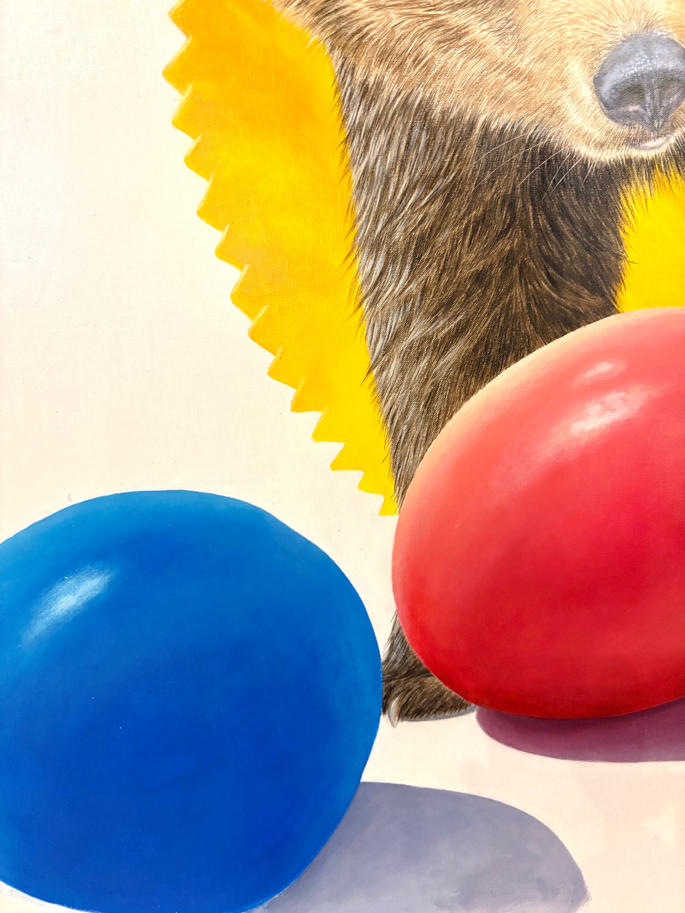 Guy de Potesta's surreal, dream-like canvases reveal the unsettling realities of a world undergoing rapid environmental degradation. Known for pairing wildlife with human-made objects in humorous, improbable ways, de Potesta uses absurdity not as escape but as a sharp lens on a natural world increasingly strained by human materialism.