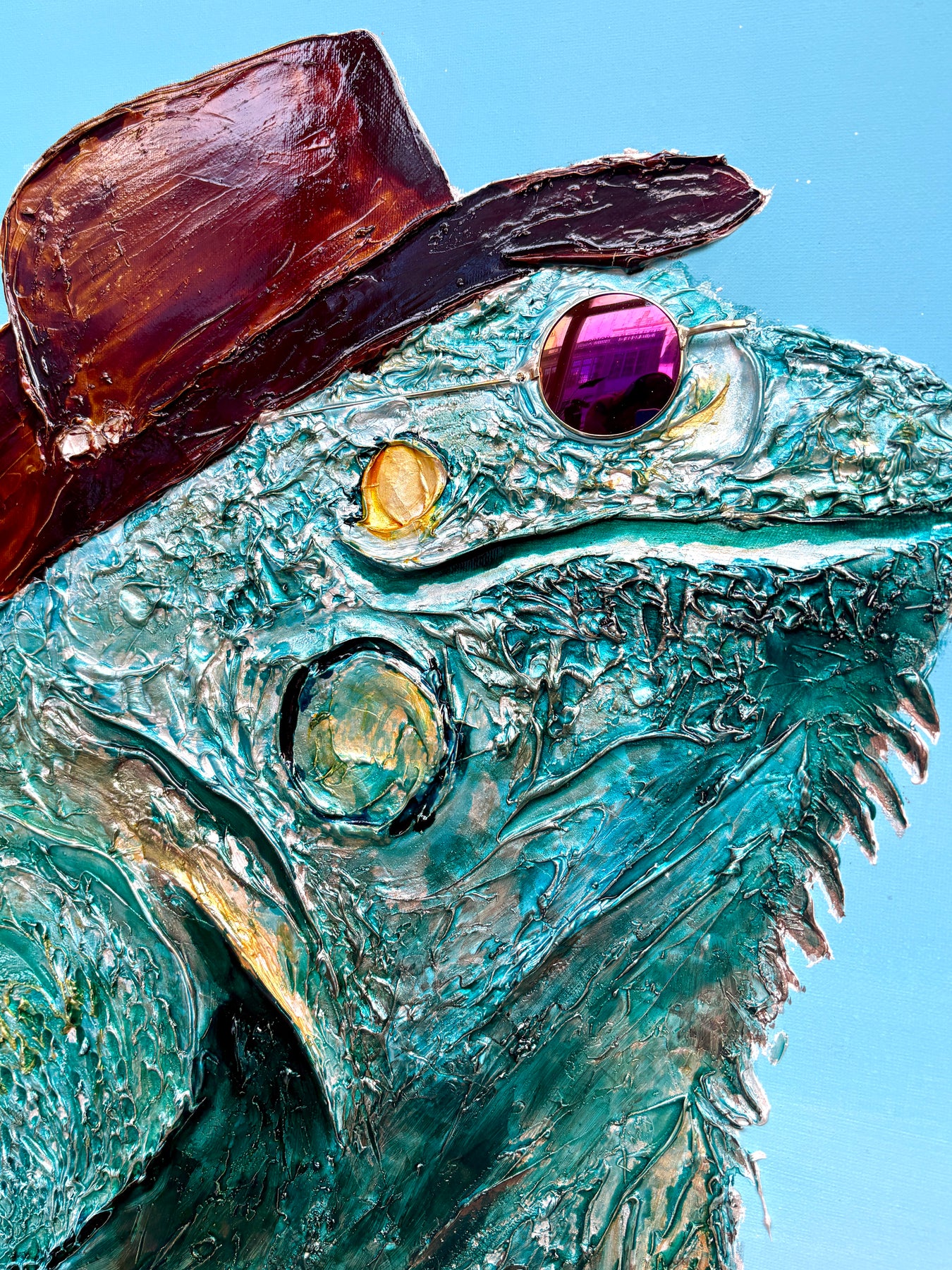 French graphic designer, illustrator, and painter Moogly creates semi-abstract "humanimal" portraits. His textured, splattered animals have oddly complex human expressions from bewilderment to apathy. Using acrylic, lacquer, and resin, he positions the monochromatic characters against a black void, allowing the eyes, marked by two machine washers, to speak. Moogly is deeply ashamed of the environmental harm caused by humans, so he allows animals to reflect this emotional damage back at us.