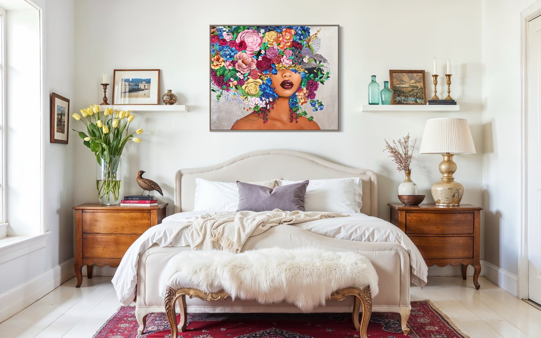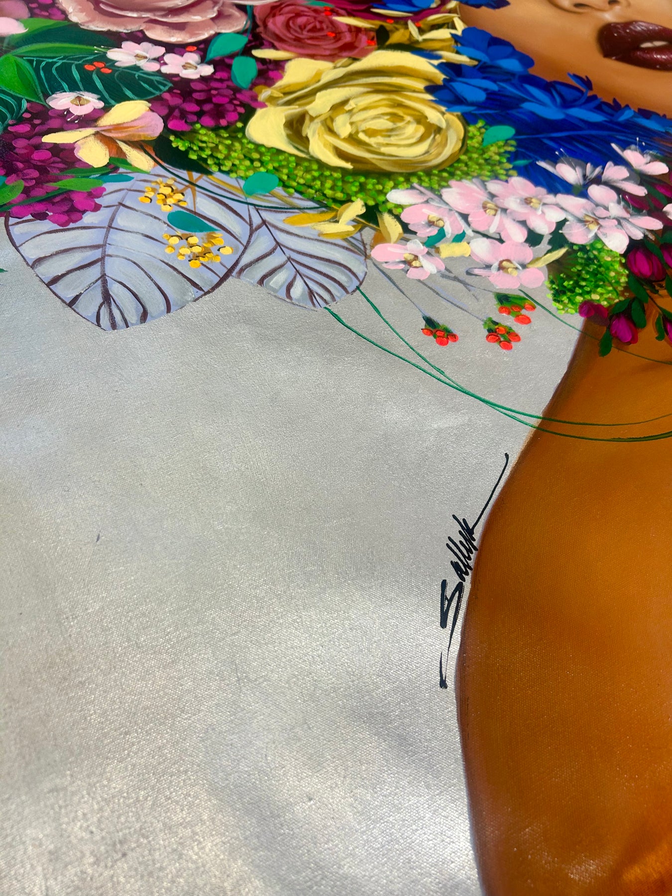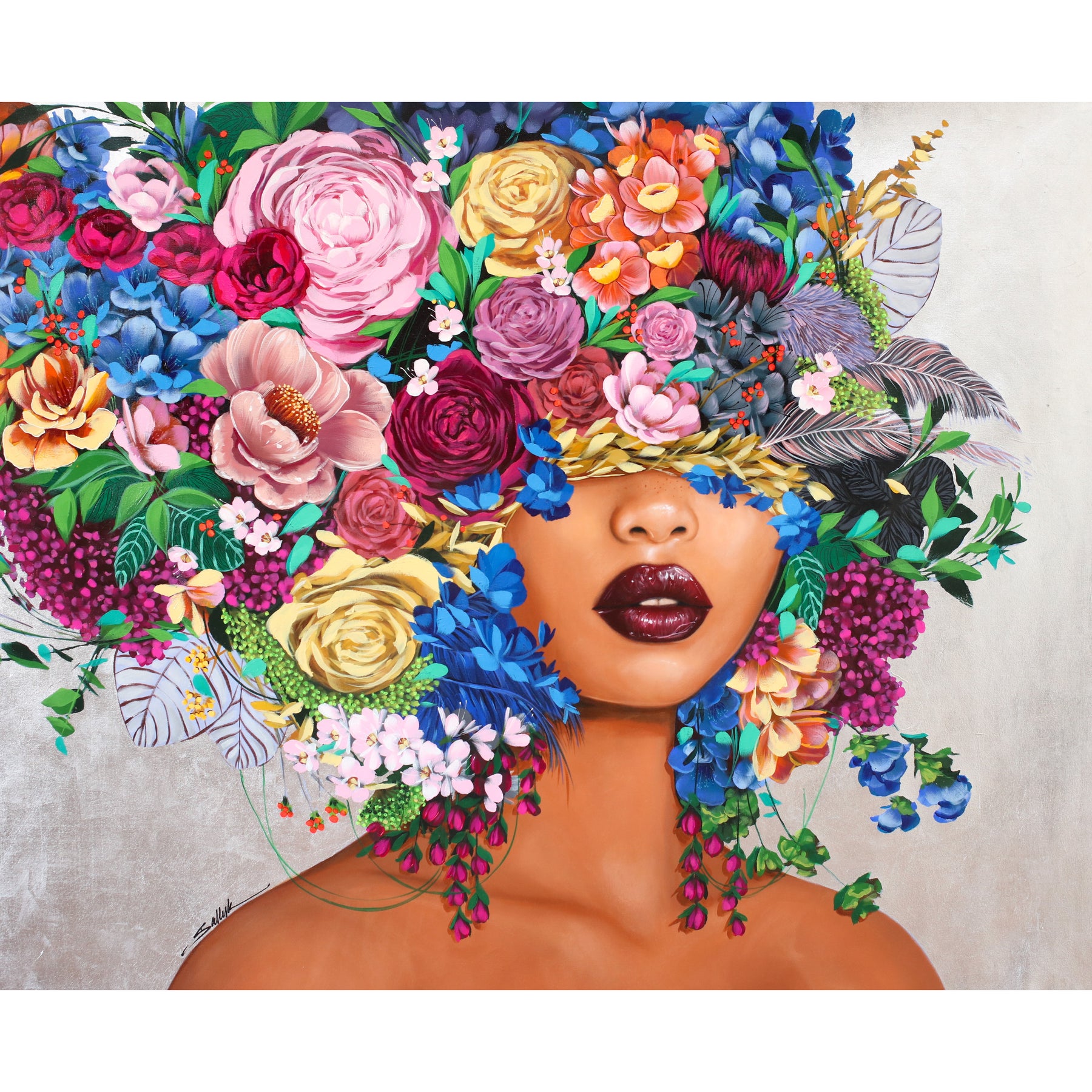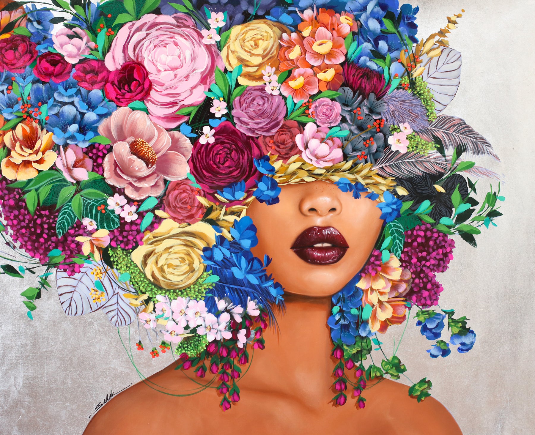 Lebanese portraiture artist Sally Khoury (Sally K) paints the feminine gaze in vivid color. Taking inspiration from fashion, pop culture, and photography, Khoury blends realistic and abstract elements to communicate the totality of the female form, which is often both mischievous and serious, sensual and aloof. Her paintings can be found in the private collections of American pop stars Jesse McCartney and Kelly Clarkson.