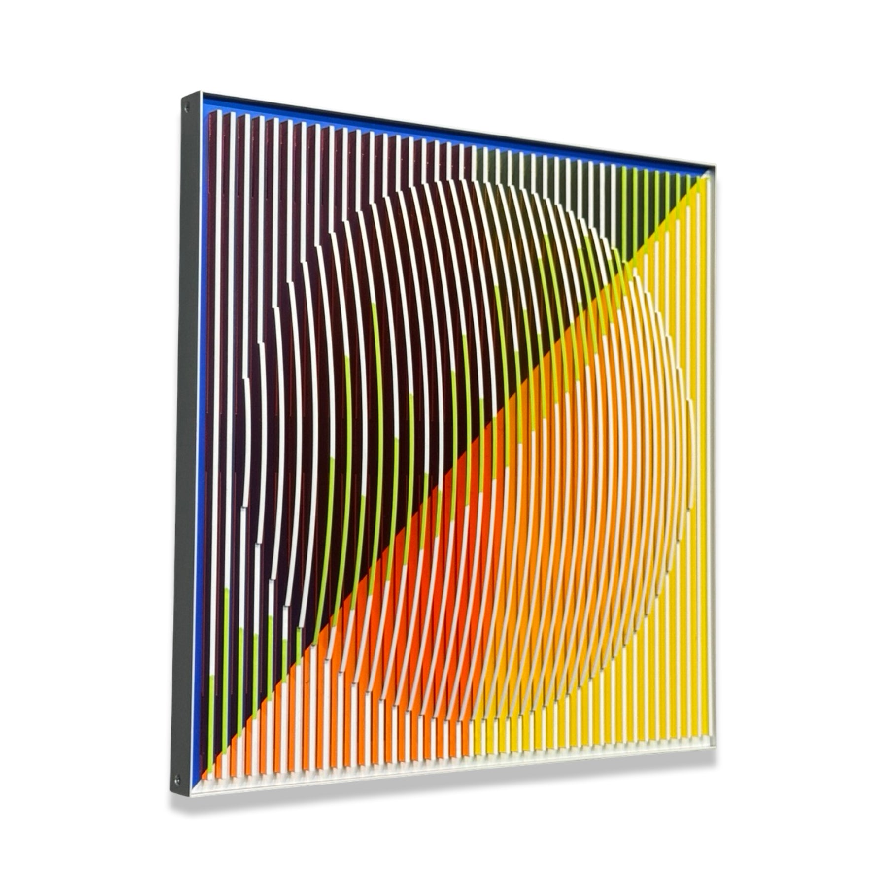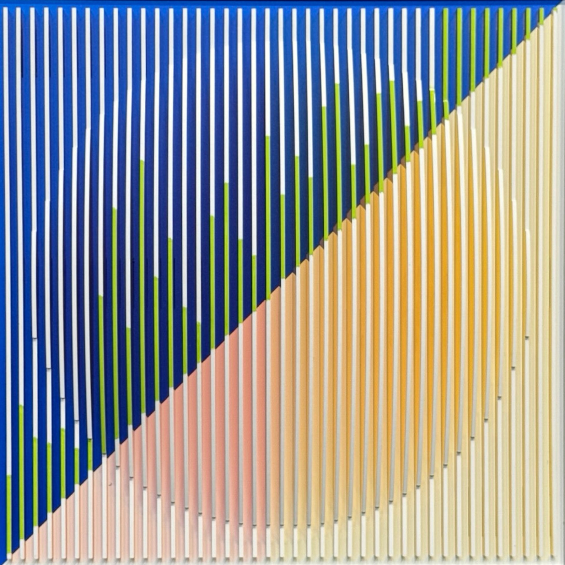 Margulis is drawn to scenes that allow him to explore composition in its most basic geometric forms: symmetry, asymmetry, volume, shapes, forms, limits, transitions and more. The challenge of creating balanced compositions in unexpected ways is fundamentally what attracts the artist’s eye and fuels his ideas. The artist begins with 3D digital software from which he designs and maps his 3D objects and compositions, ultimately cutting them into layers from different types of plastic and aluminum composites. Most of Jose’s work uses acrylic sheets and aluminum composites in various colors, textures, and patterns, often inspired further by traditional Mexican arts.