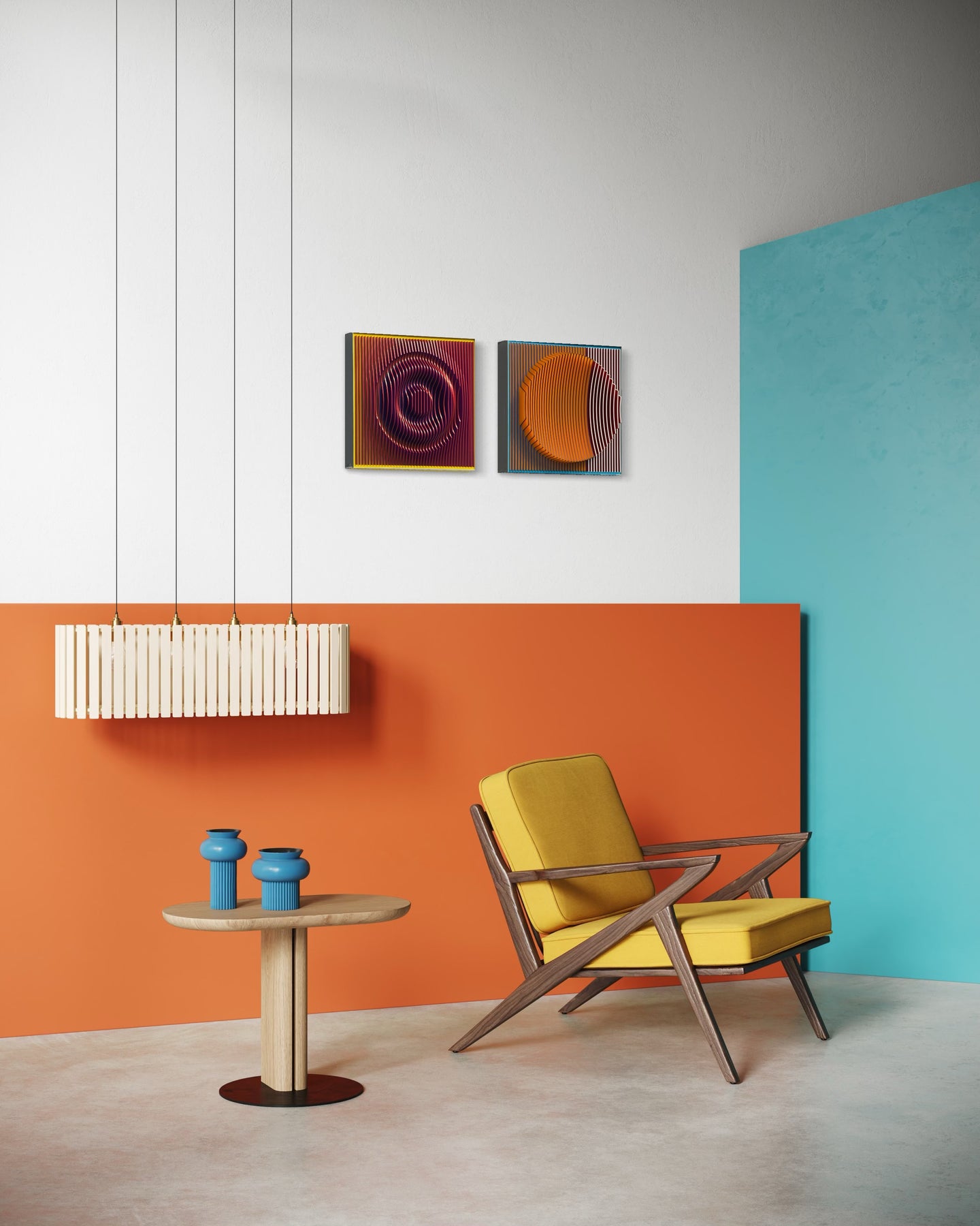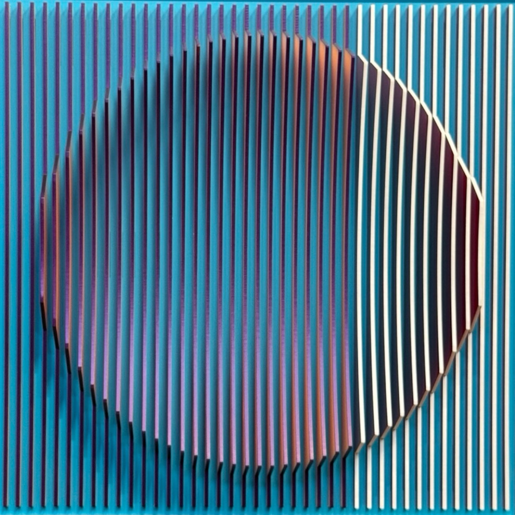 Margulis is drawn to scenes that allow him to explore composition in its most basic geometric forms: symmetry, asymmetry, volume, shapes, forms, limits, transitions and more. The challenge of creating balanced compositions in unexpected ways is fundamentally what attracts the artist’s eye and fuels his ideas. The artist begins with 3D digital software from which he designs and maps his 3D objects and compositions, ultimately cutting them into layers from different types of plastic and aluminum composites. Most of Jose’s work uses acrylic sheets and aluminum composites in various colors, textures, and patterns, often inspired further by traditional Mexican arts.