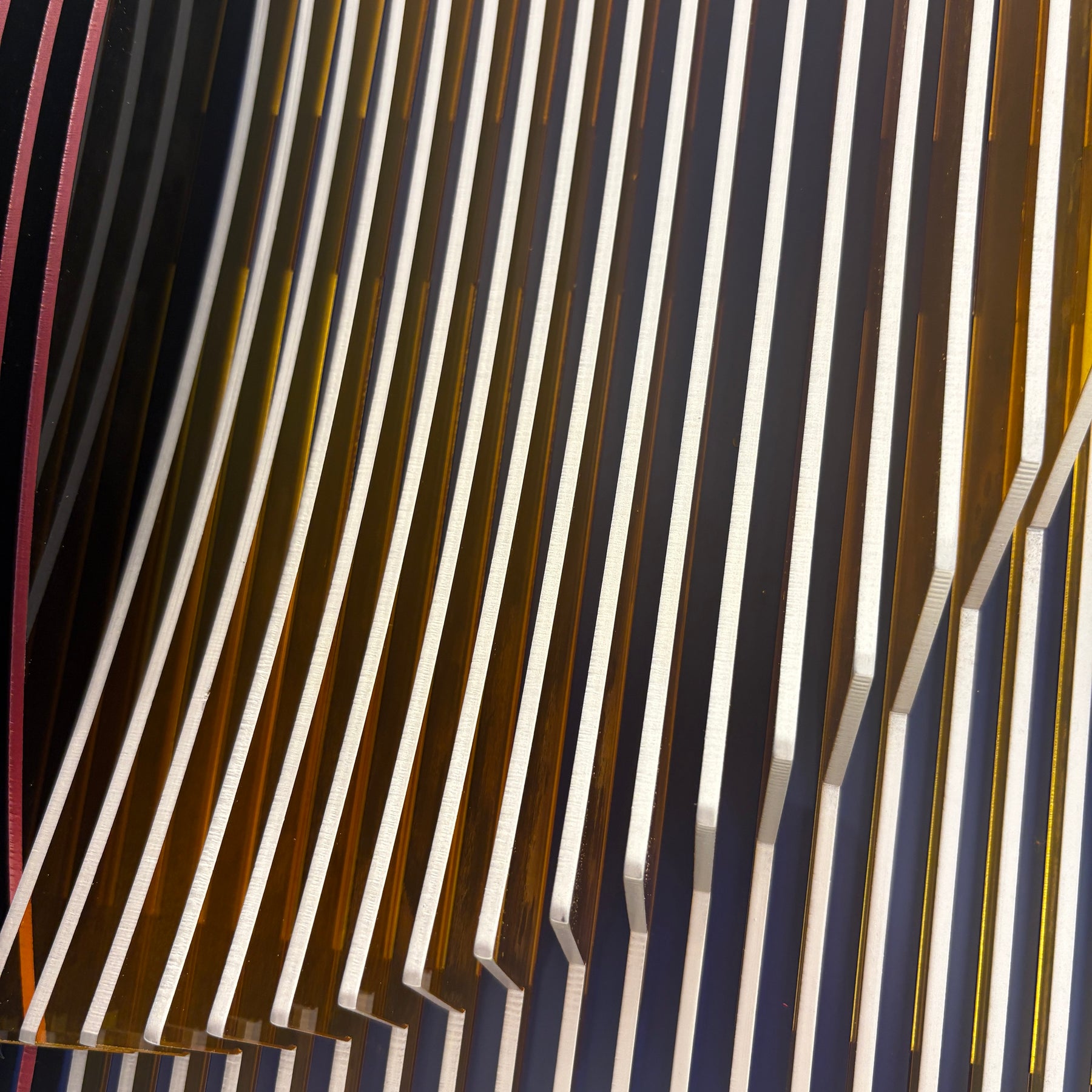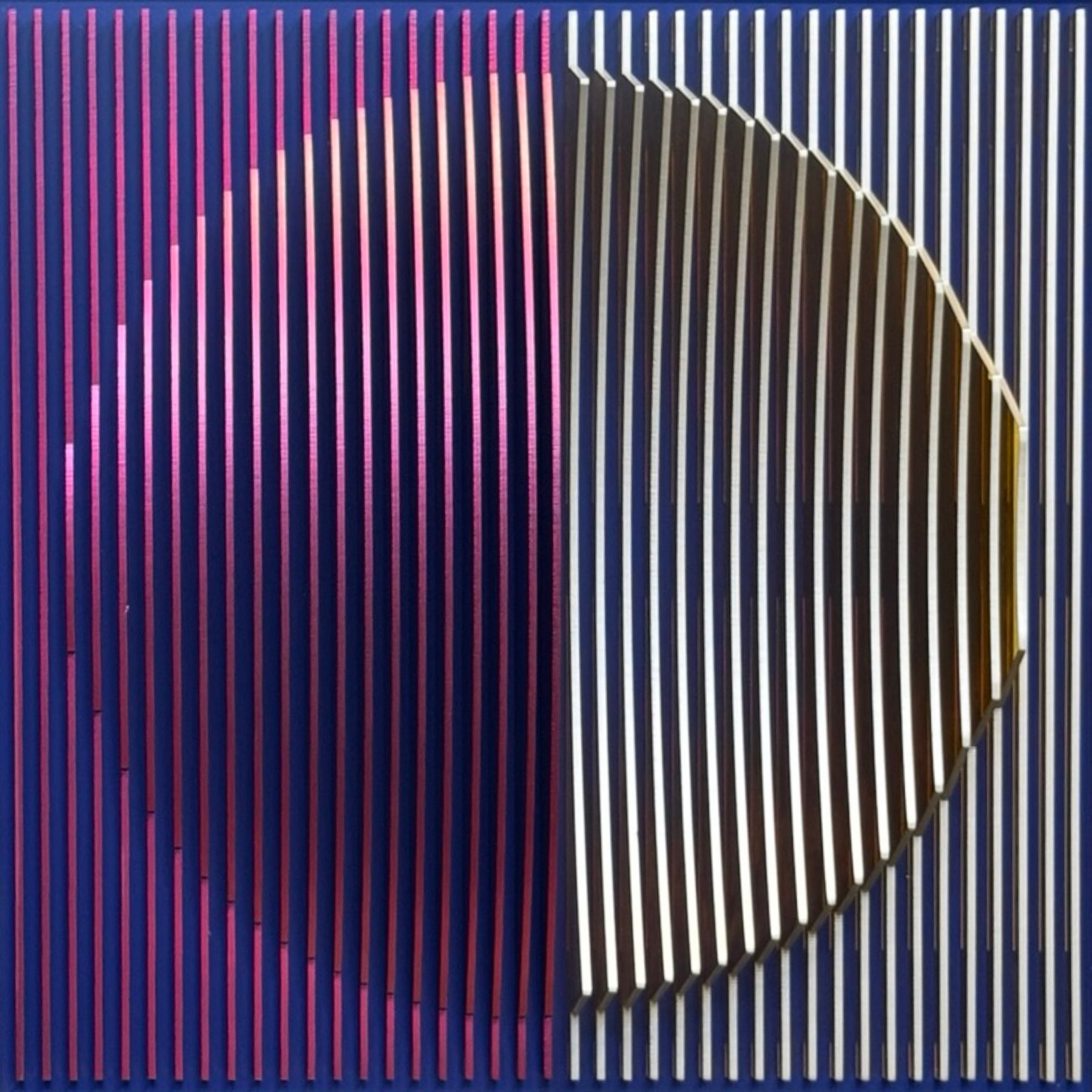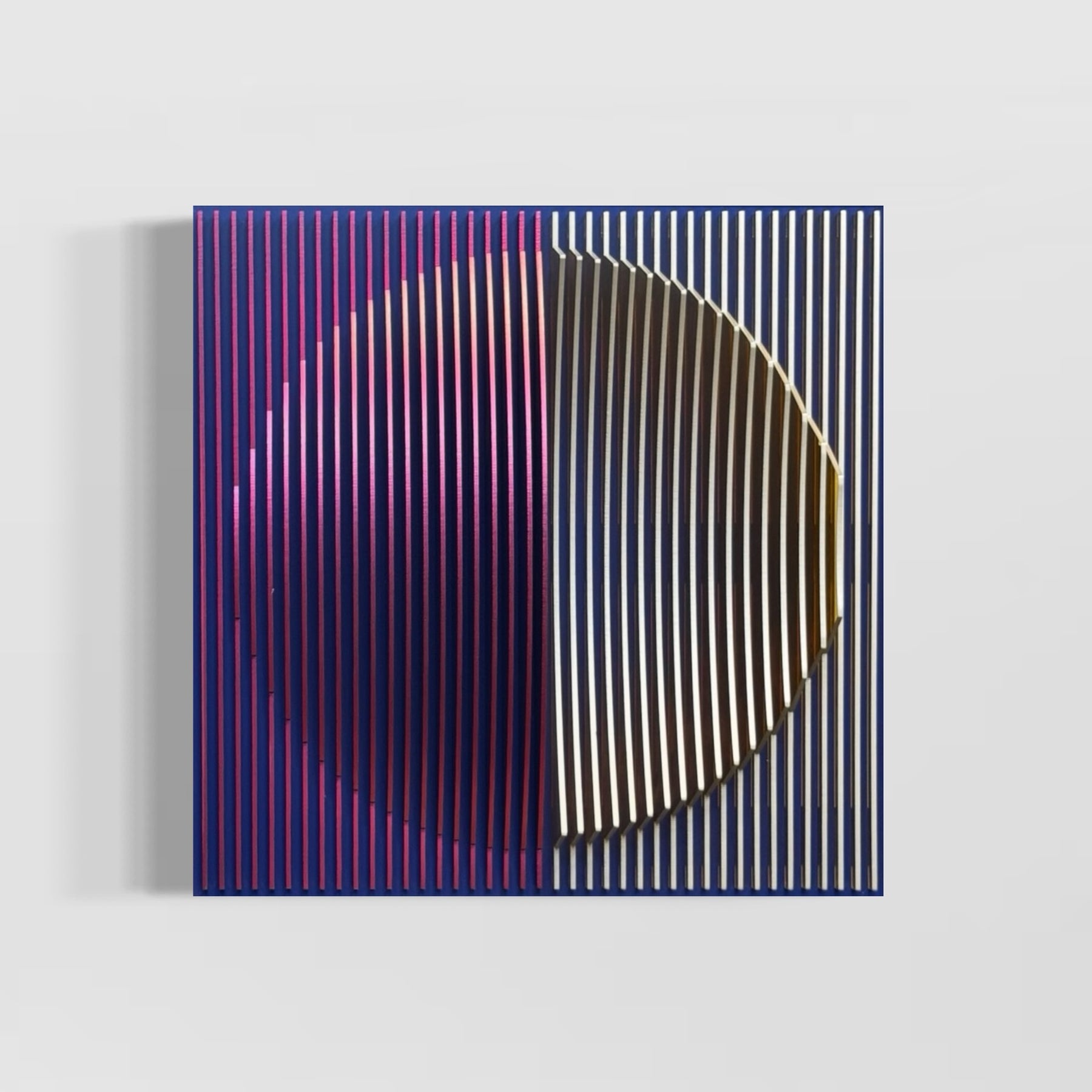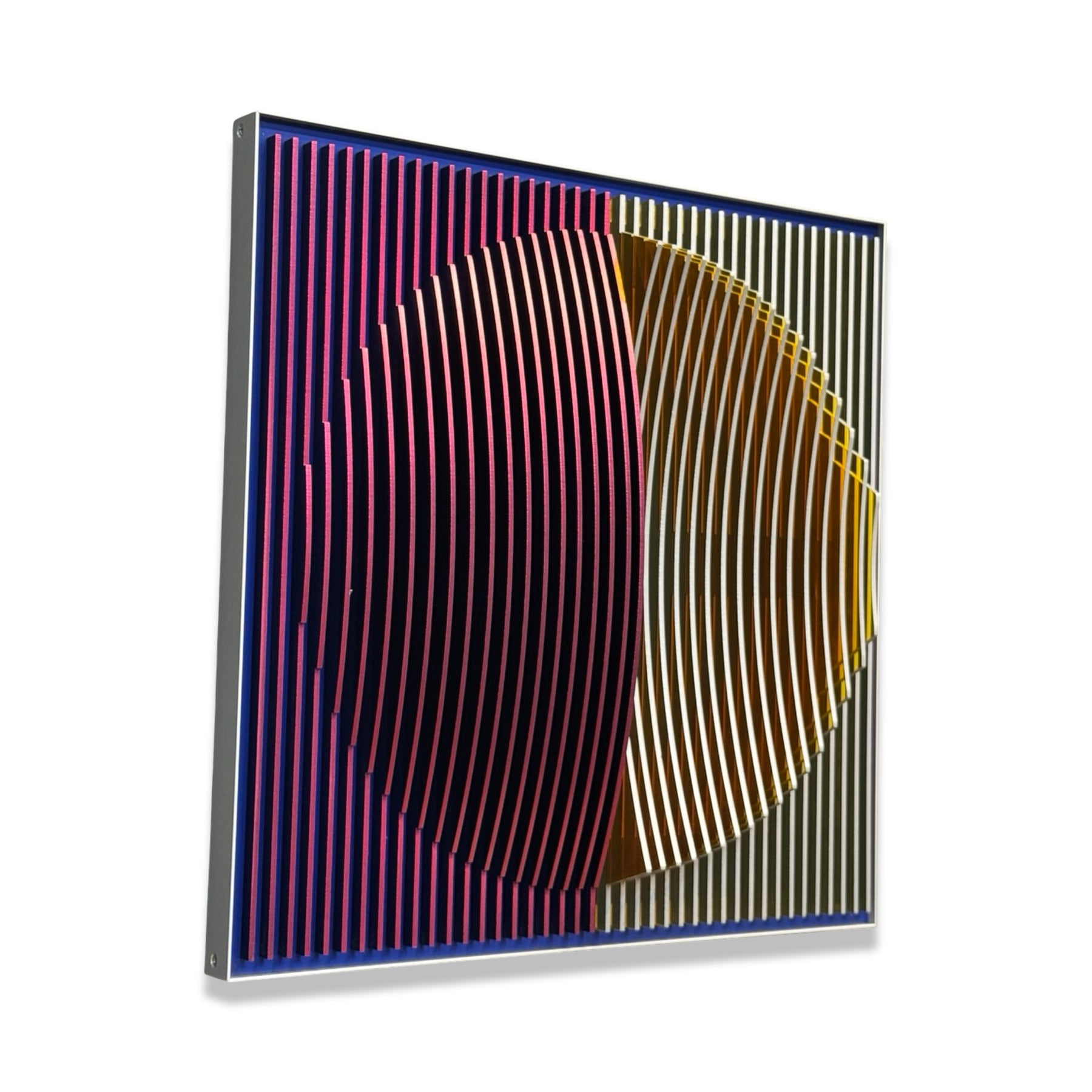 Margulis is drawn to scenes that allow him to explore composition in its most basic geometric forms: symmetry, asymmetry, volume, shapes, forms, limits, transitions and more. The challenge of creating balanced compositions in unexpected ways is fundamentally what attracts the artist’s eye and fuels his ideas. The artist begins with 3D digital software from which he designs and maps his 3D objects and compositions, ultimately cutting them into layers from different types of plastic and aluminum composites. Most of Jose’s work uses acrylic sheets and aluminum composites in various colors, textures, and patterns, often inspired further by traditional Mexican arts.