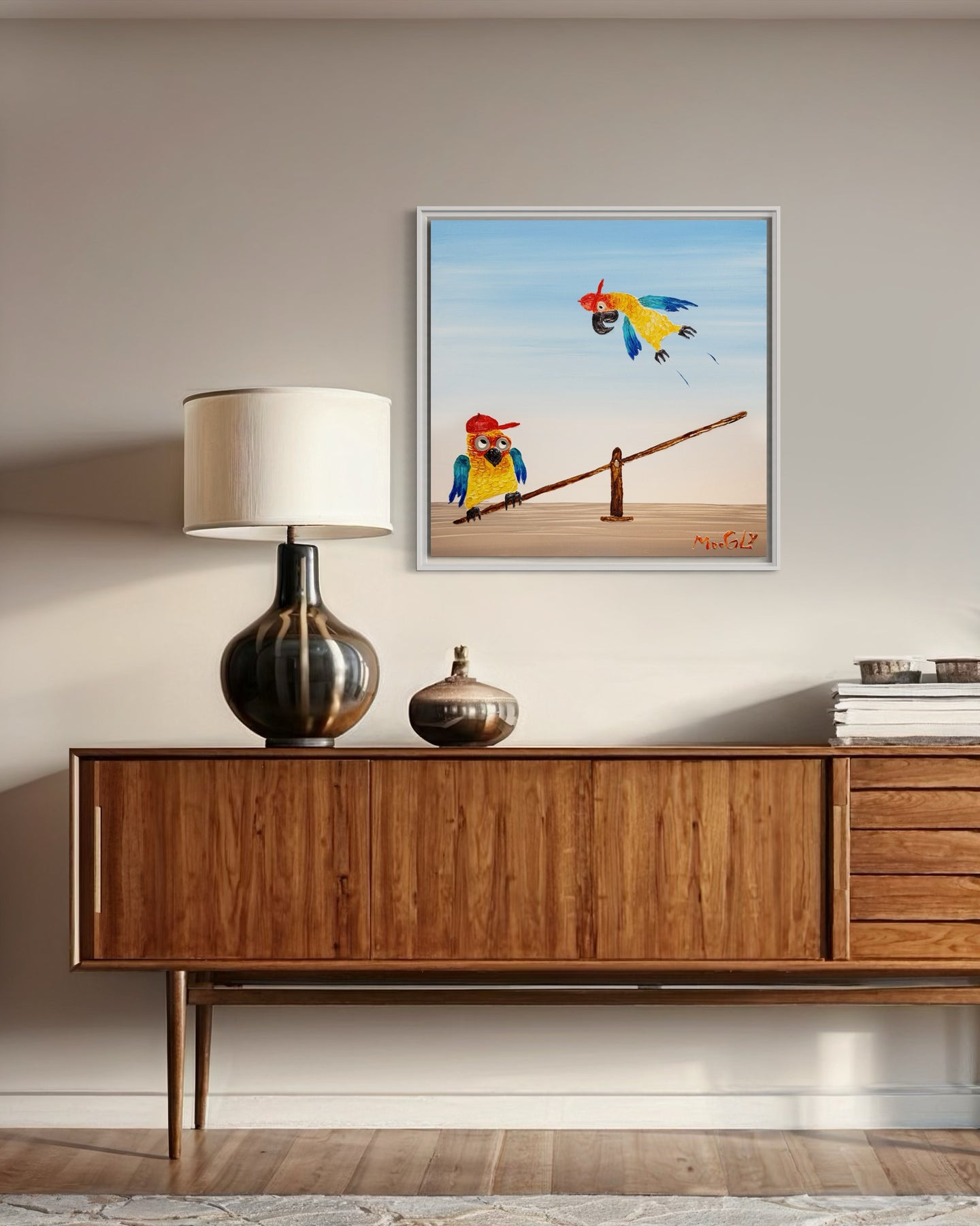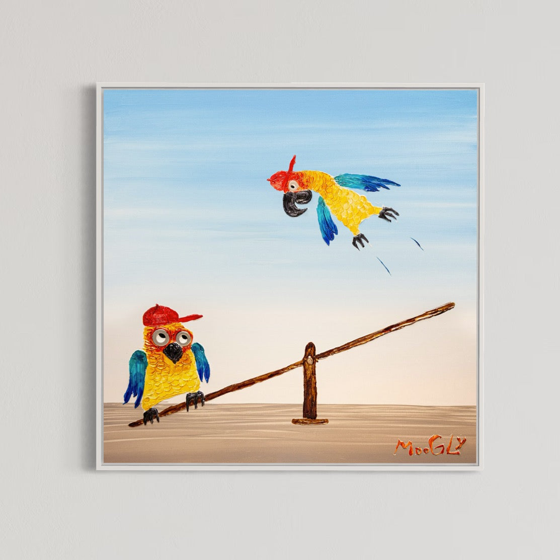 Morton Contemporary Gallery is proud to host the American debut exhibition of the French humorist painter, Moogly. Titled, THE LIGHT SIDE, this abundantly joyful show radiates not just levity and humor, but a profound depth worth exploring. Moogly is an environmentalist, a vegan, and a committed animal rights activist. Deeply pained by the loss of animal populations as a result of environmental degradation, Moogly uses his artwork as a tool of hope to foster new connections between people and the animals they have so carelessly destroyed. He does this by imbuing his characters with a hilarity that the viewer can’t help but love. At his core, the artist wants people to care for their natural world, and he believes his art is one small way he can foster more love from humans for the beautiful natural world we live in.