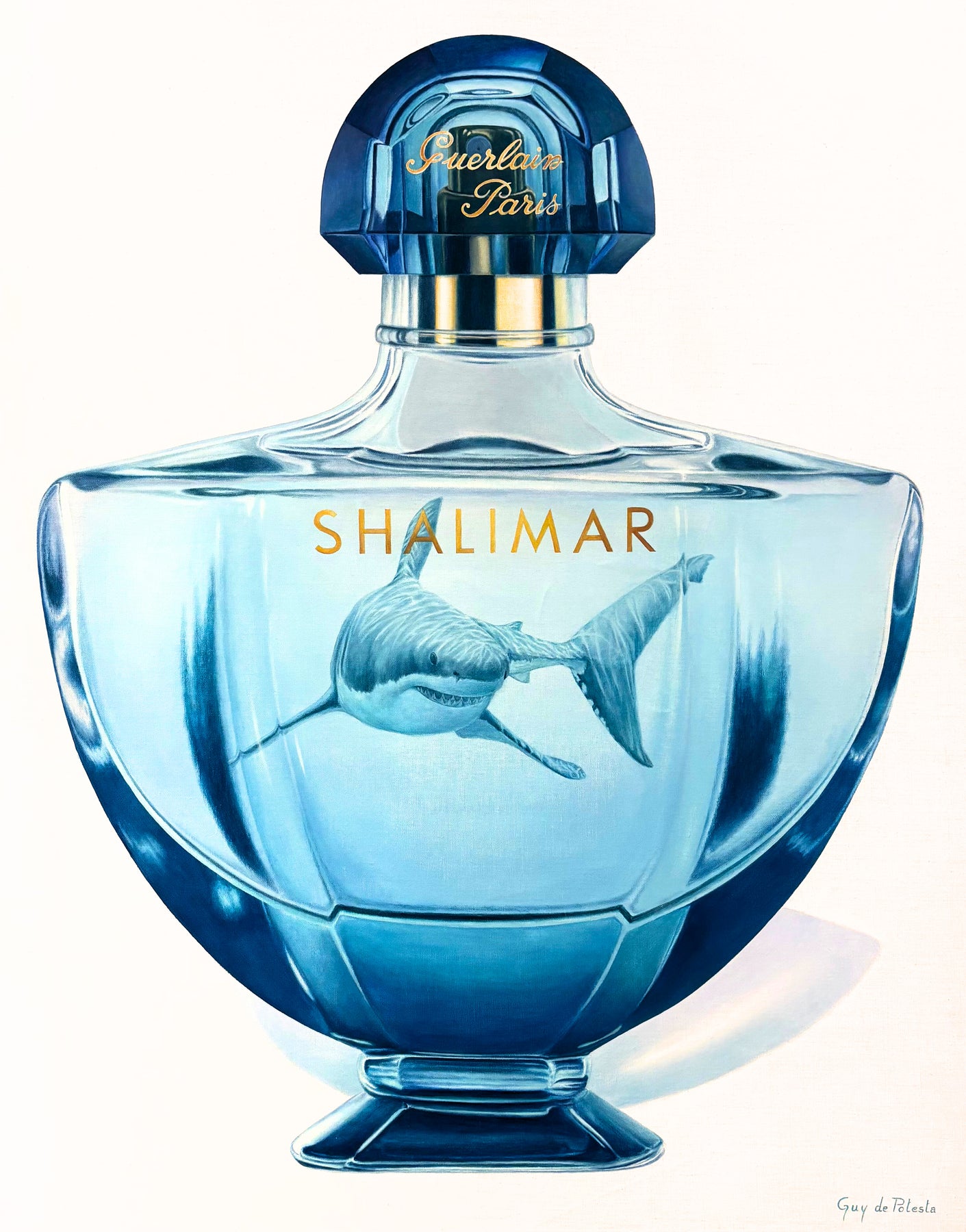 Guy de Potesta's surreal, dream-like canvases reveal the unsettling realities of a world undergoing rapid environmental degradation. Known for pairing wildlife with human-made objects in humorous, improbable ways, de Potesta uses absurdity not as escape but as a sharp lens on a natural world increasingly strained by human materialism.