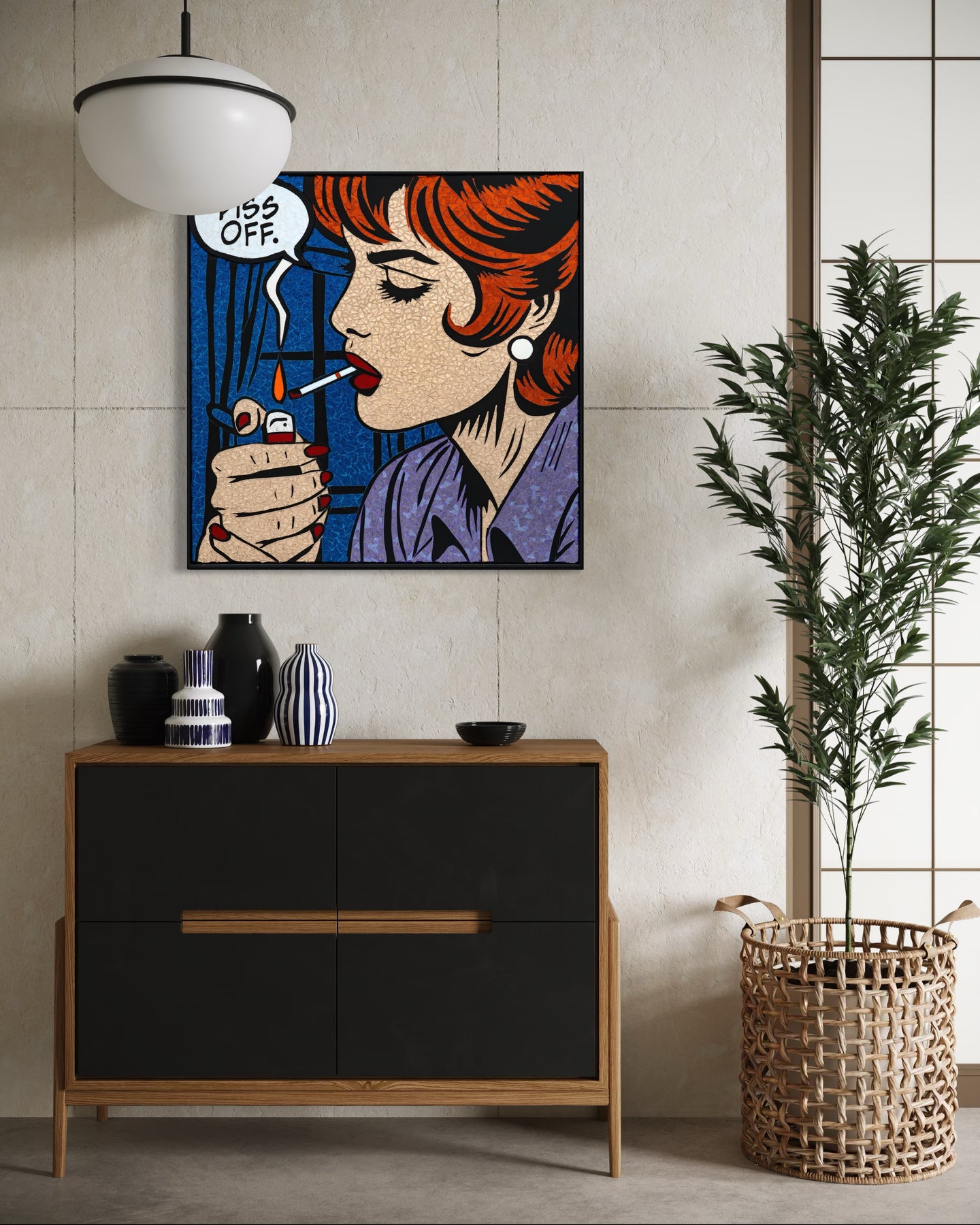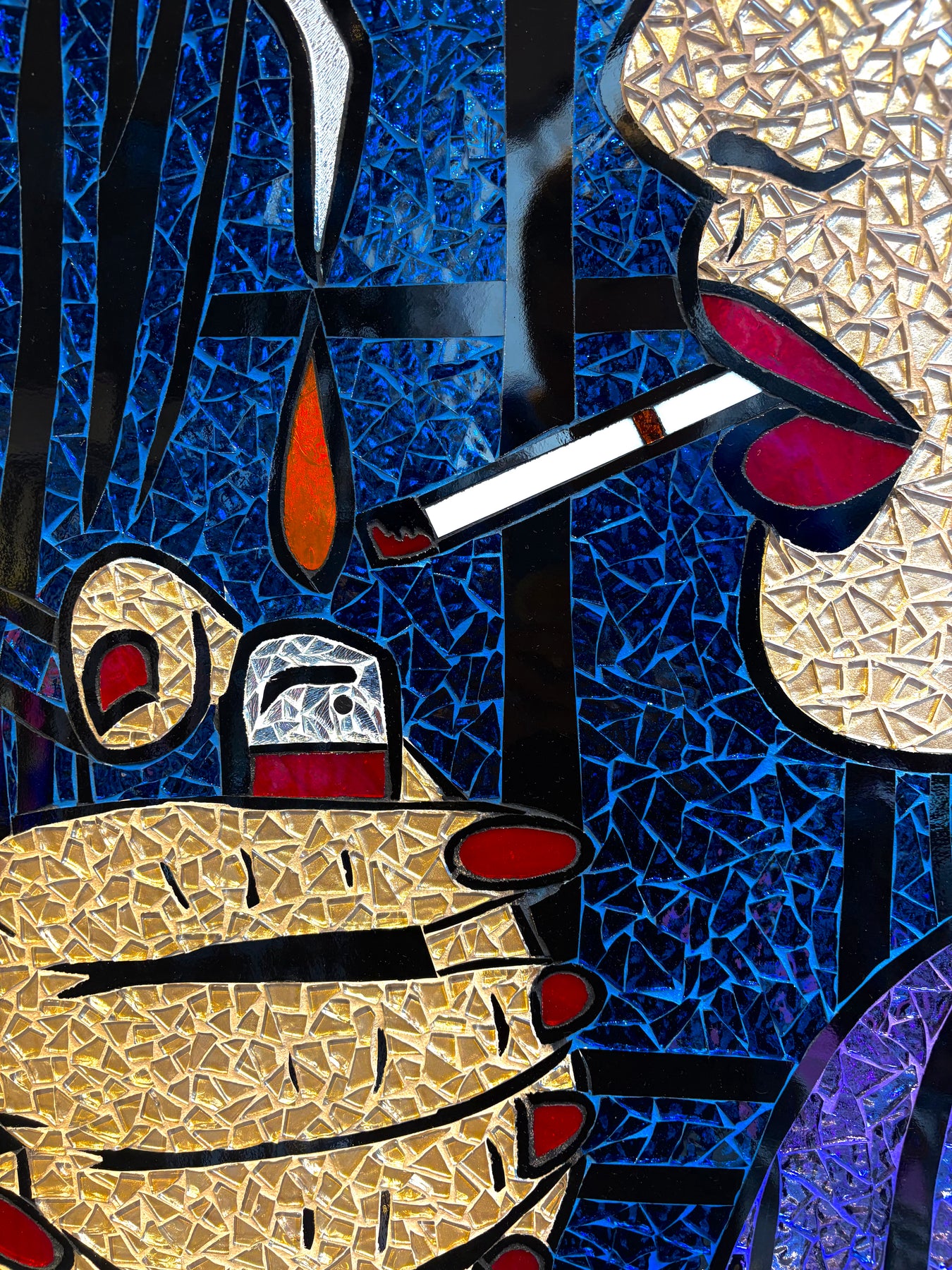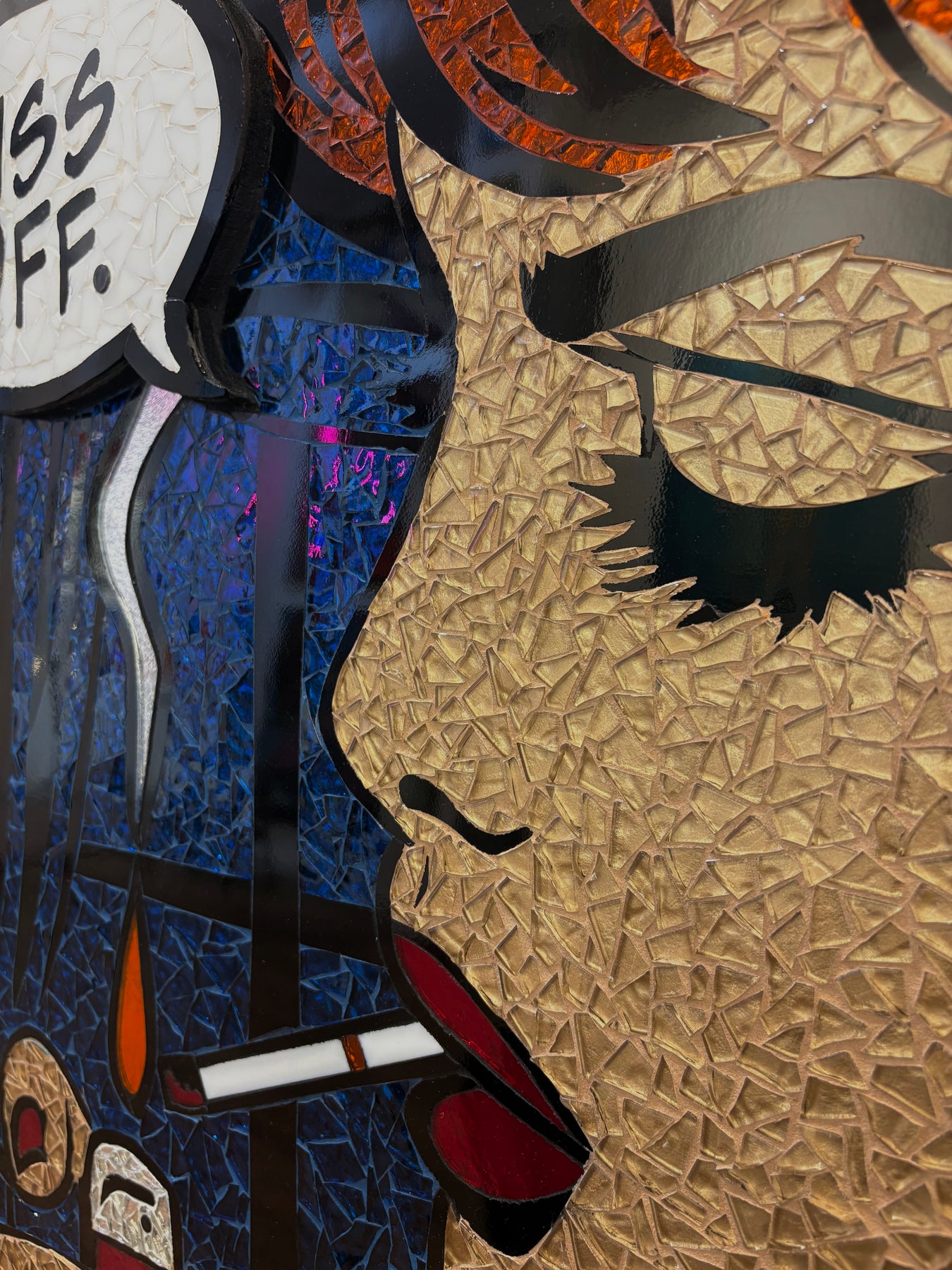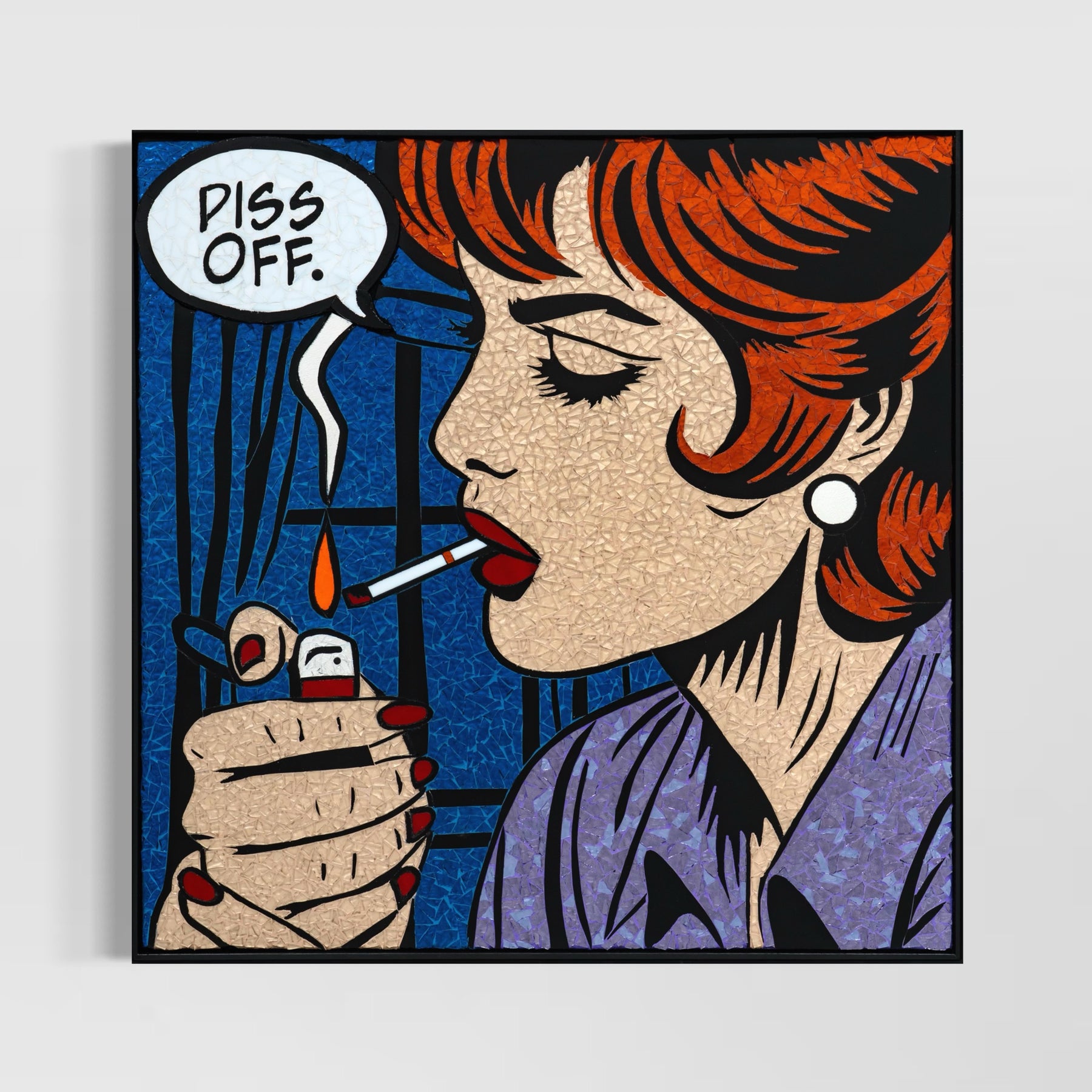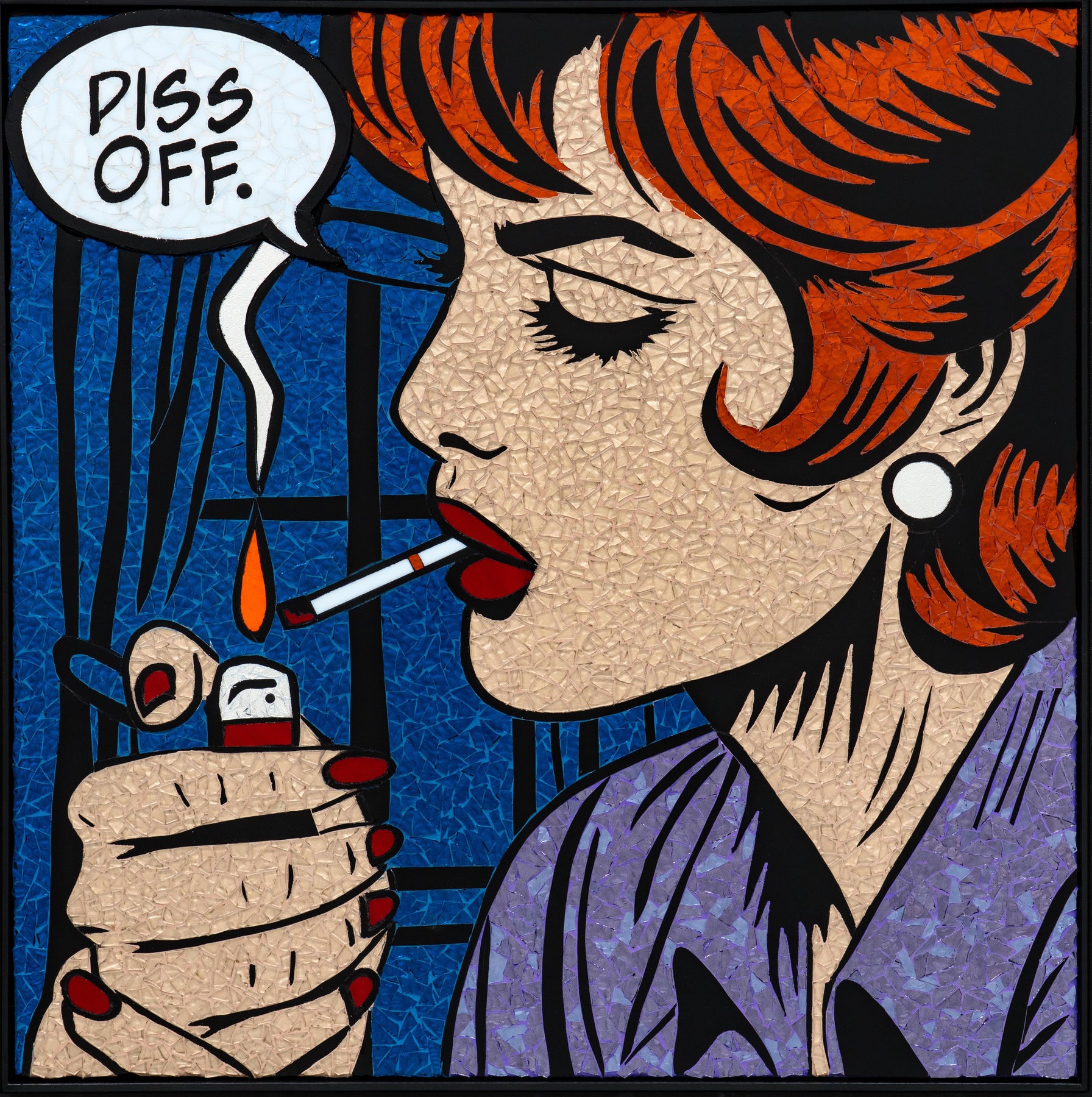 Sarah Fishbein, a contemporary glass mosaic artist based in the Atlantic Highlands of New Jersey, has been pushing the boundaries of visual art for nearly 20 years. Initially grounded in editorial video production, Fishbein artistic journey has led her to embrace the bold, graphic style of Lichtenstein Pop Art Mosaics. She infuses her mosaics with the vibrant, comic-book aesthetic of 1950s and romance comics, creating striking reinterpretations of pop culture through the timeless medium of glass.