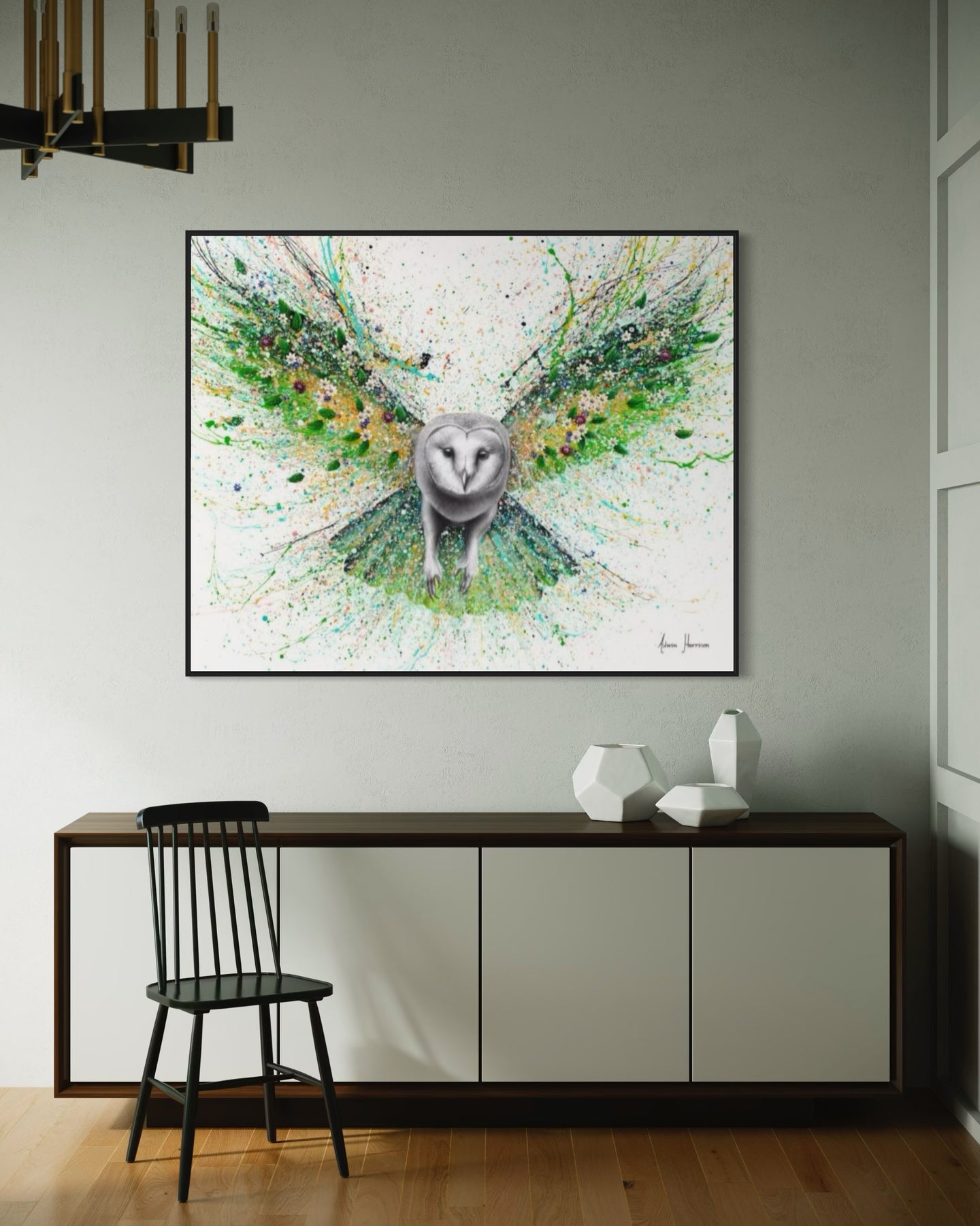 Working with charcoal dust powder, acrylic, and oil, Ashvin Harrison’s contemporary artistic style is so musical that his figures almost literally dance off the canvas. Harrison has come to be known worldwide for his integration of contrasting mediums. The painter begins with the soft, sultry subtlety of brushed charcoal to create sensual, hyper-realistic figures with digital-like precision in black and white -- dancers, hummingbirds, planets, trees, and musical instruments to name the most iconic. From there, Ashvin splatters and paints this initial charcoal with many layers of color, creating a mystical chorus of beauty, sensation, and light.