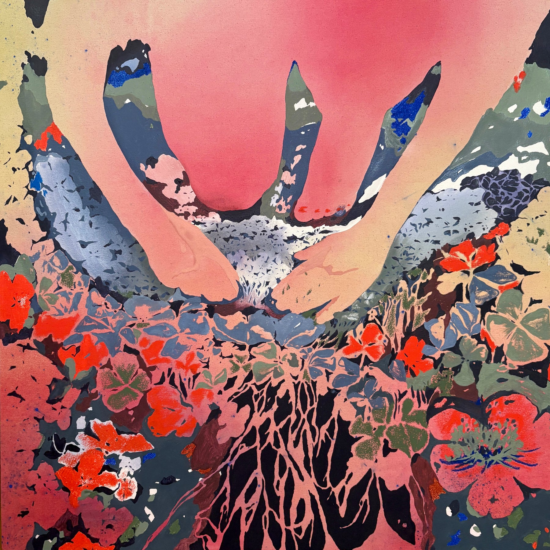 Erin Touey is a Philadelphia based artist, working and living in the city after her recent graduation from Tyler School of Art and Architecture. Touey’s work straddles the line between abstraction and representation. Fluid shapes, variation of line weight, non representational color, and distortion of perspective bring her often tangible subject matter into the abstract realm. With a limited palette consisting only of Phthalo Blue, Cadmium Yellow, and Quinacridone Magenta, Touey challenges herself to mix all of her colors. The white of the canvas is preserved deliberately, the negative space making shapes that sometimes jump forward or fall back.
