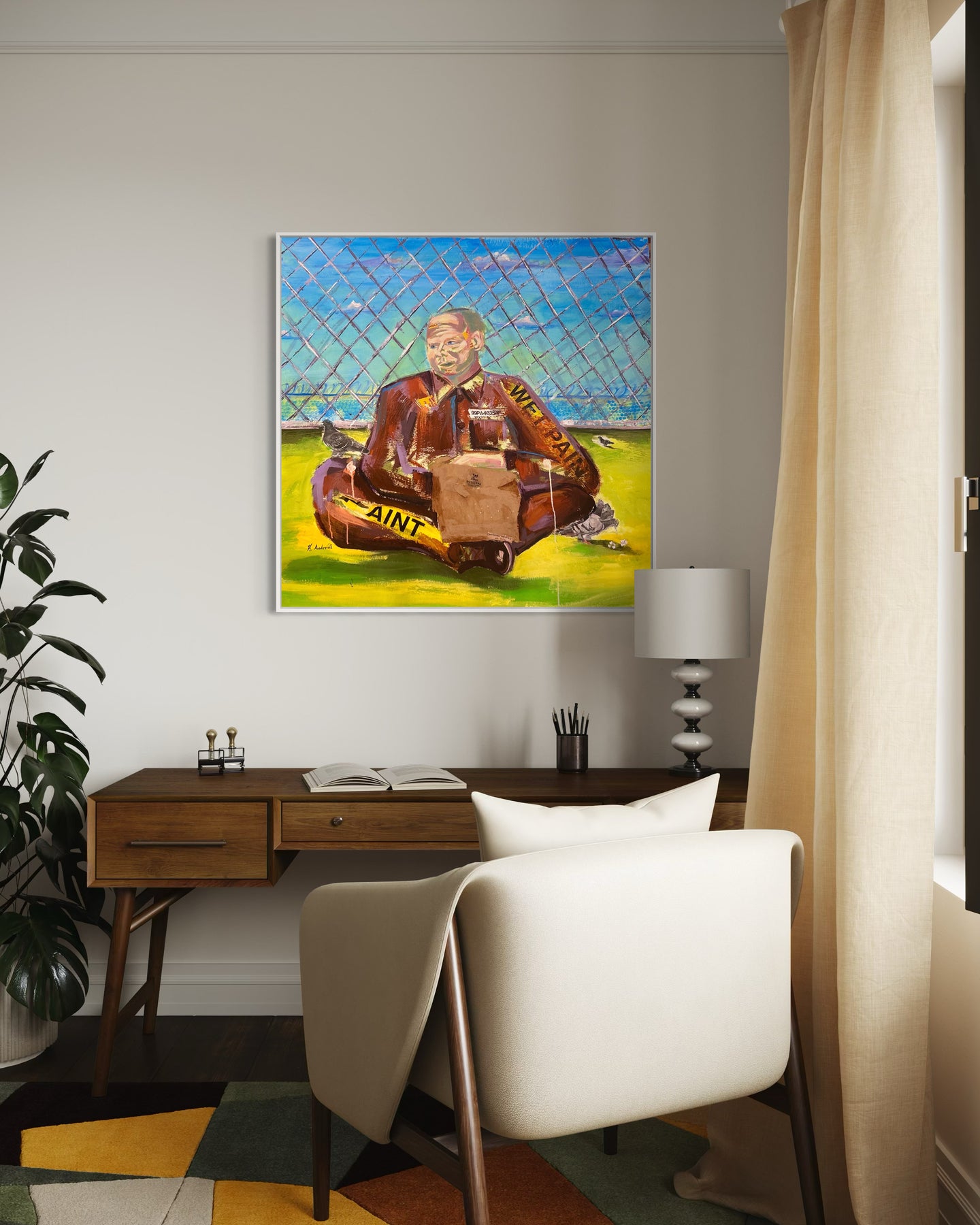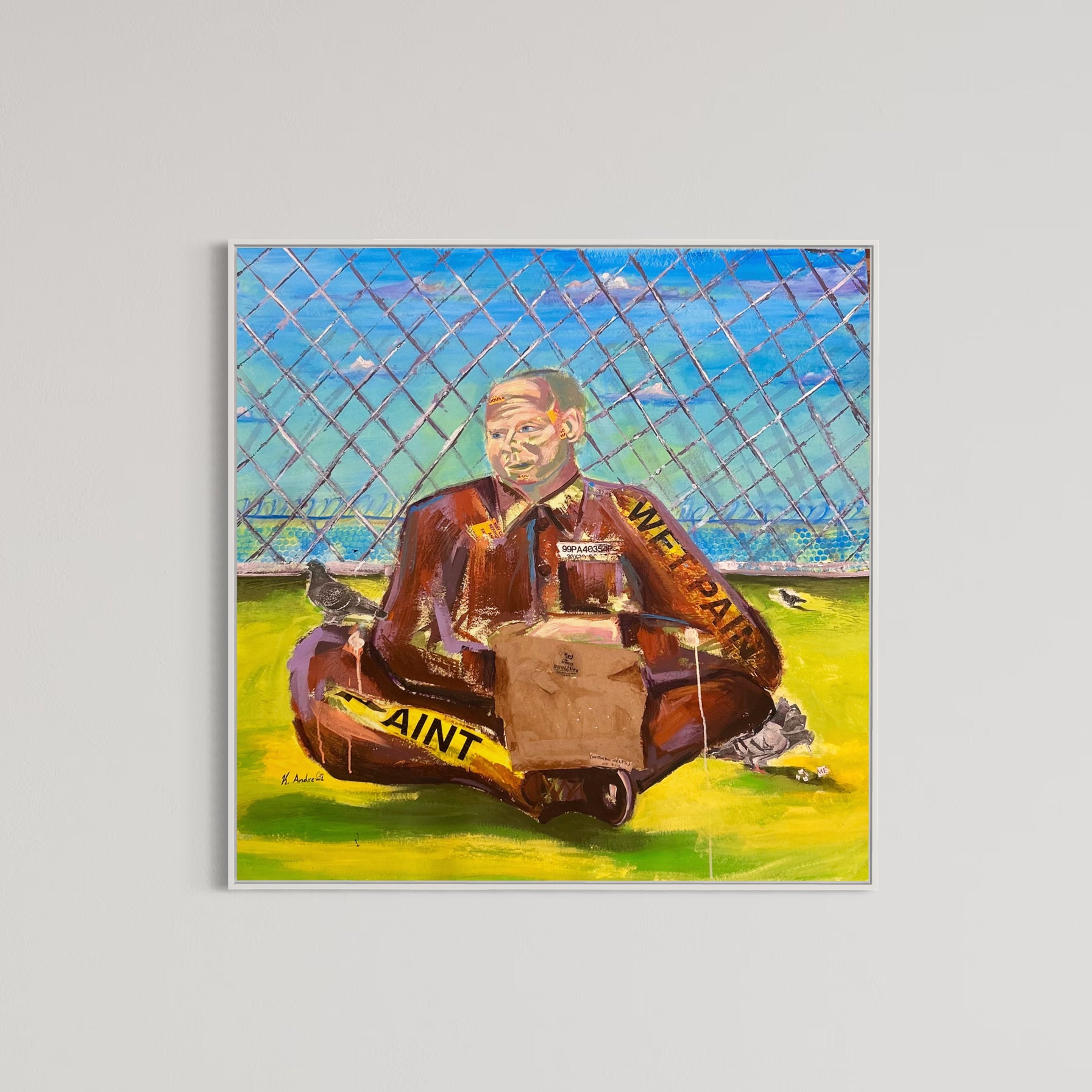 Keith Andrews: “I wanted to show in this piece a person who’s a decoy, a front to people, to stay away, but wanting to clear his conscience by any means!”