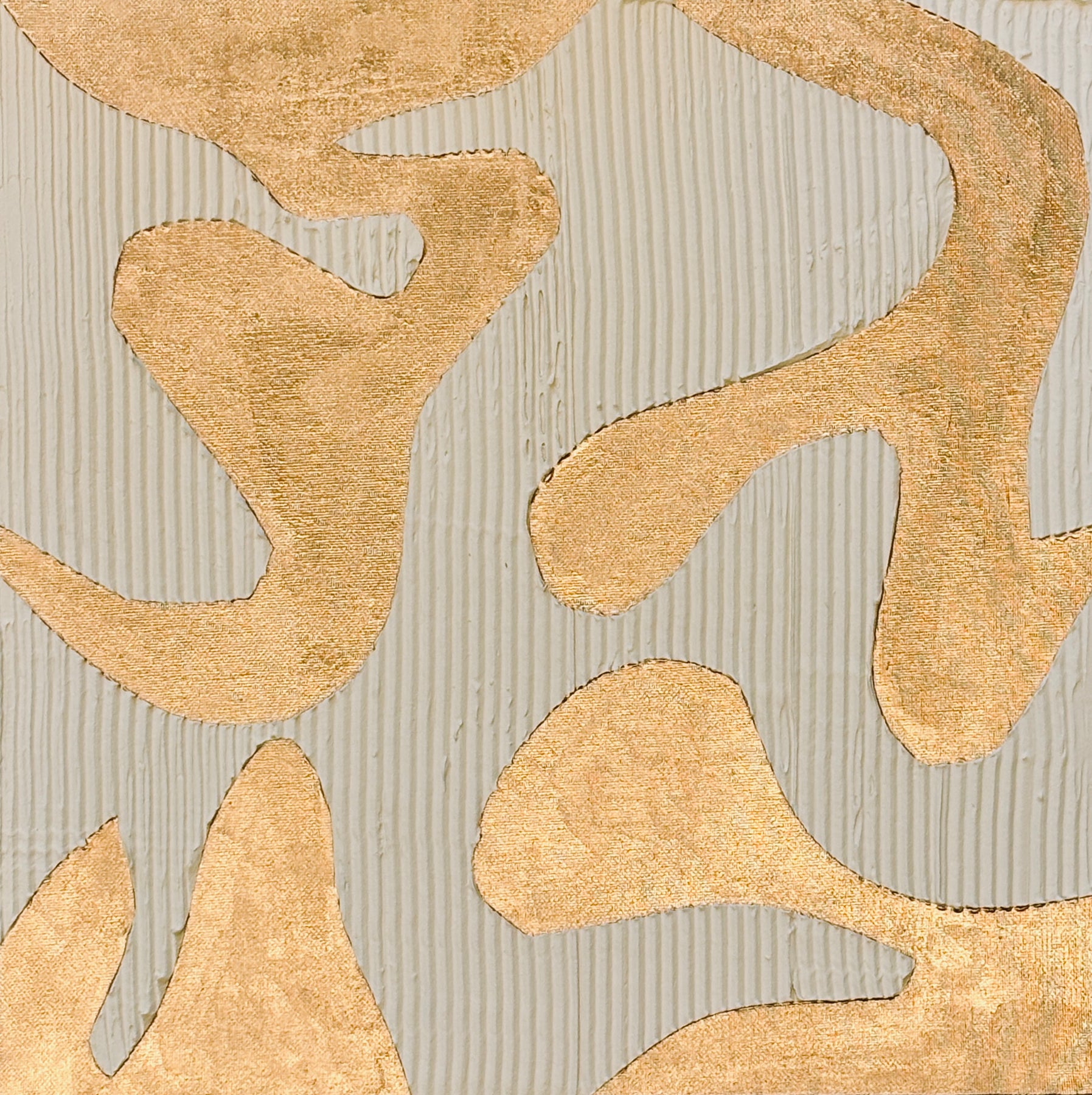 Jerilee, a Philadelphia-based artist working under the name ‘Lee in Cerulean’, creates striking minimalist pieces. For Lee, simple curves, asymmetry, and overlapping forms reflect the beautiful world around us—and find, within our surroundings, the continuity, serendipity, and at times mundane nature of everyday life. Deriving from the Japanese Wabi-Sabi philosophy’s embrace of imperfection, highly textural pieces show Lee’s freeform strokes, using a blend of joint compound, acrylic paint, and a myriad of other media. Under this philosophical orientation, ridges and built-up materials are a reminder that we continue to evolve, just as nature does.