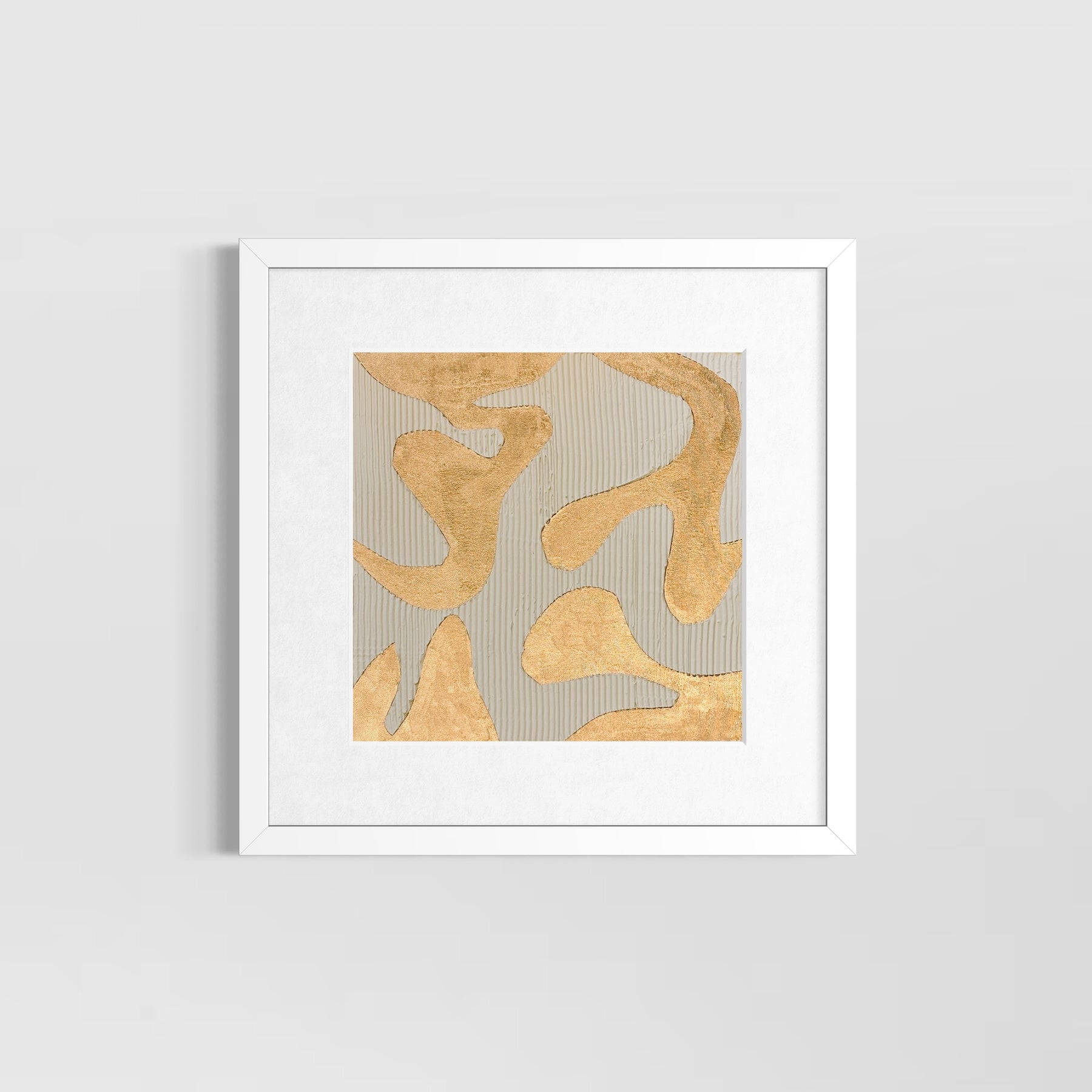 minimal geometric abstract organic shape in gold with lines  straight on beige light  background
