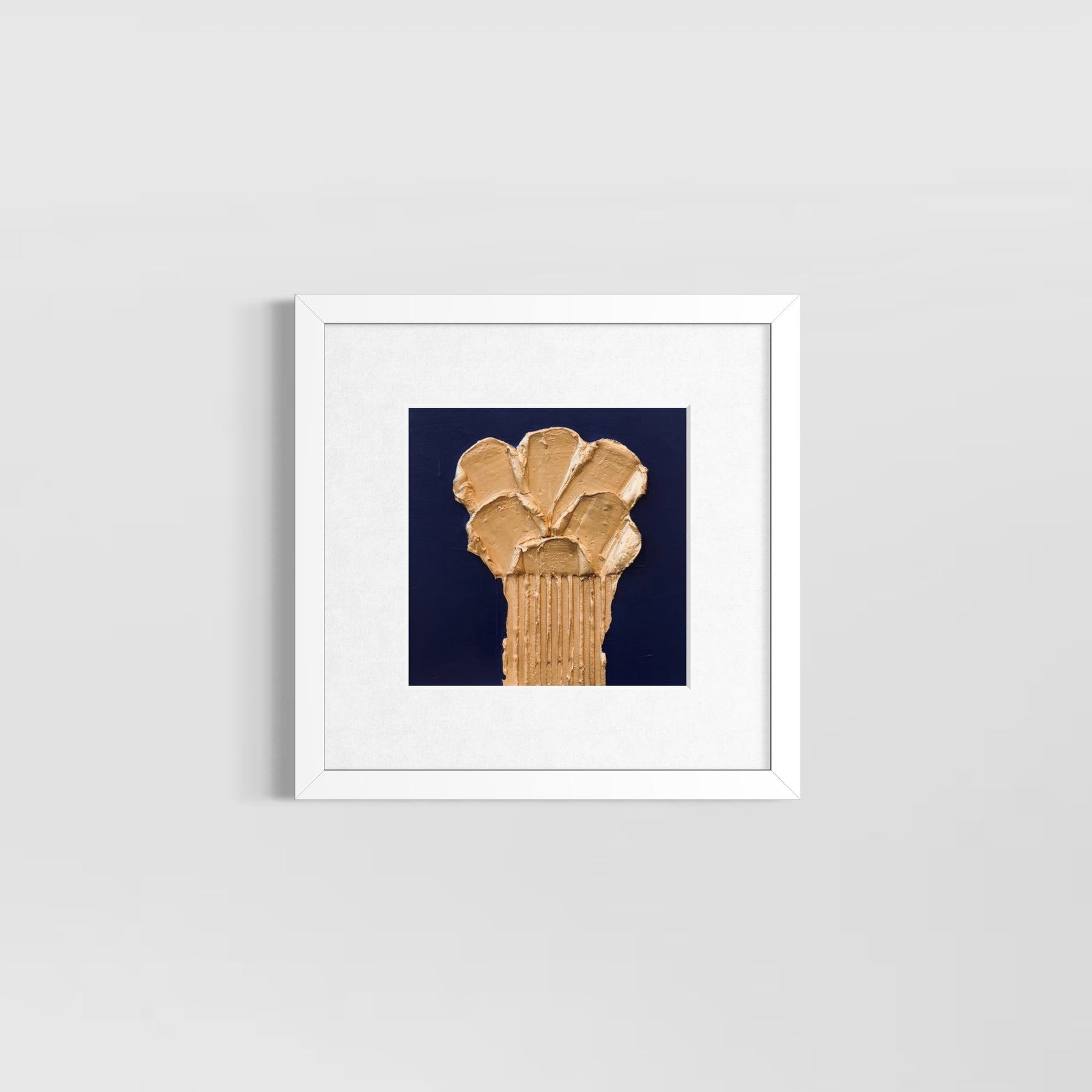 golden layered joint compound texture sculpted abstract floral bouquet on matte dark blue background