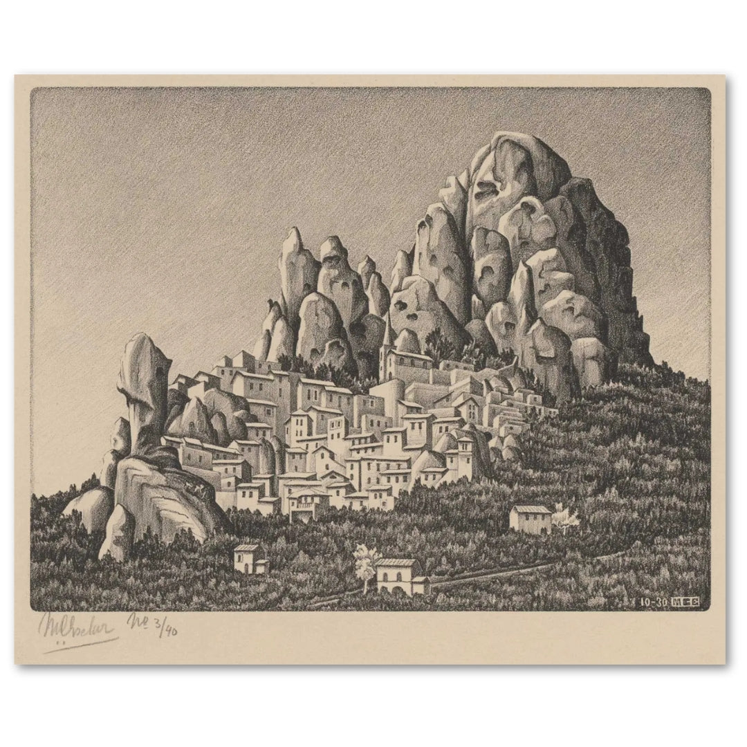 Maurits Cornelis Escher (1898-1972) is one of the world’s most famous graphic artists and is known for his iconic optical illusions. His lithographs, woodcuts, engravings, and drawings expressed a high level of technical expertise and meticulous attention to detail. Their puzzling depictions of tessellating staircases and interlocking spaces offered up visual conundrums to the viewer.