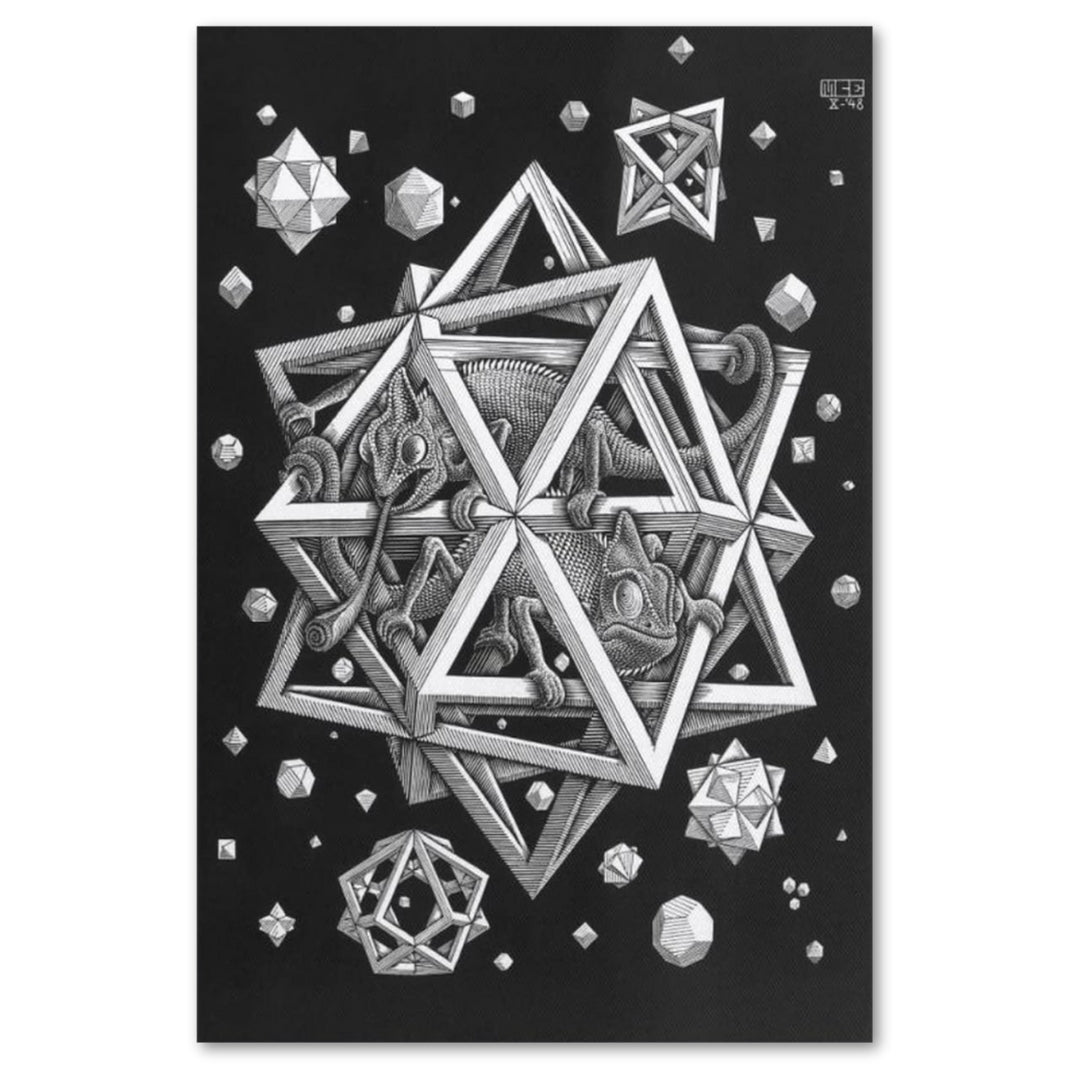 Maurits Cornelis Escher (1898-1972) is one of the world’s most famous graphic artists and is known for his iconic optical illusions. His lithographs, woodcuts, engravings, and drawings expressed a high level of technical expertise and meticulous attention to detail. Their puzzling depictions of tessellating staircases and interlocking spaces offered up visual conundrums to the viewer.
