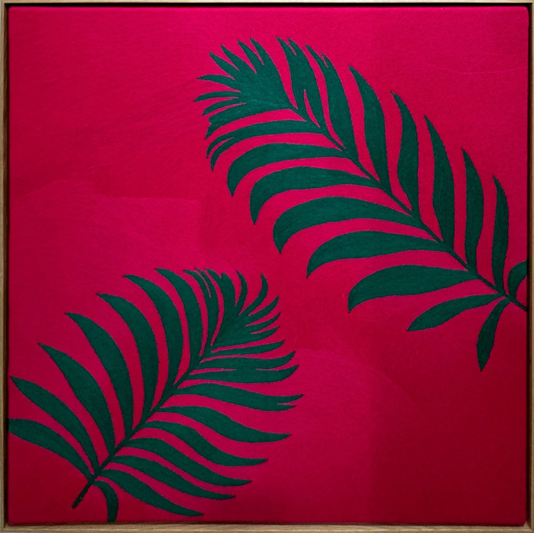 The artistic partnership between Parvaze, a master of Kashmiri Jalakdozi embroidery, and Peter Mayer, a New York-based designer with a background in film, interior architecture, and textile arts, has given rise to a body of work that fuses centuries-old craftsmanship with bold, modern design. Working under the name Parvaze + Mayer, the duo creates hand-stitched wool-on-cloth artworks that are as emotionally resonant as they are visually striking.
