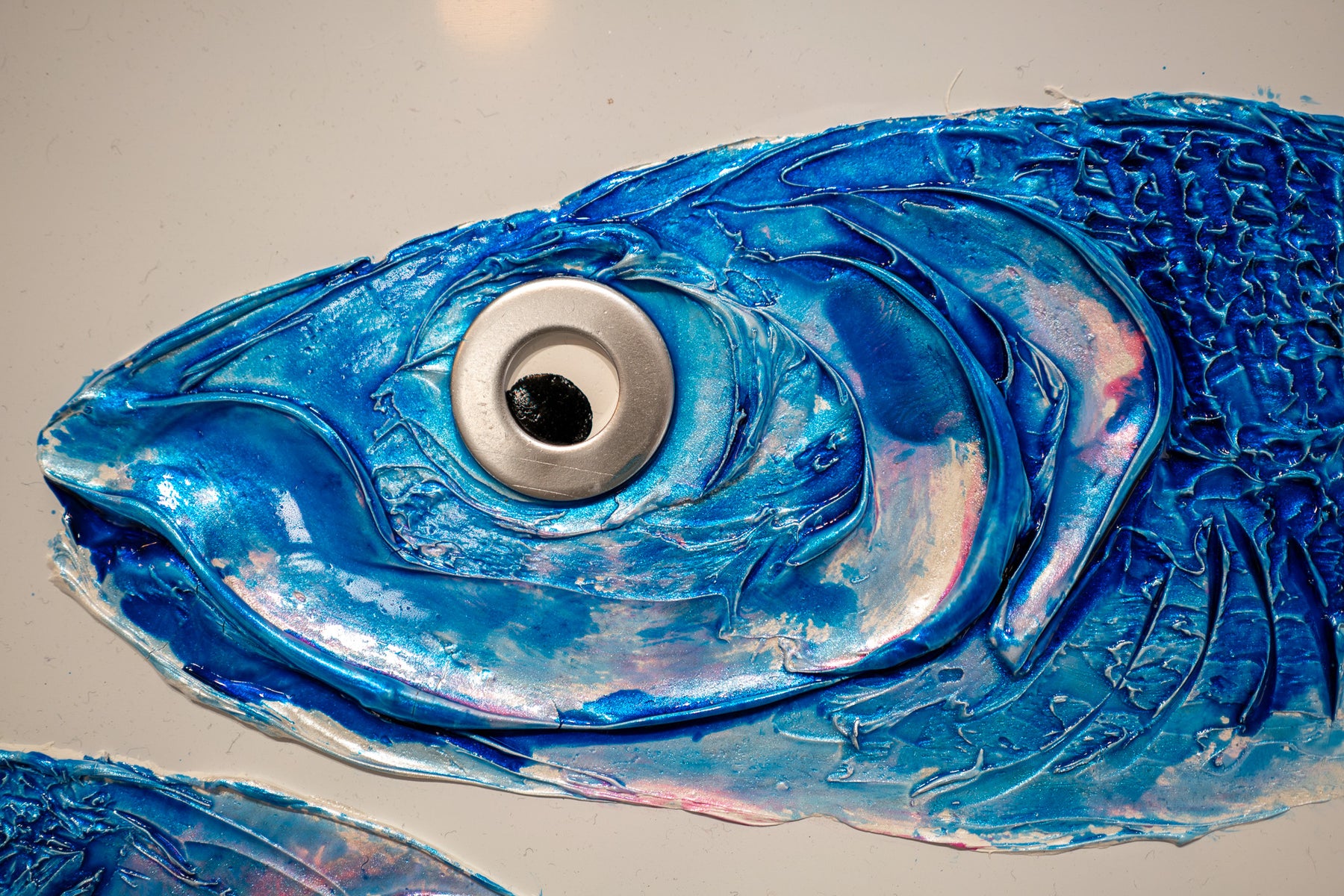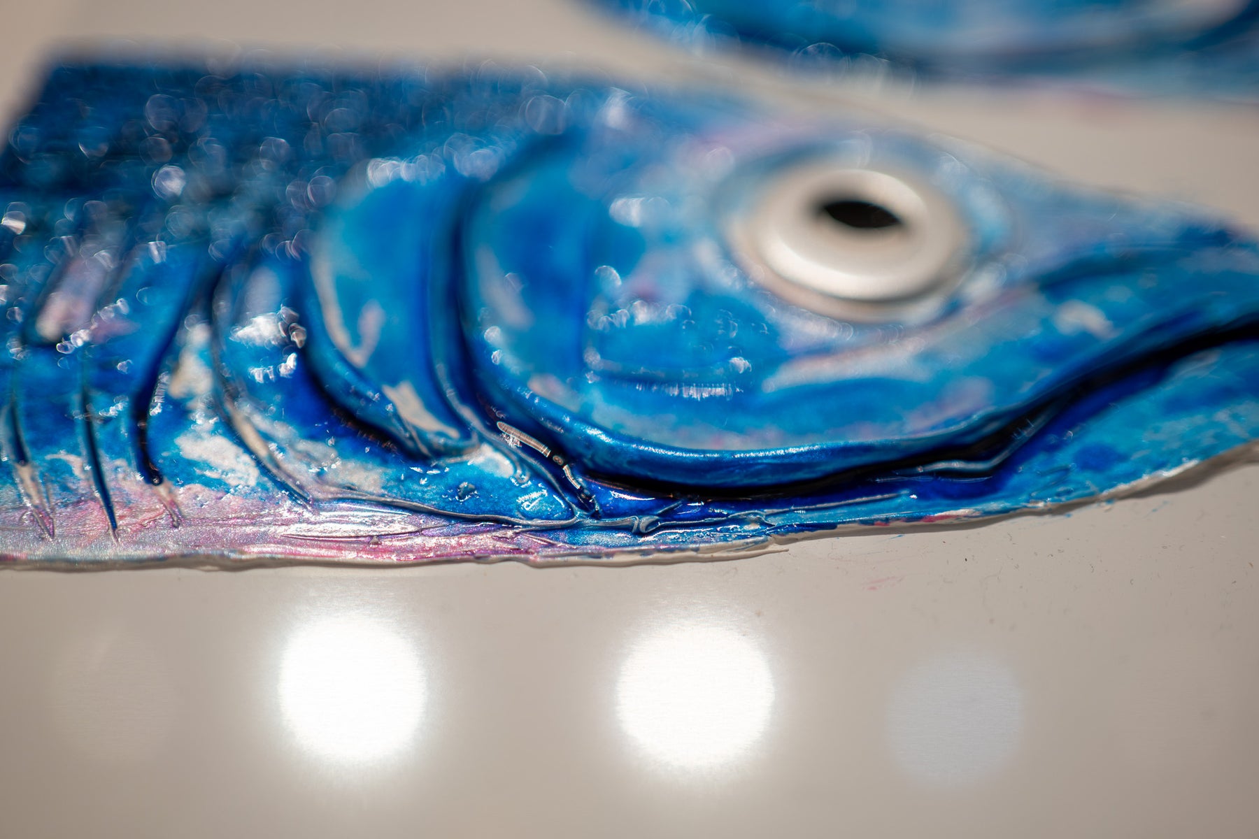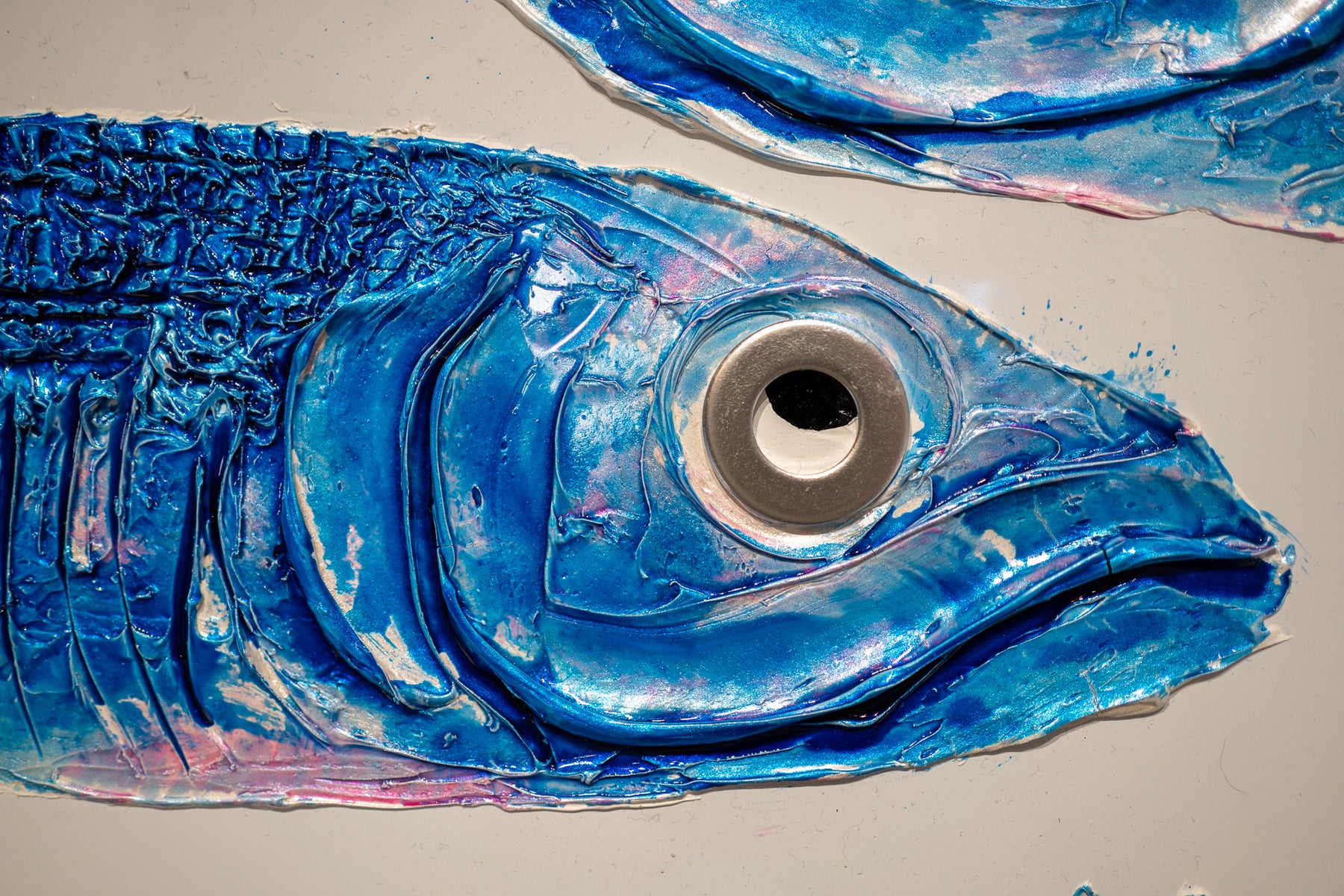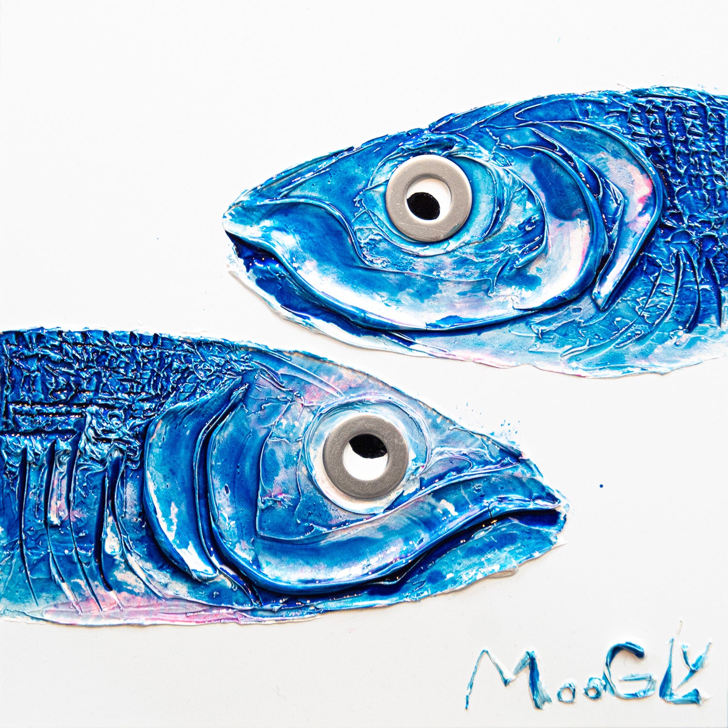 French graphic designer, illustrator, and painter Moogly creates semi-abstract "humanimal" portraits. His textured, splattered animals have oddly complex human expressions from bewilderment to apathy. Using acrylic, lacquer, and resin, he positions the monochromatic characters against a black void, allowing the eyes, marked by two machine washers, to speak. Moogly is deeply ashamed of the environmental harm caused by humans, so he allows animals to reflect this emotional damage back at us.