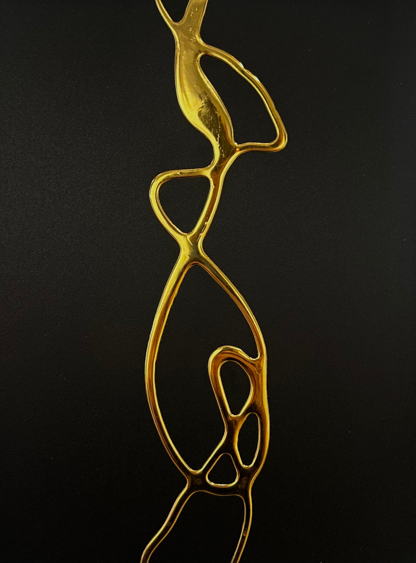 NYC based artist, M. Clark, creates light-reflecting works wherein the artist manipulates heat and pressure to fix metallic foil onto various surfaces -- there is no paint on her artworks, only gold, copper, or silver foil. Clark often uses a palette knife to help texturize her highly reflective, modern and minimalist works of art.