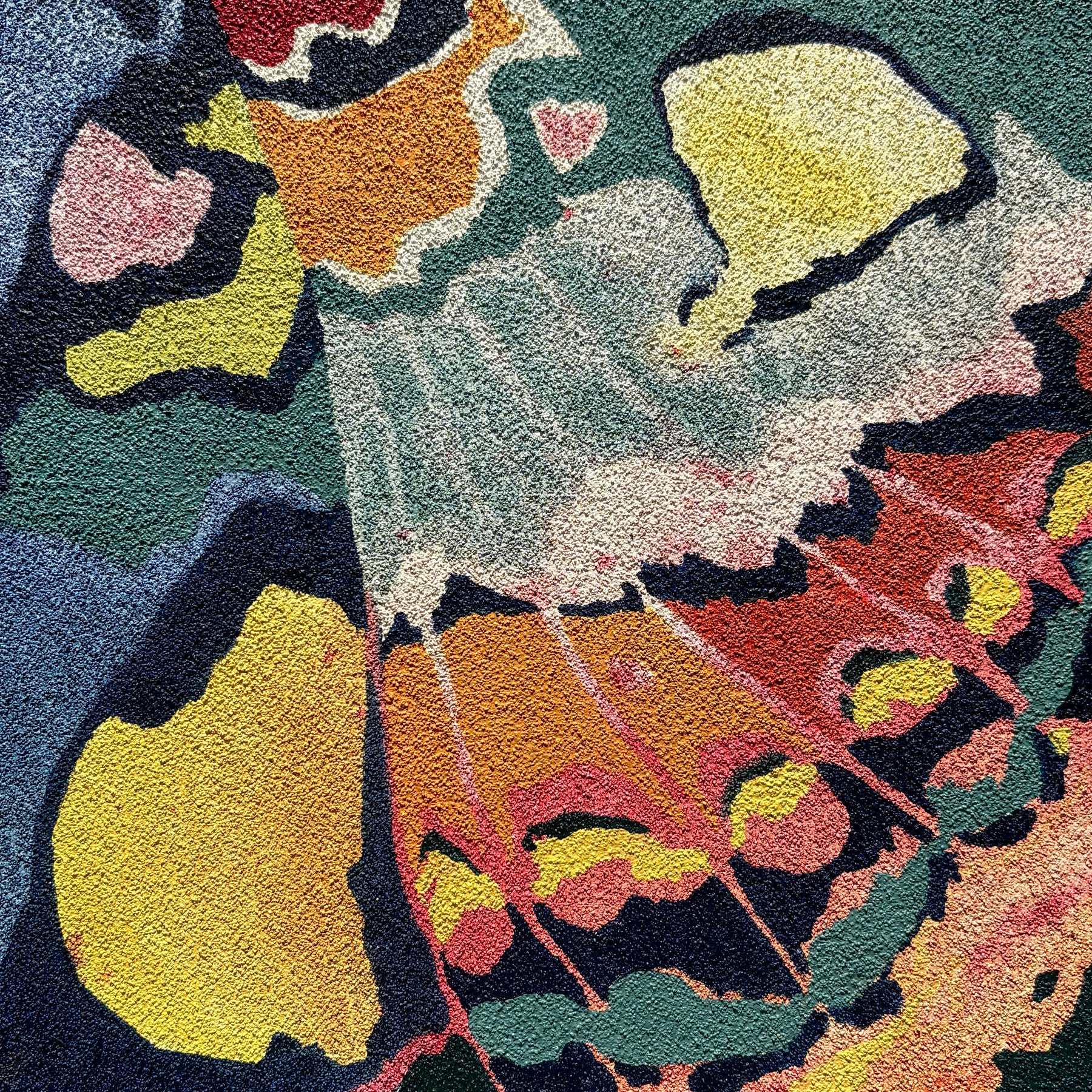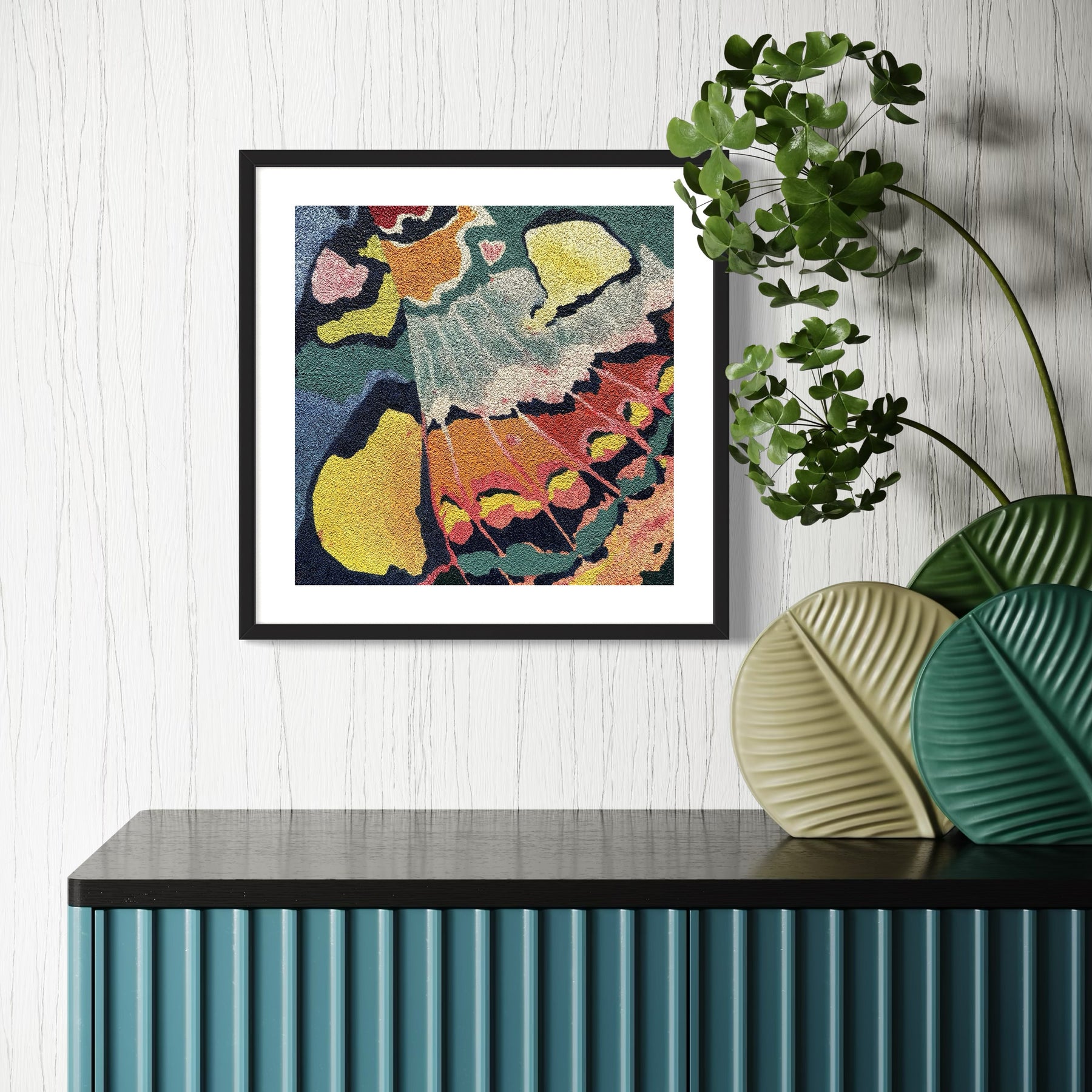 close up view abstracted butterfly insect wing on textured surface multicolor in oil on pumice