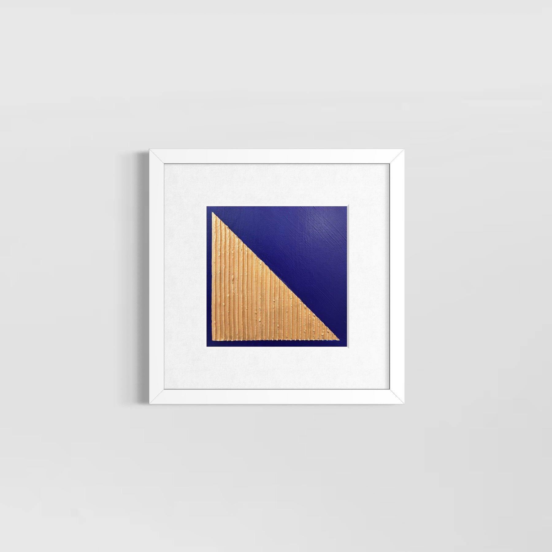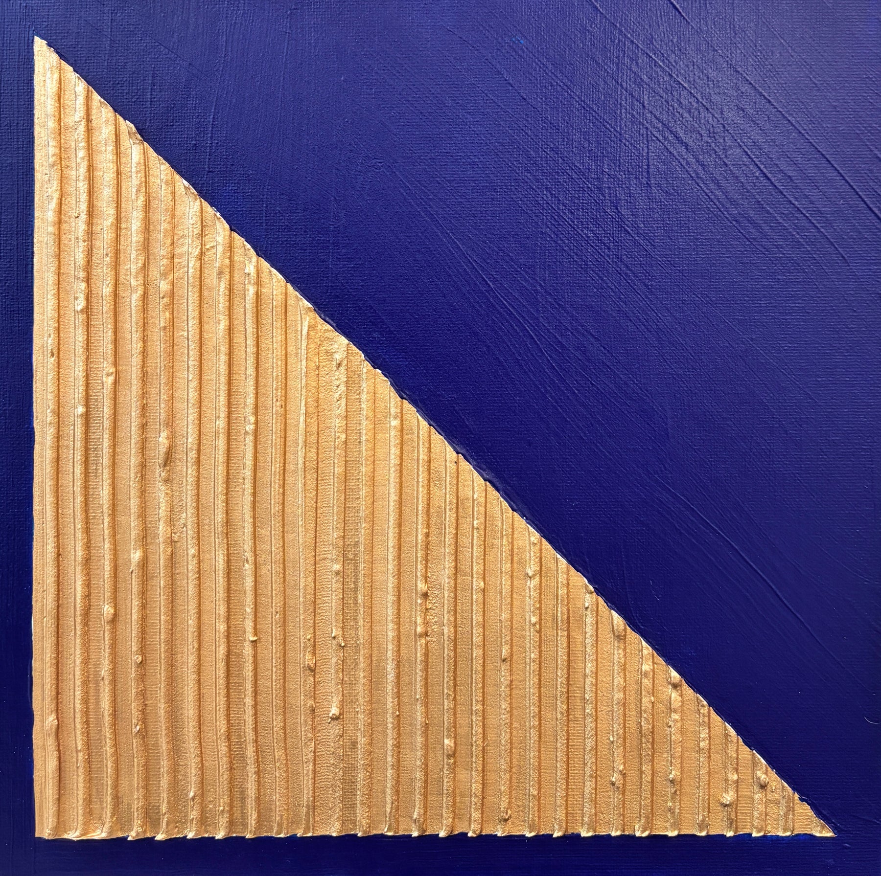 golden striped right triangle joint compound texture on blue background minimal geometric abstract