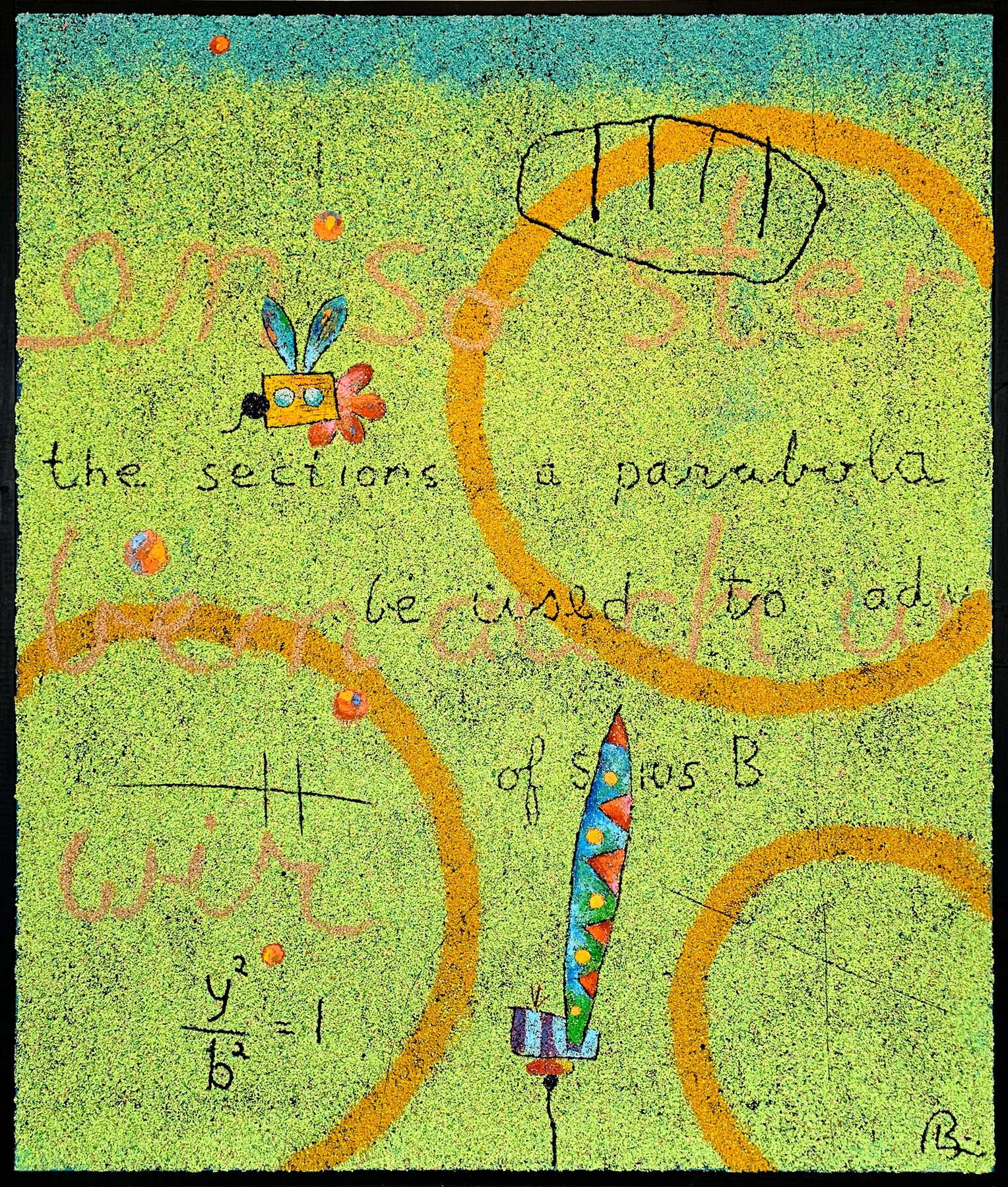 Bob Landström is an artist who primarily works with crushed, pigmented volcanic rock. His abstract paintings, with their highly granulated texture and color combinations, only achieved through such a medium, reconsider our relationship with meaning by eliciting the iconography of ancient languages, science, religions, and mysticism.
