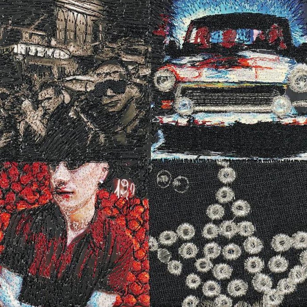 The album series begins with a vintage album sleeve, which serves as the foundation for intricate designs created with a variety of techniques such as yarn embroidery and photorealistic embroidery. Each album is carefully embroidered with over 200,000 stitches, taking more than 8 hours to complete. Upon completion, the album is adorned with embroidered patches and other decorative objects, making each one truly unique.