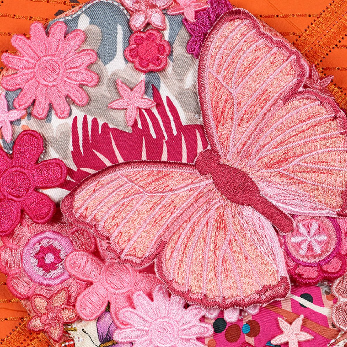 Stephen Wilson expertly crafts extraordinary and timeless designs using sustainable materials. Each art piece embarks on a journey, starting with an up-cycled luxury bag, box, silk scarf, or album. Wilson meticulously creates a bespoke embroidery design, delicately intertwining every stitch by hand. Once the design, colors, and elements are meticulously selected, the artistic process advances to the assembling stage. The boxes and bags undergo a mesmerizing transformation, metamorphosing into captivating canvases for Wilson's creations. The embroidery is seamlessly integrated into the chosen medium, unveiling a captivating texture that breathes life into the artwork. Appliqués, patches, and butterflies are individually stitched out, meticulously crafted, and delicately placed on each piece, culminating in a truly distinctive and unparalleled masterpiece. Finally, each artwork is beautifully presented, encased in an acrylic frame, ready to enchant all who behold it.