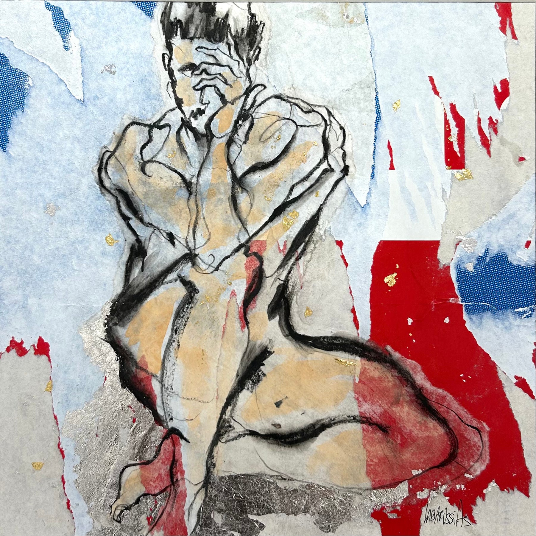 French figurative artist Corinne Labarussias seeks to reveal human desire and form in her delicate watercolor, charcoal, and gold leaf nudes. These totally unique romantic portraits offer a lens of distortion that resists convention. Her characters are erotic and psychological, beautiful and raw. Labarussias conceives of her drawings as a spontaneous dance, with rhythm and movement, captured in a moment, then frozen in time. Her use of recycled materials like old magazines and handmade paper texturize her work in a powerful multi-dimensional way.