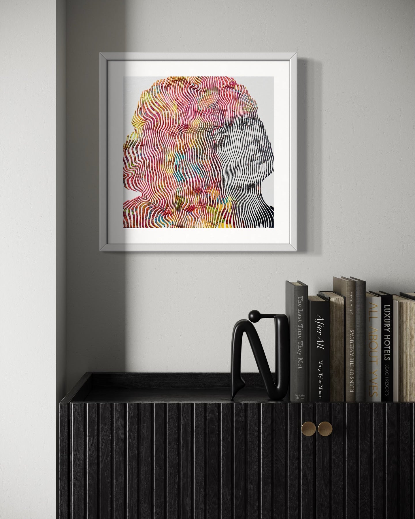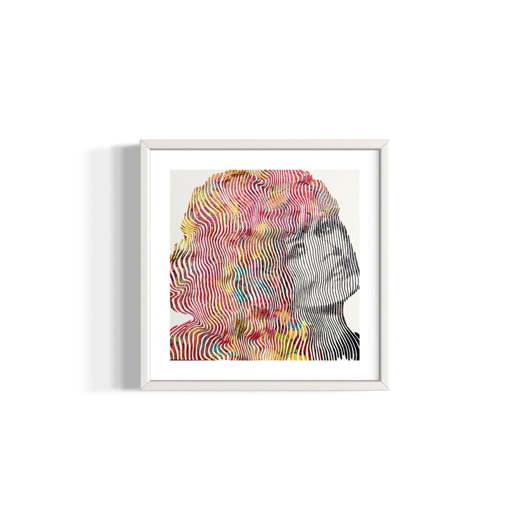 Virginie Schroeder's work is a mix of pop, street, and kinetic art that pays homage to contemporary icons. Her paints are applied with a knife, brush, and syringe that are delicately blended to bring out colorful details full of depth. Her work is conceived line by line; painted, and sculpted with patience and a lot of passion. This series is inspired by the kinetic art movement which allows us to experience the work from several angles.