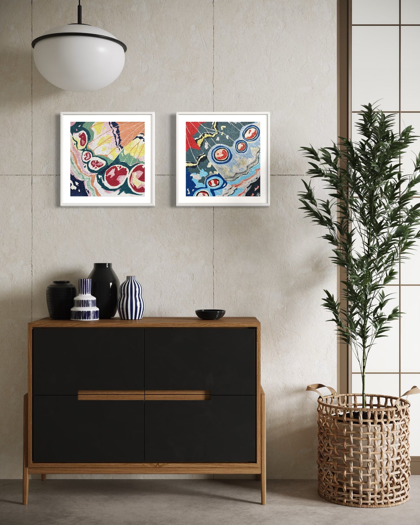 • Size: 14" x 14" original painting in a 17" x 17" white window matting