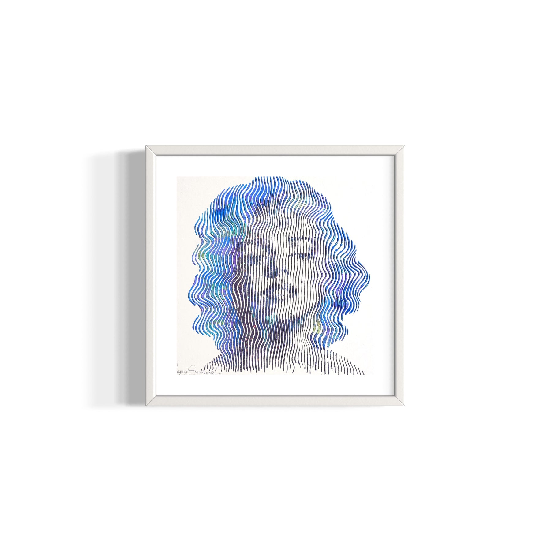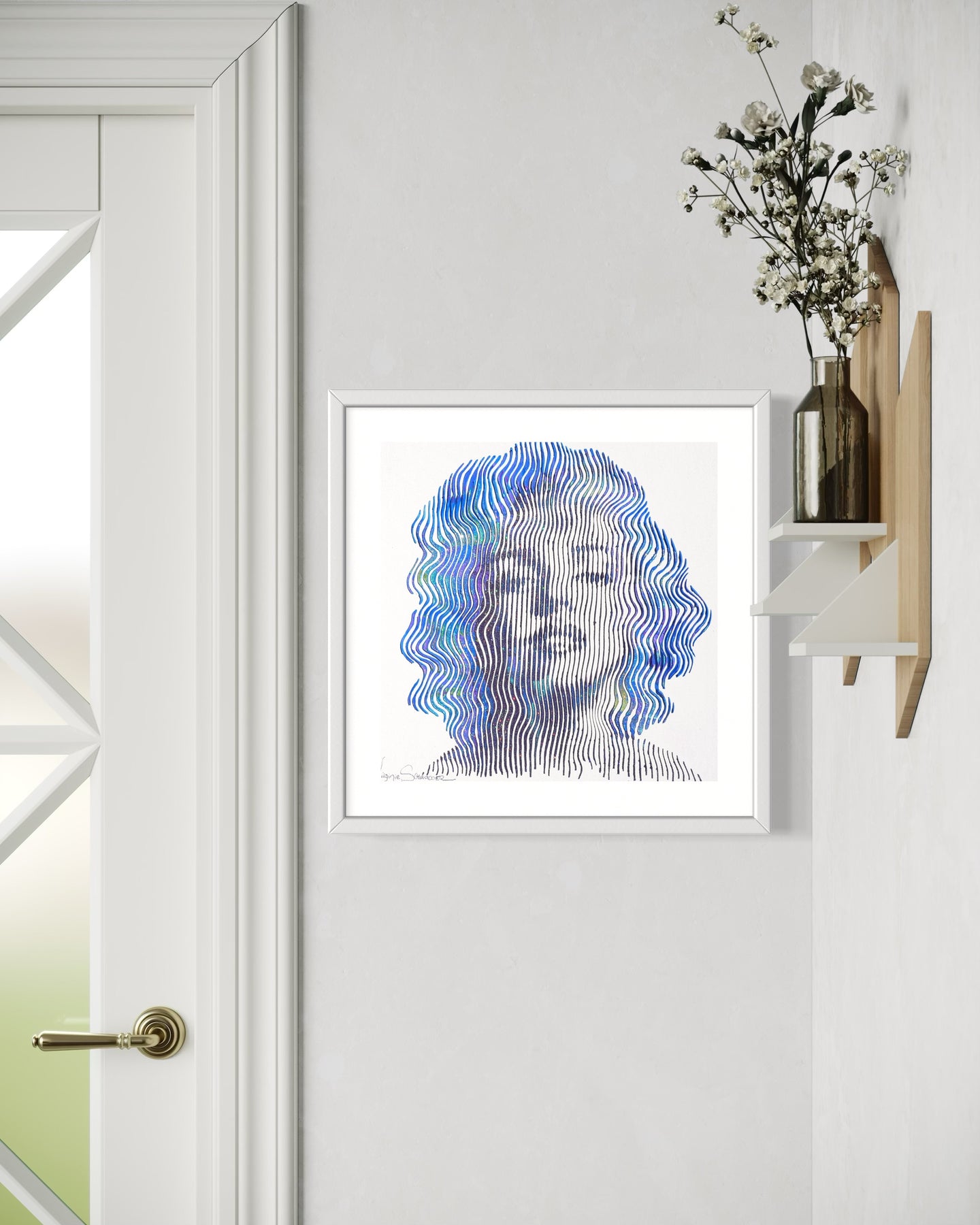 Marilyn Monroe hollywood actress female portrait optical line work figurative in acrylic and oil