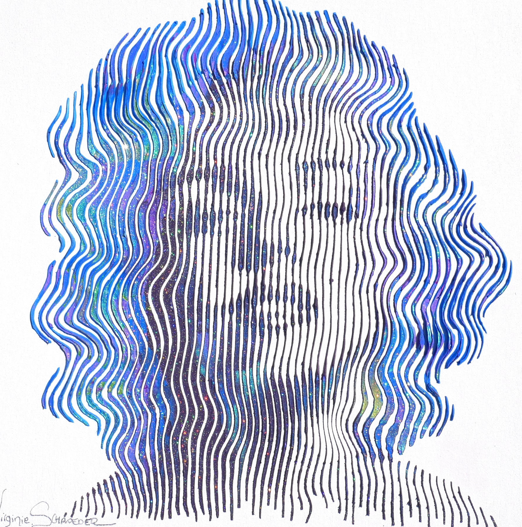 Virginie Schroeder's work is a mix of pop, street, and kinetic art that pays homage to contemporary icons. Her paints are applied with a knife, brush, and syringe that are delicately blended to bring out colorful details full of depth. Her work is conceived line by line; painted, and sculpted with patience and a lot of passion. This series is inspired by the kinetic art movement which allows us to experience the work from several angles.