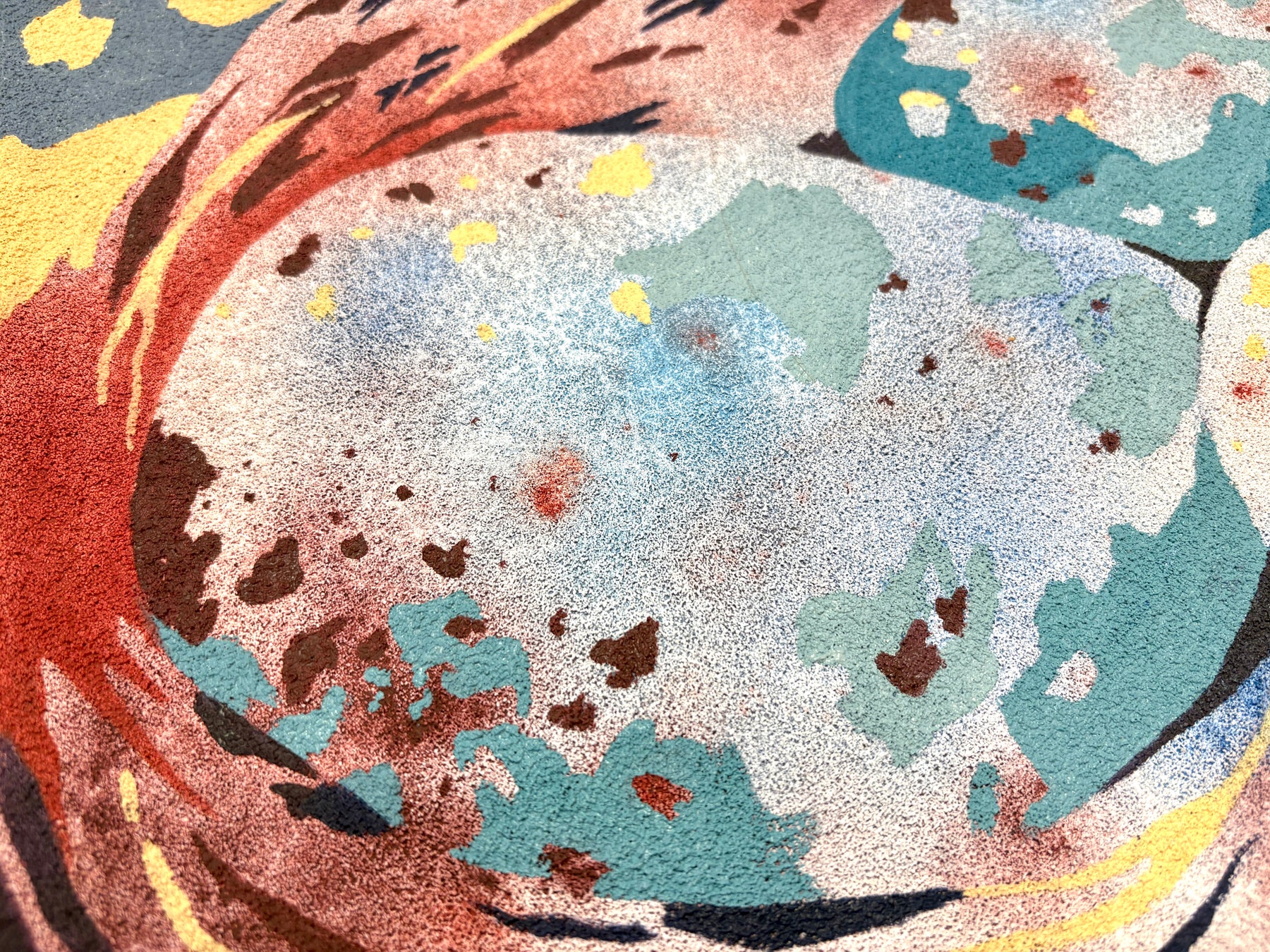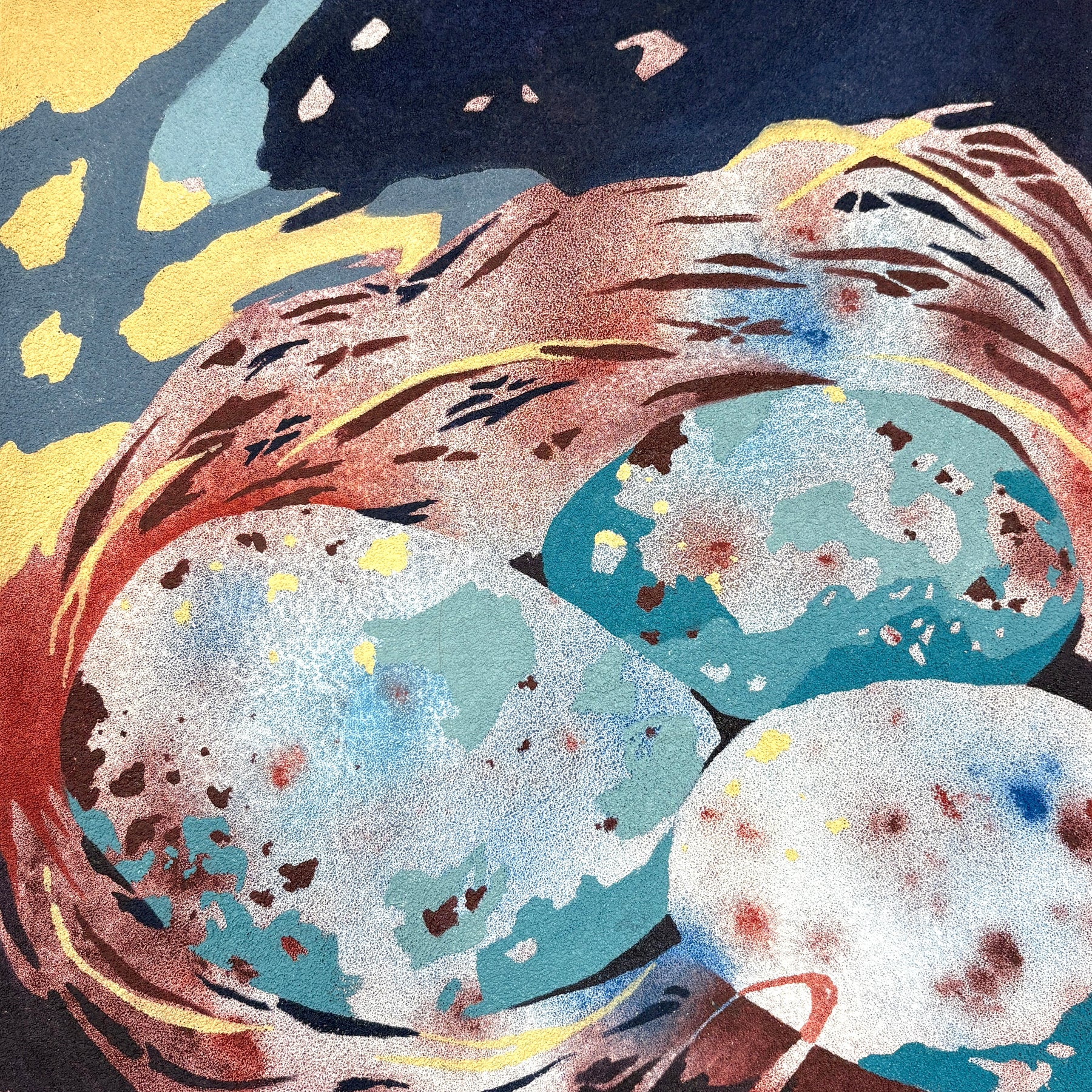 Erin Touey’s work straddles the line between abstraction and representation in her new series of pumice-primed canvas oil paintings. Touey utilizes fluid shapes, variation of line weight, non representational color, distortion of perspective, and in this series, the texture of the pumice primed canvas to bring her often tangible subject matter into the abstract realm. With a limited palette consisting only of Phthalo Blue, Cadmium Yellow, and Quinacridone Magenta, Touey challenges herself to mix all of her colors. The white of the canvas is preserved deliberately, the negative space making shapes that sometimes jump forward or fall back.