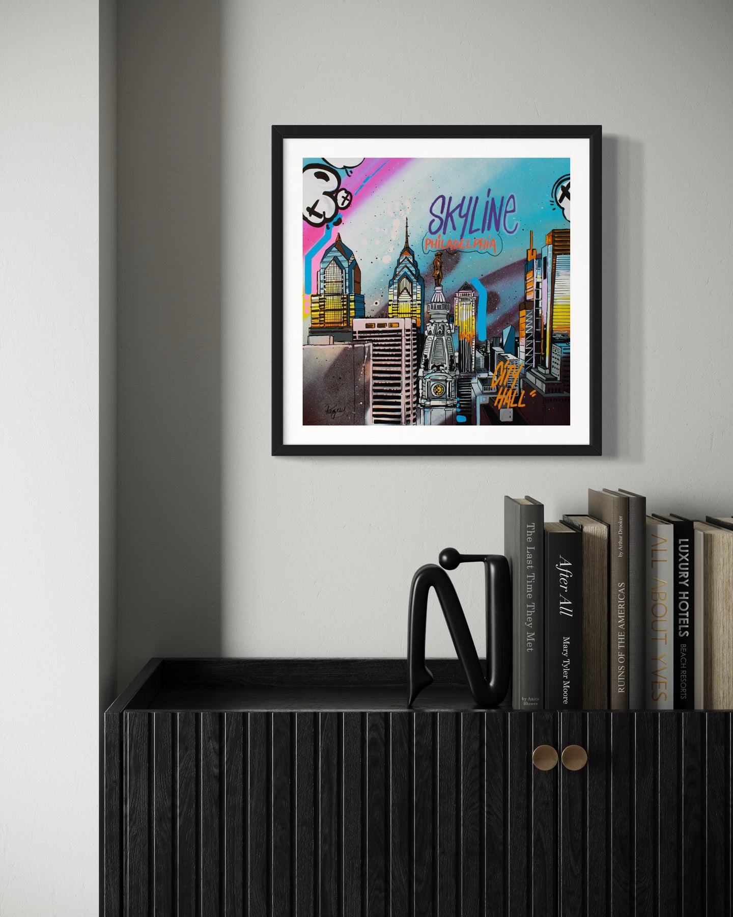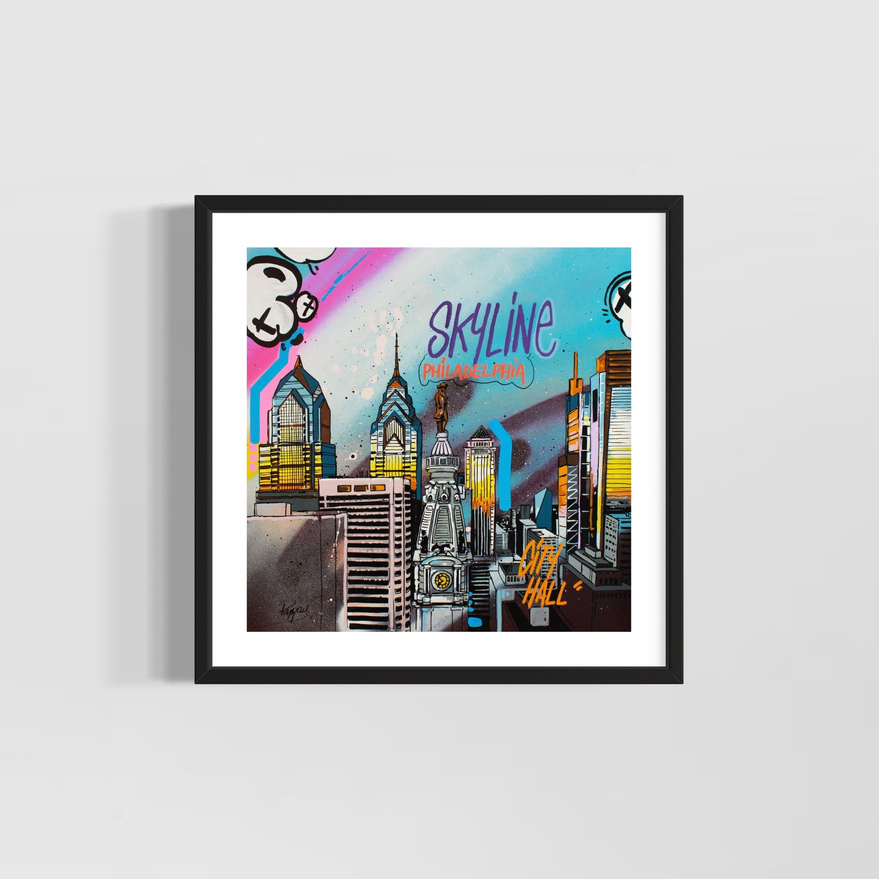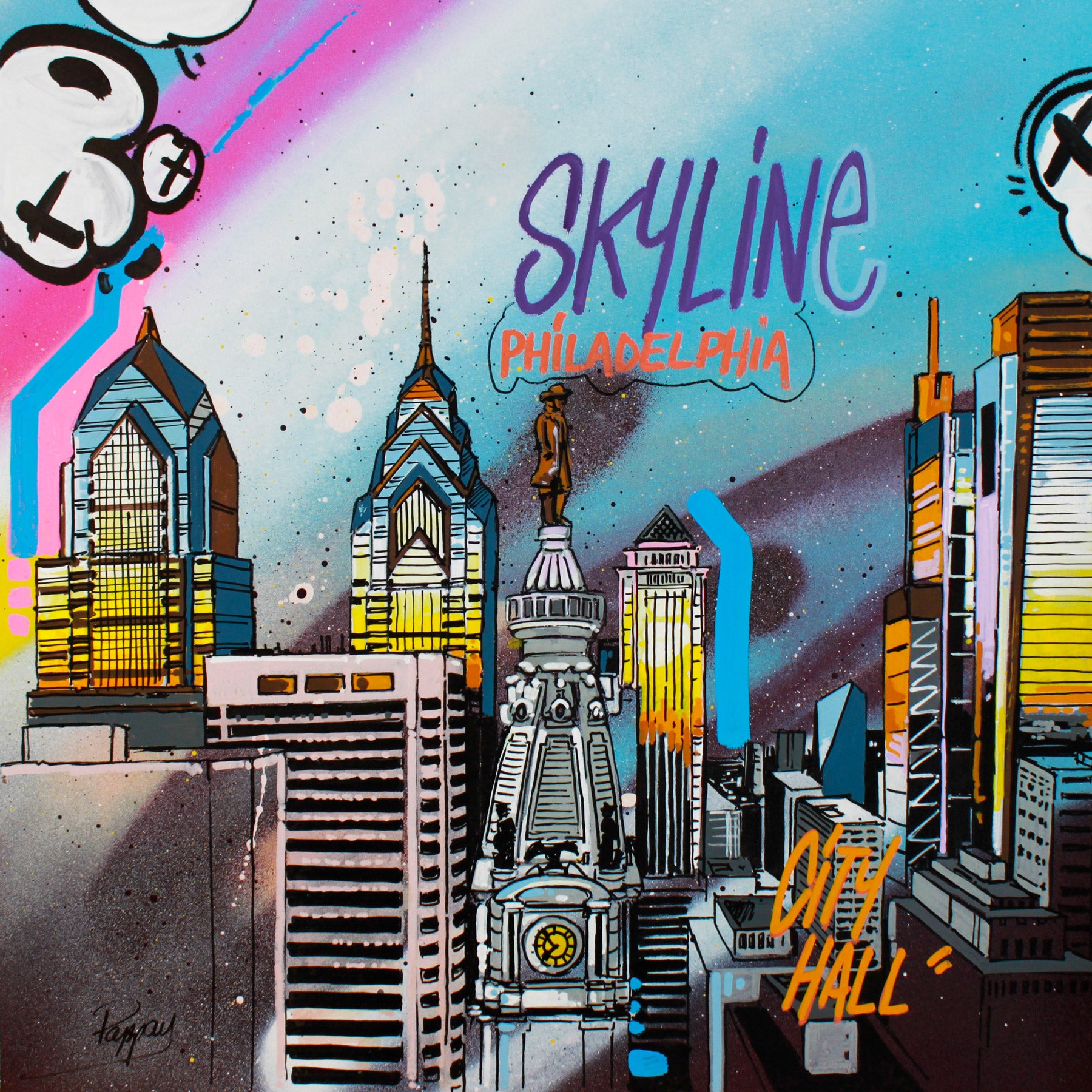 Philadelphia building urban graphic landscape graffiti marker style City hall center downtown philly skyscraper Love sculpture park skyline