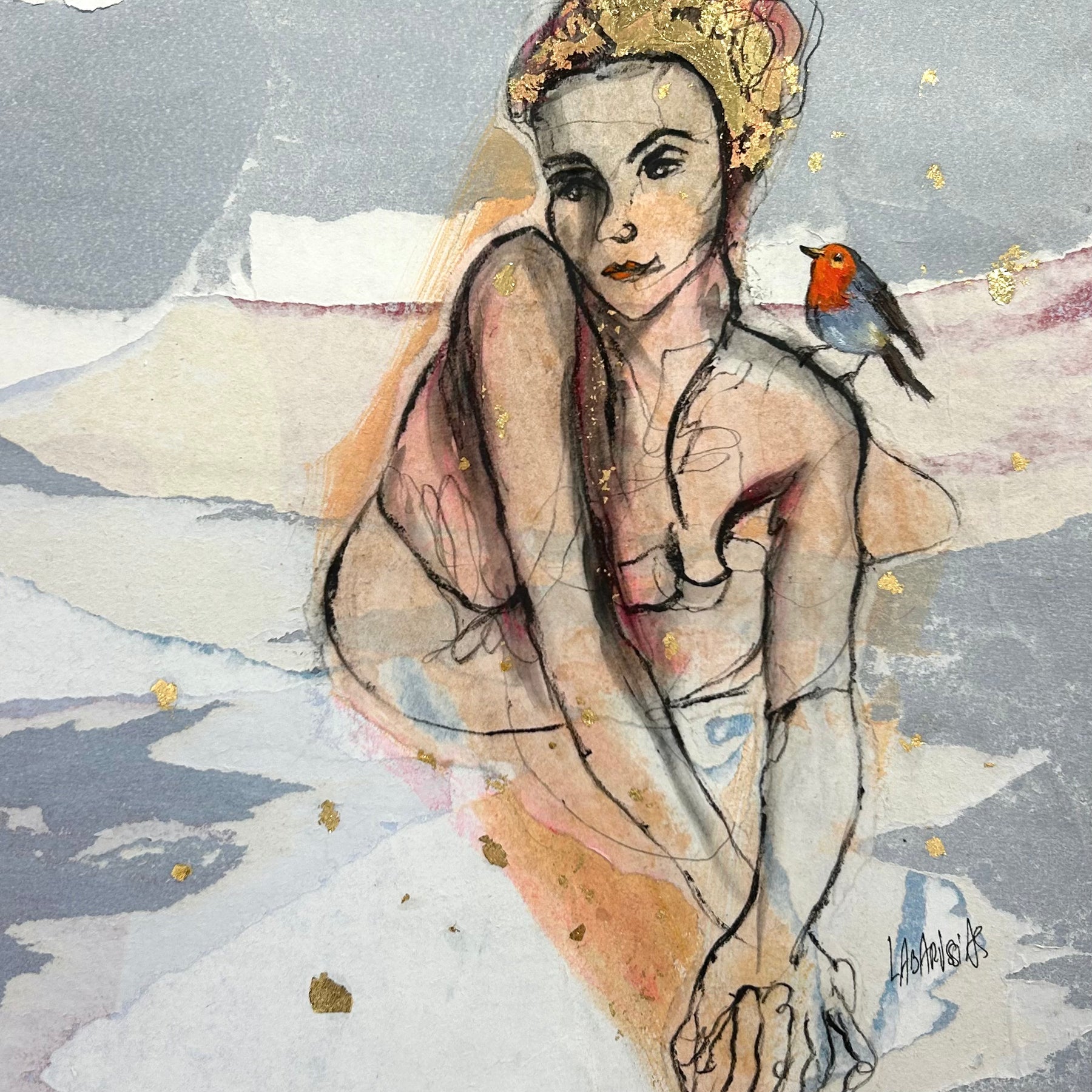 Figurative, Femme, Female Form, Feminine, Gold, Bird, Female Nude