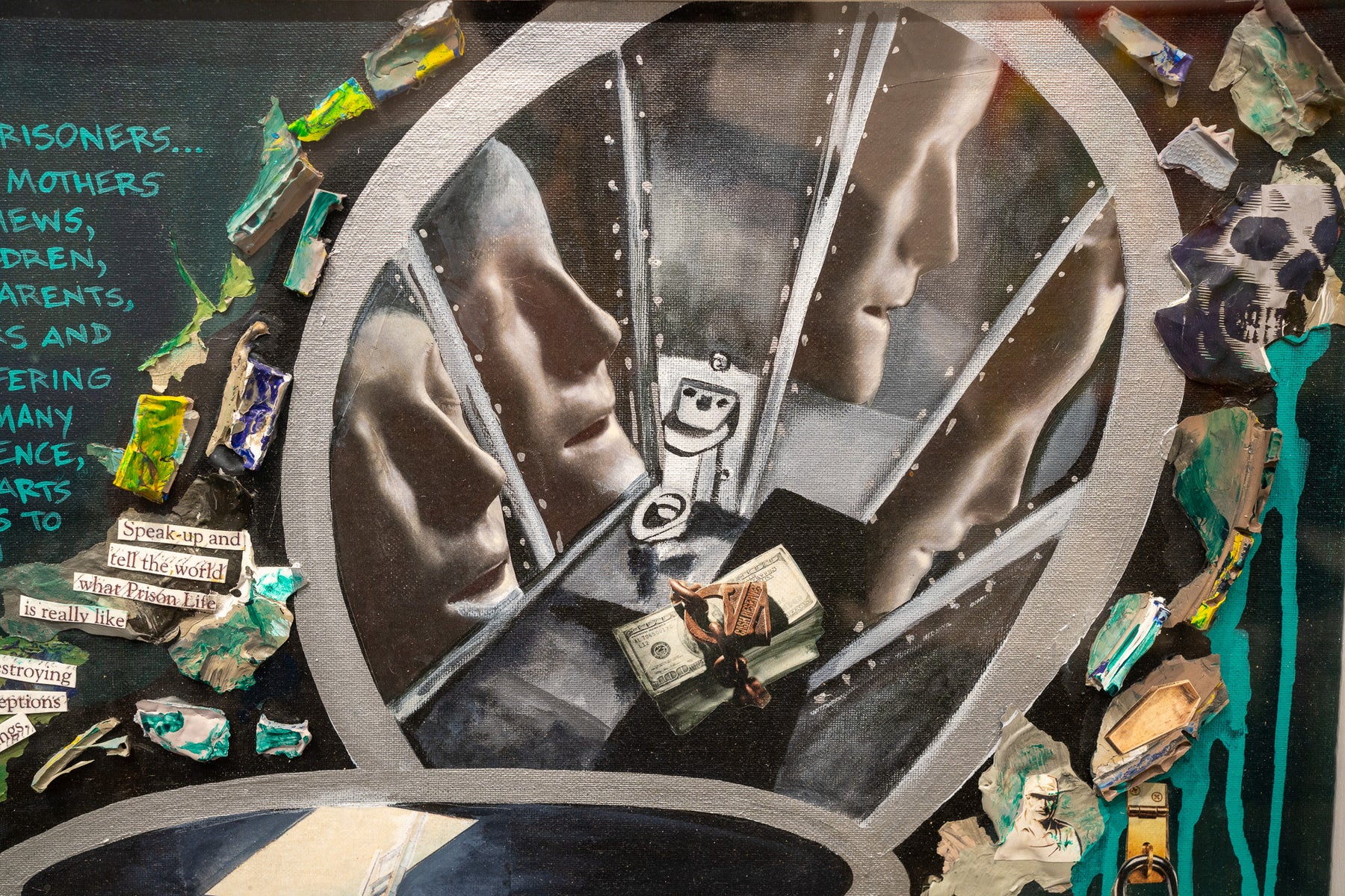 • Chip paint, banned Timberland shoe laces, notebook wire, acrylic paint, oil paint, paper, frame from Graterford Prison