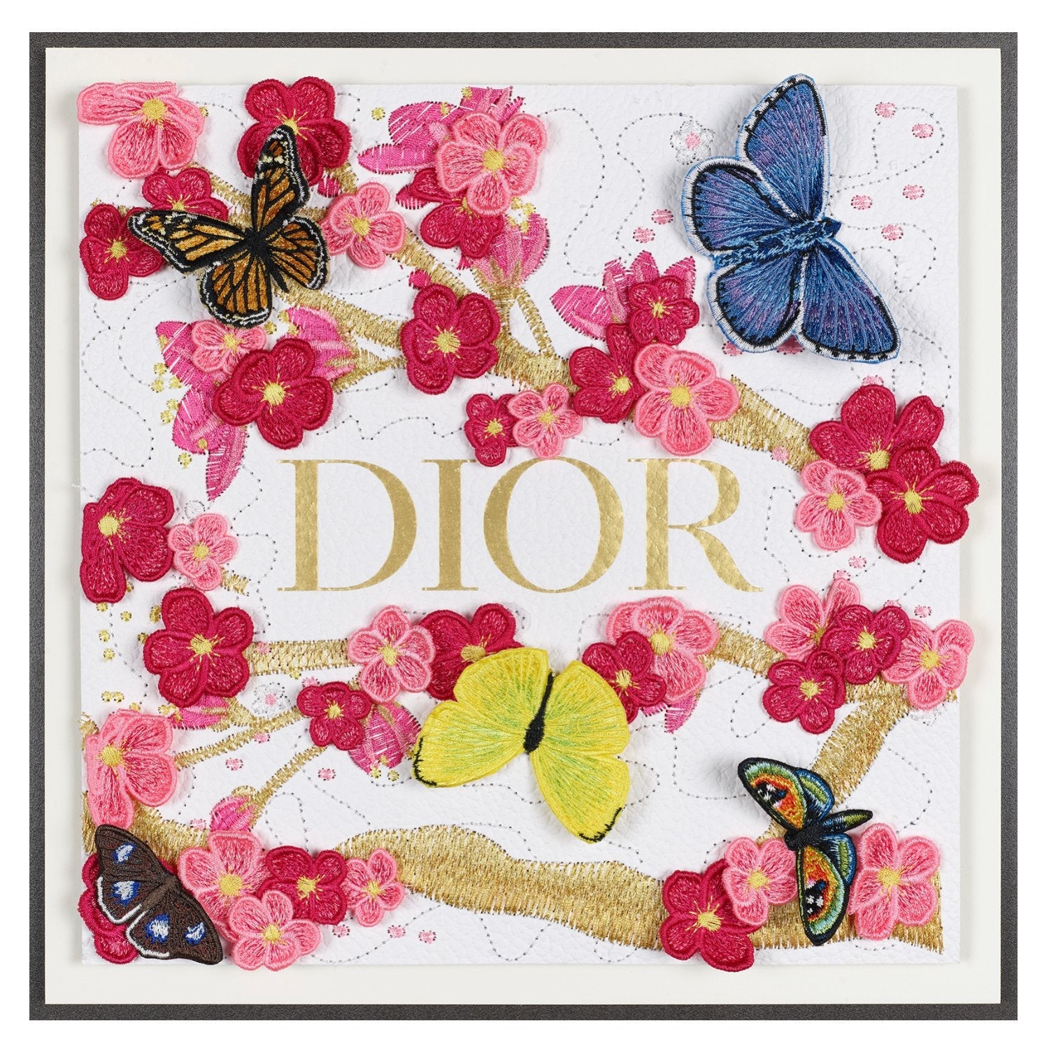 Stephen Wilson expertly crafts extraordinary and timeless designs using sustainable materials. Each art piece embarks on a journey, starting with an up-cycled luxury bag, box, silk scarf, or album. Wilson meticulously creates a bespoke embroidery design, delicately intertwining every stitch by hand. Once the design, colors, and elements are meticulously selected, the artistic process advances to the assembling stage. The boxes and bags undergo a mesmerizing transformation, metamorphosing into captivating canvases for Wilson's creations. The embroidery is seamlessly integrated into the chosen medium, unveiling a captivating texture that breathes life into the artwork. Appliqués, patches, and butterflies are individually stitched out, meticulously crafted, and delicately placed on each piece, culminating in a truly distinctive and unparalleled masterpiece. Finally, each artwork is beautifully presented, encased in an acrylic frame, ready to enchant all who behold it.