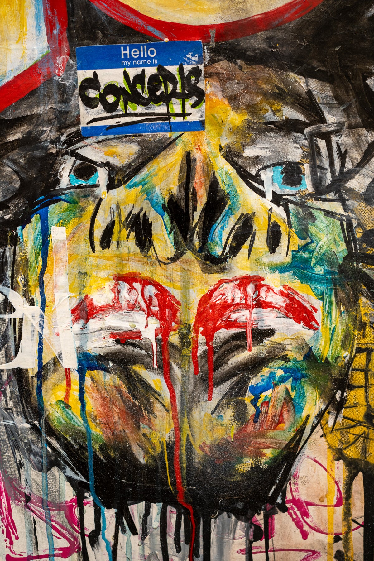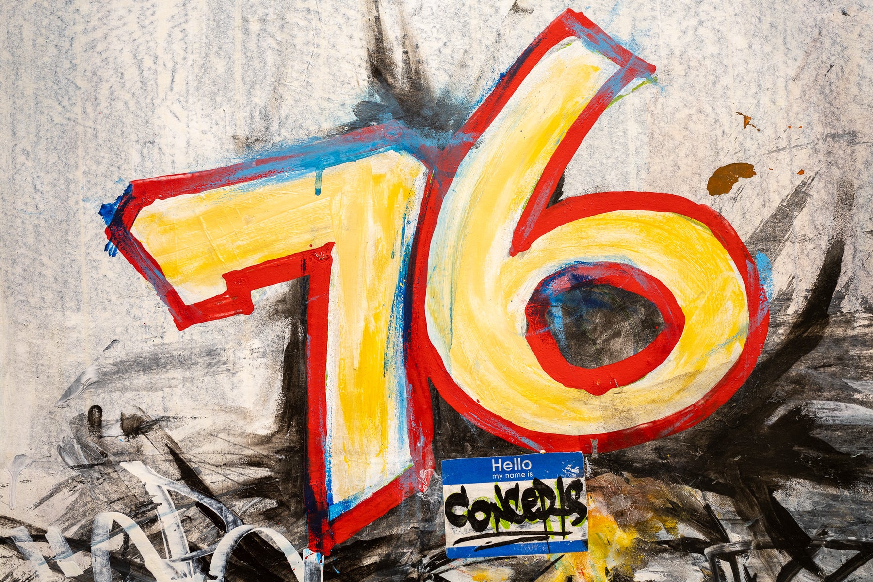 American Graffiti #4 is part of a series created by the artist while in prison. 76 - a central image in the painting, is the year the artist was born. It’s also symbolic of the year America was born. If one looks deeply, poignant dichotomies unravel many deeper layers of the painting’s meaning.