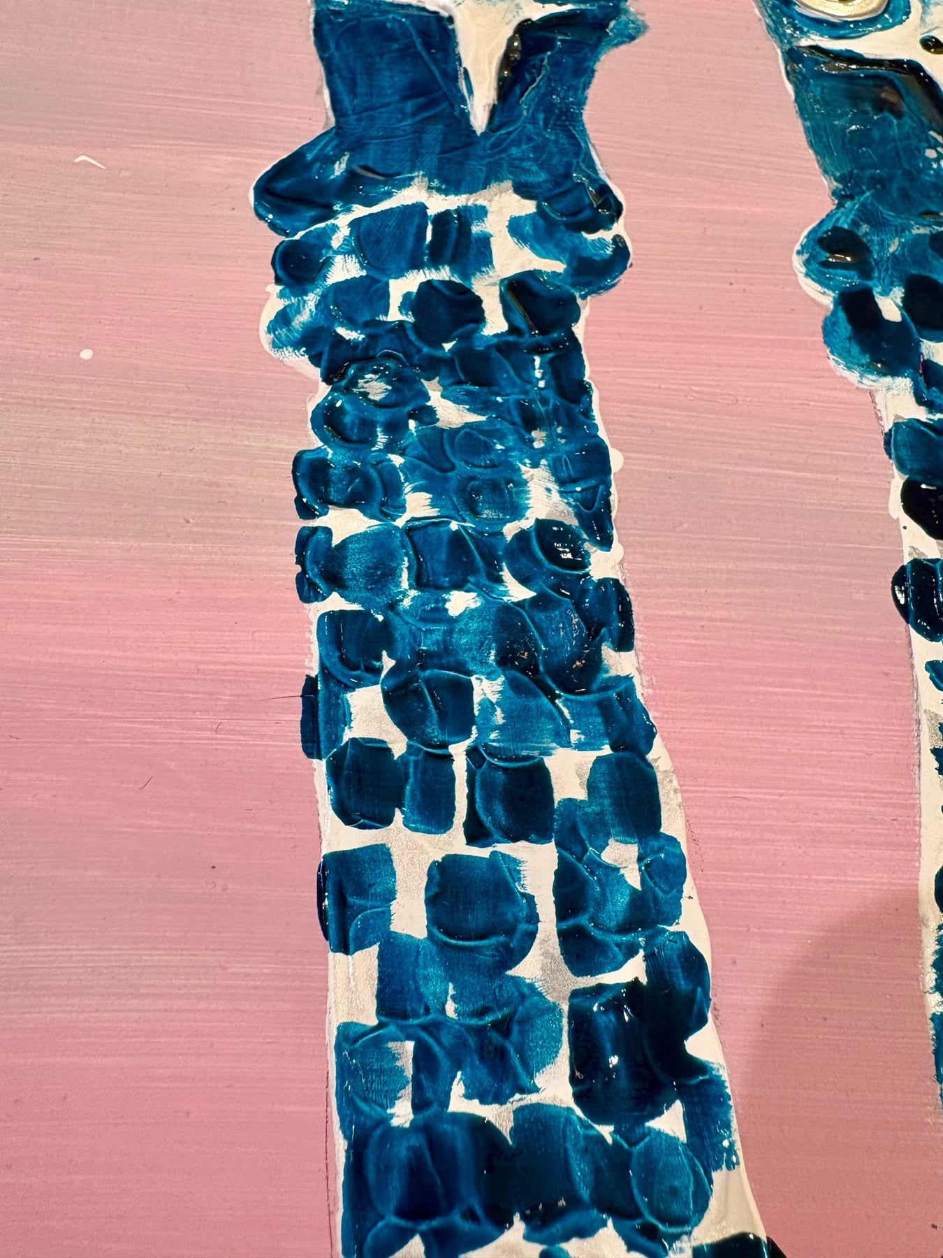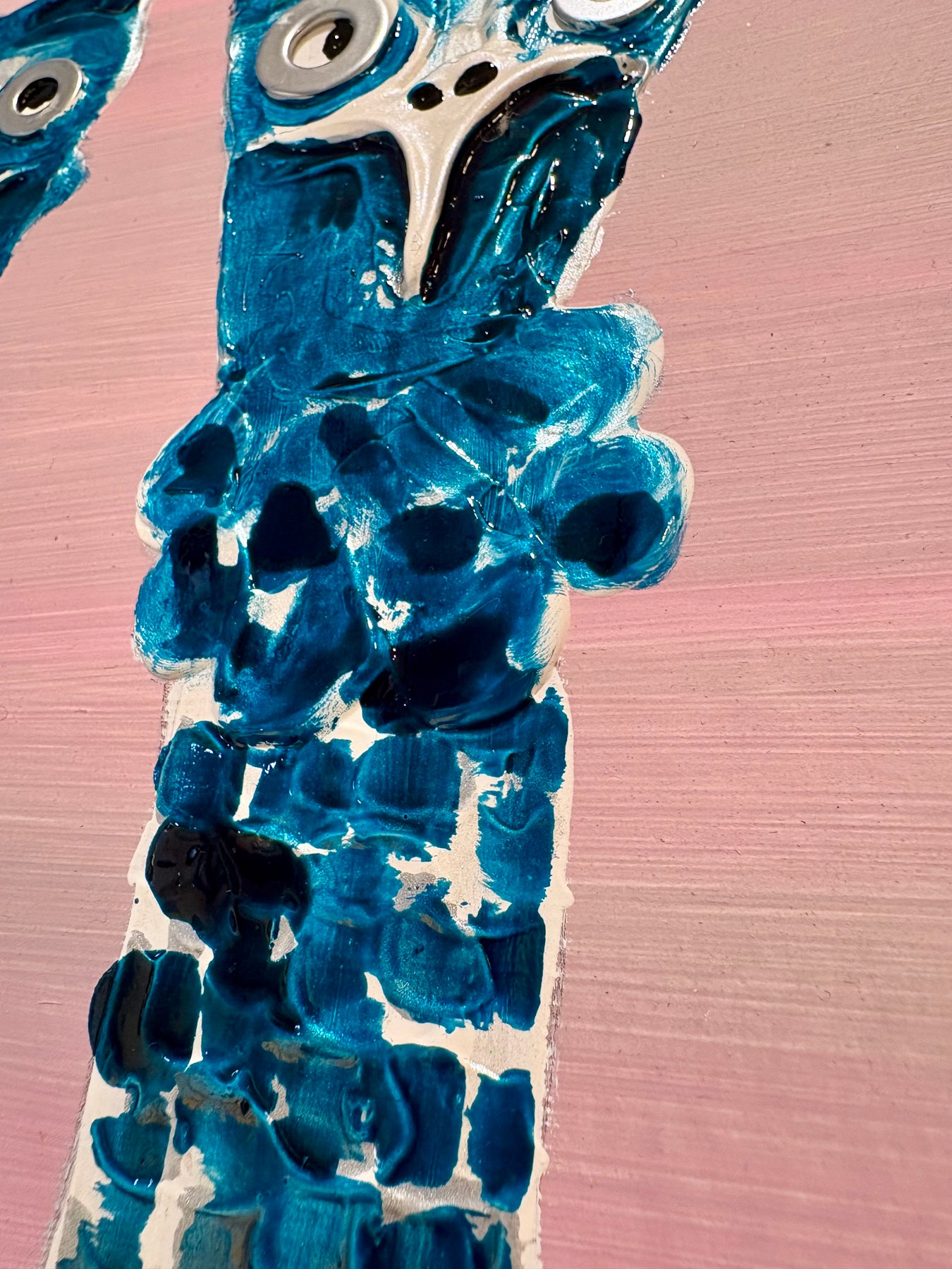 French graphic designer, illustrator, and painter Moogly creates semi-abstract "humanimal" portraits. His textured, splattered animals have oddly complex human expressions from bewilderment to apathy. Using acrylic, lacquer, and resin, he positions the monochromatic characters against a black void, allowing the eyes, marked by two machine washers, to speak. Moogly is deeply ashamed of the environmental harm caused by humans, so he allows animals to reflect this emotional damage back at us.