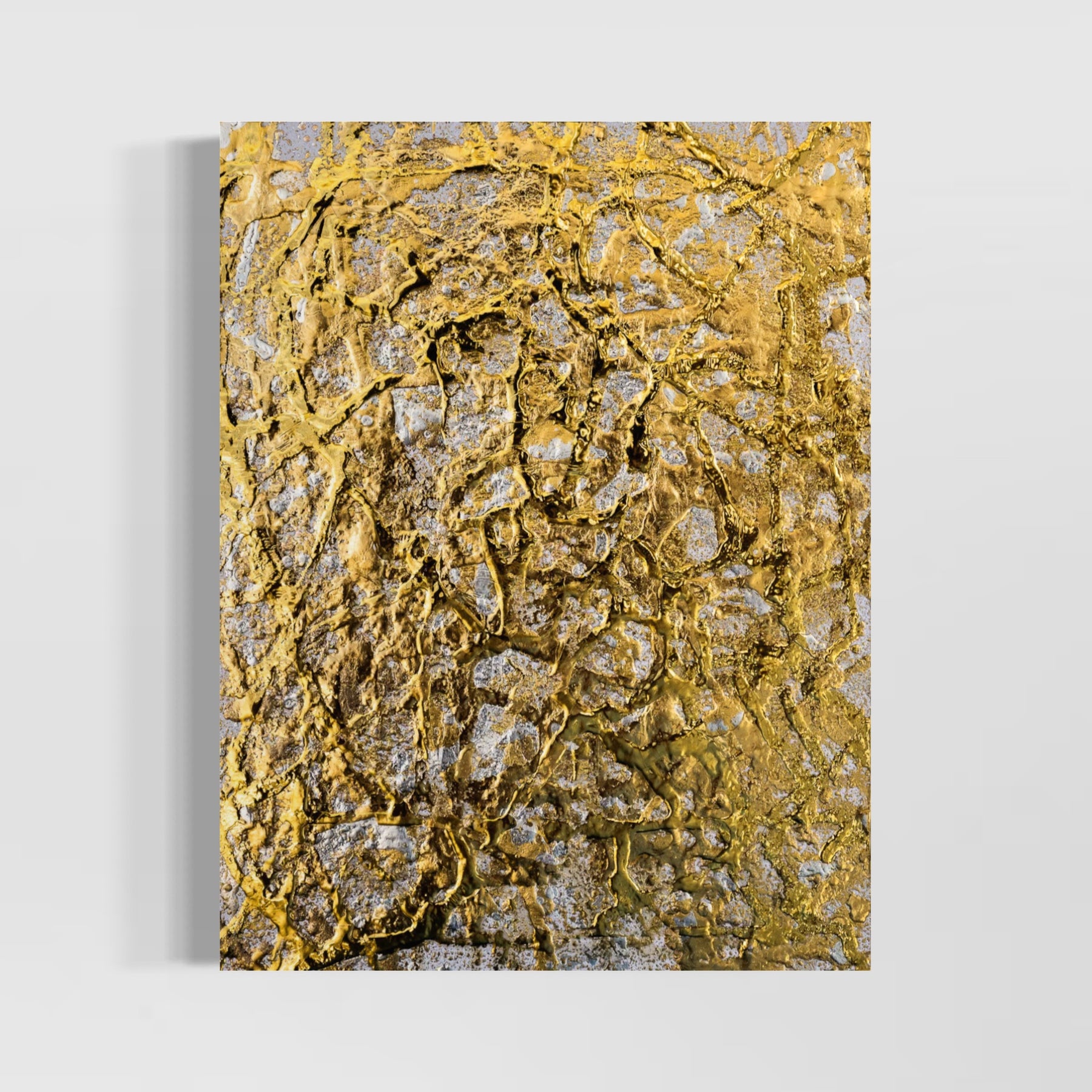 NYC based artist, M. Clark, creates light-reflecting works wherein the artist manipulates heat and pressure to fix metallic foil onto various surfaces -- there is no paint on her artworks, only gold, copper, or silver foil. Clark often uses a palette knife to help texturize her highly reflective, modern and minimalist works of art.