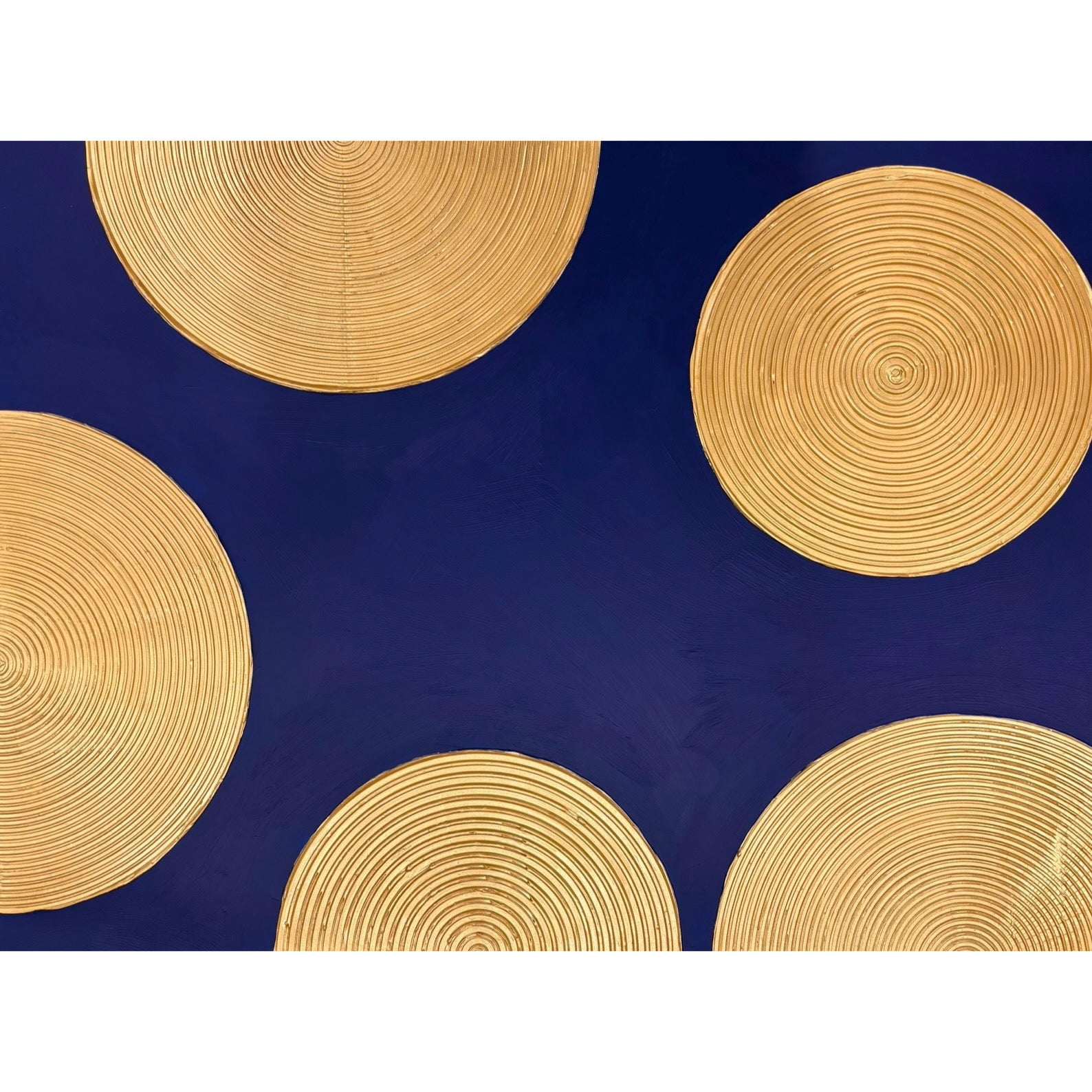 Jerilee, a Philadelphia-based artist working under the name ‘Lee in Cerulean’, creates striking minimalist pieces. For Lee, simple curves, asymmetry, and overlapping forms reflect the beautiful world around us—and find, within our surroundings, the continuity, serendipity, and at times mundane nature of everyday life. Deriving from the Japanese Wabi-Sabi philosophy’s embrace of imperfection, highly textural pieces show Lee’s freeform strokes, using a blend of joint compound, acrylic paint, and a myriad of other media. Under this philosophical orientation, ridges and built-up materials are a reminder that we continue to evolve, just as nature does.