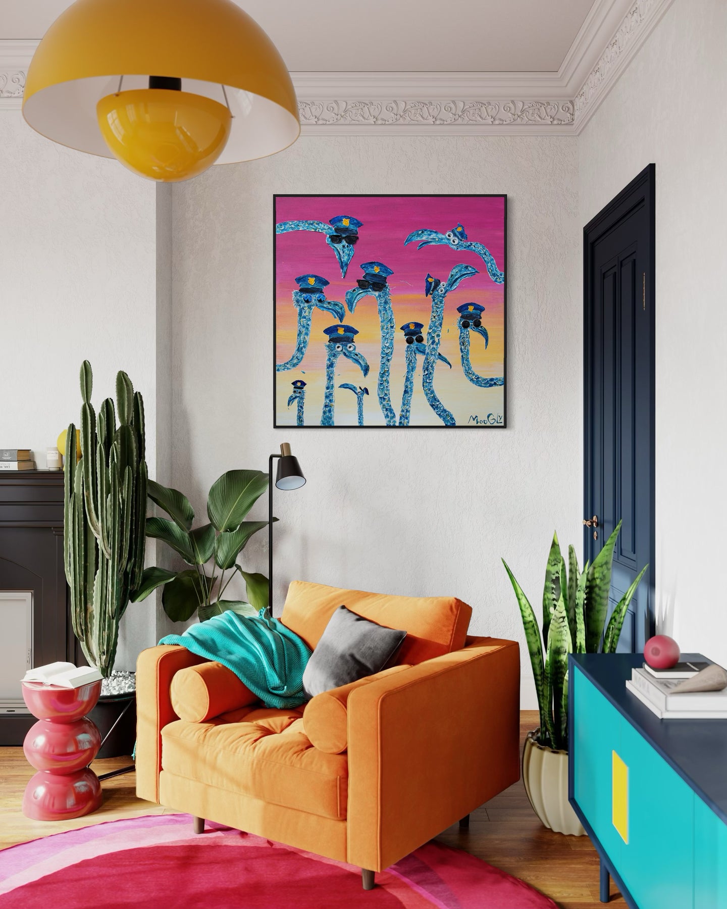 Morton Contemporary Gallery is proud to host the American debut exhibition of the French humorist painter, Moogly. Titled, THE LIGHT SIDE, this abundantly joyful show radiates not just levity and humor, but a profound depth worth exploring. Moogly is an environmentalist, a vegan, and a committed animal rights activist. Deeply pained by the loss of animal populations as a result of environmental degradation, Moogly uses his artwork as a tool of hope to foster new connections between people and the animals they have so carelessly destroyed. He does this by imbuing his characters with a hilarity that the viewer can’t help but love. At his core, the artist wants people to care for their natural world, and he believes his art is one small way he can foster more love from humans for the beautiful natural world we live in.