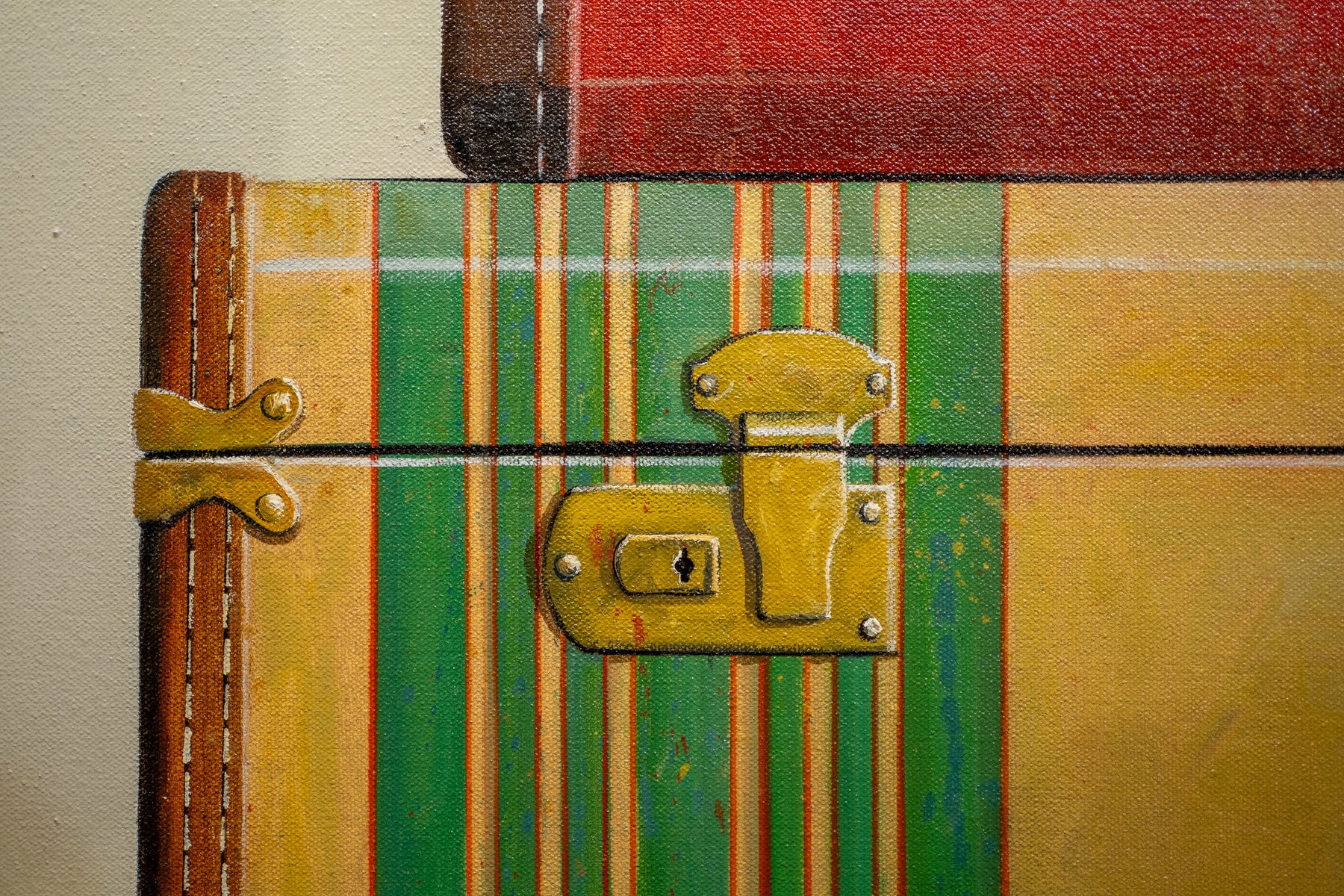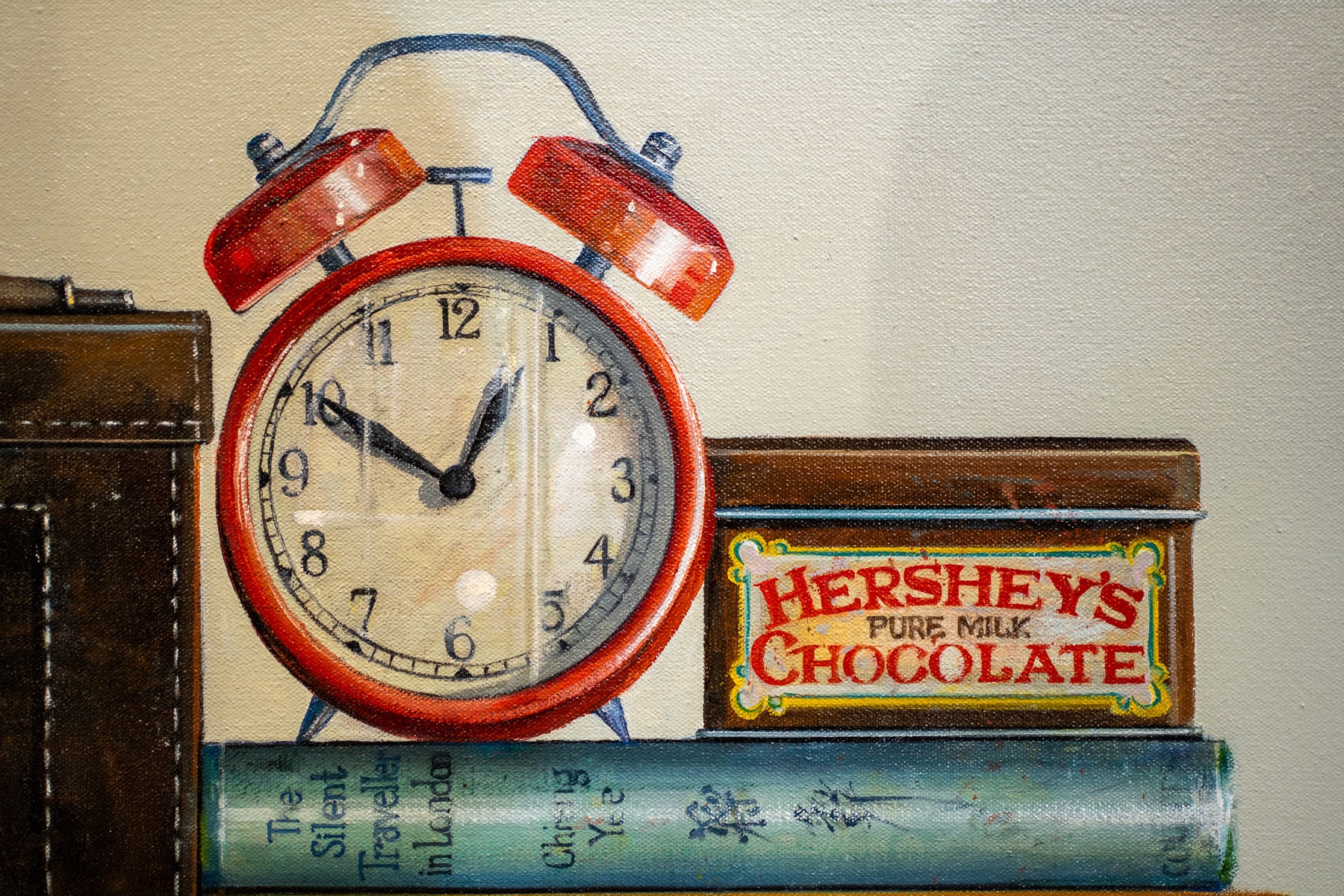 In her gorgeous photo-realistic still-lifes, American oil painter Wendy Chidester pays homage to lost relics of the past. Artifacts like vintage cameras and projectors, 40’s trunk luggage, bubblegum machines, childrens’ pedal cars and tricycles, and old telephones and typewriters are represented nostalgically in her work. She frames these objects as icons, memorializing the color and ingenuity of the past.