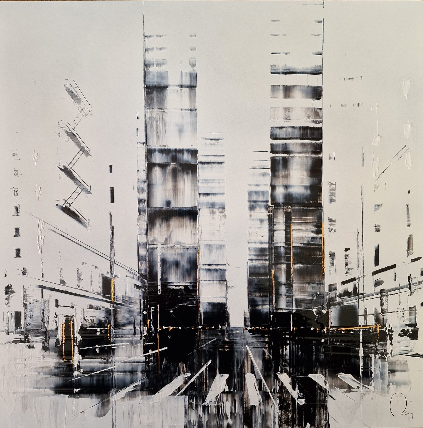 Julien Rey's story begins like all great stories: with an impossible dream. With achromatopsia (the absence of color vision), the artist sees only in black and white. Yet, this condition did not prevent him from traveling to the borders of Burma, from changing his life (he became a Buddhist monk), or from embarking on his art. From his trip to Burma, he brought back a perfect mastery of gold leaf and Chinese lacquer, a characteristic element in his work. His technique based on lacquer worked with a knife and gold leaf inlays places light at the center of his works. Marked by Zen philosophy, he creates minimal compositions that appear as suspended moments and poetic pauses. Julien Rey takes us on a journey through his paintings to urban landscapes and far-off lands.
