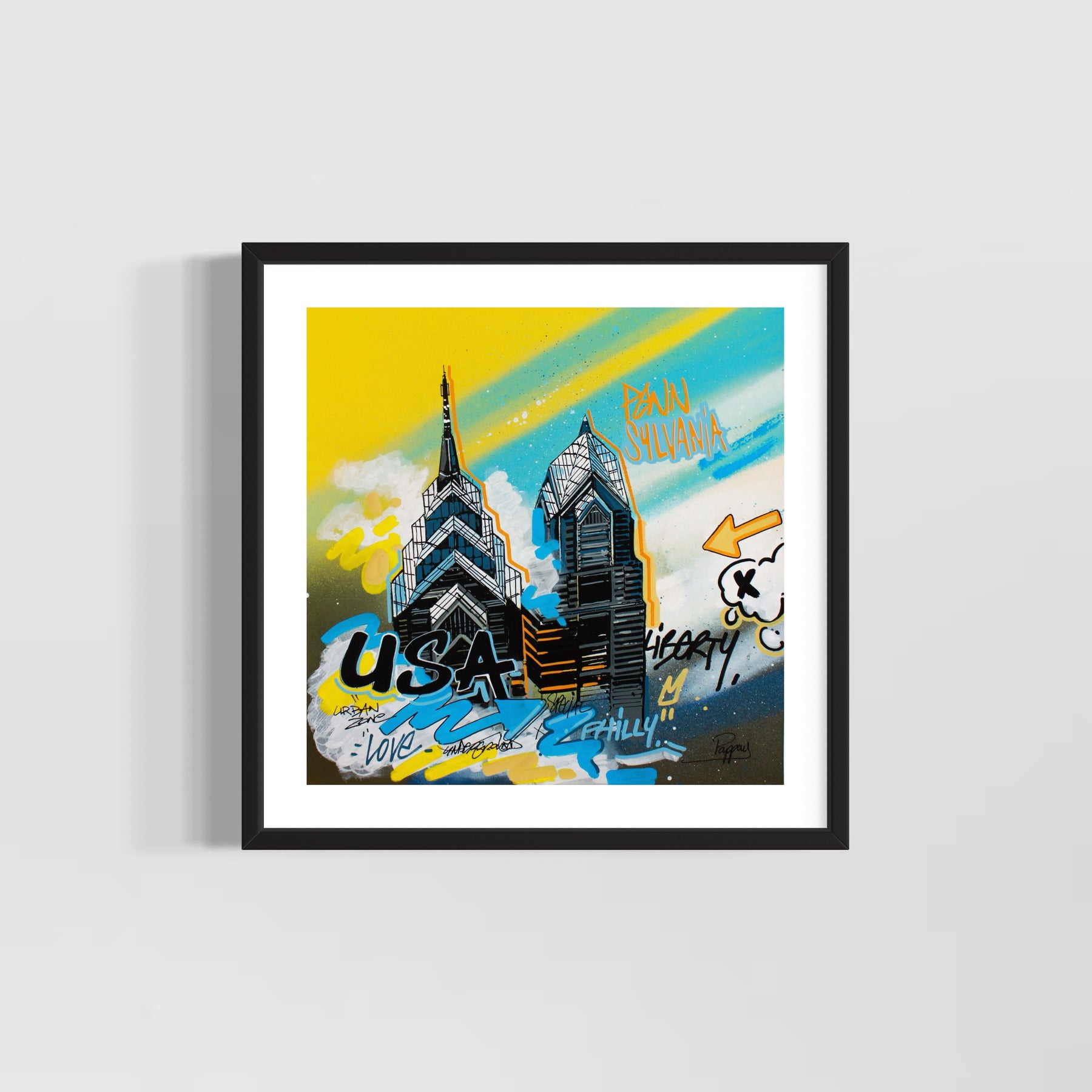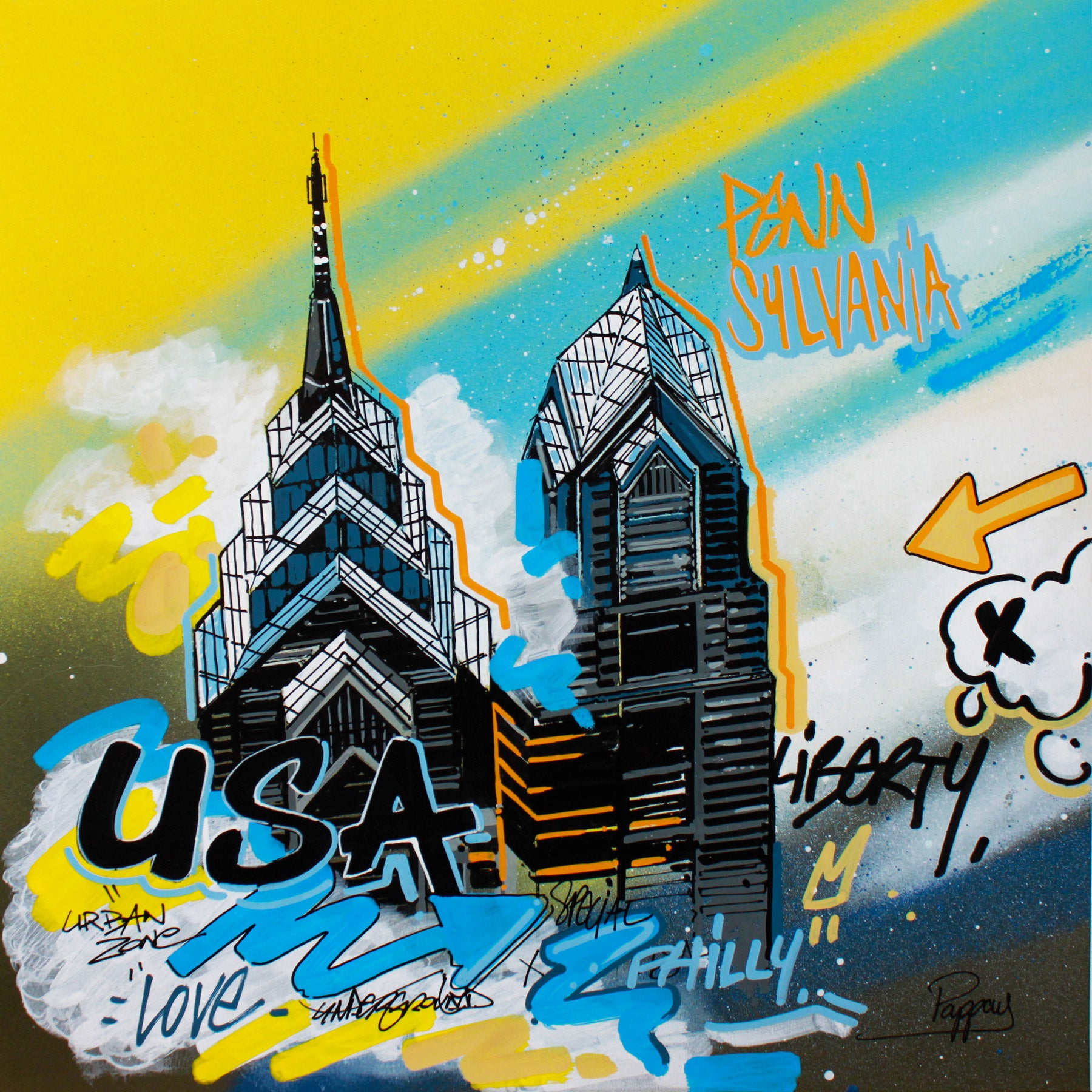 Philadelphia building urban graphic landscape graffiti marker style City hall center downtown philly skyscraper
