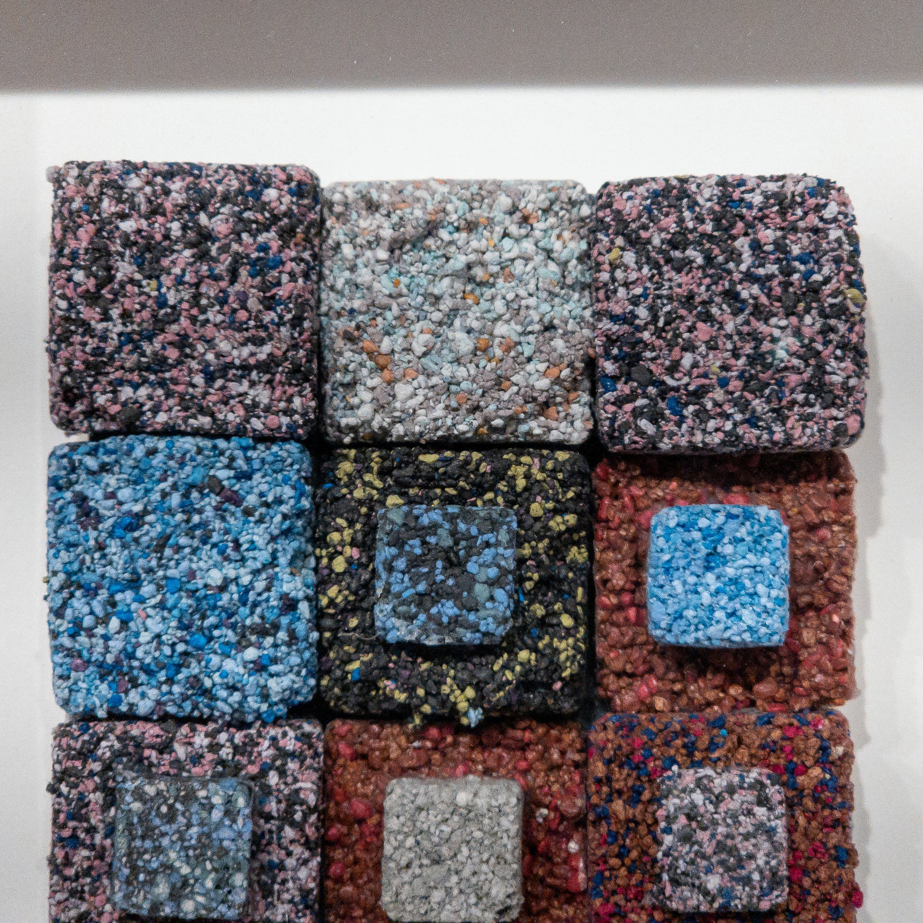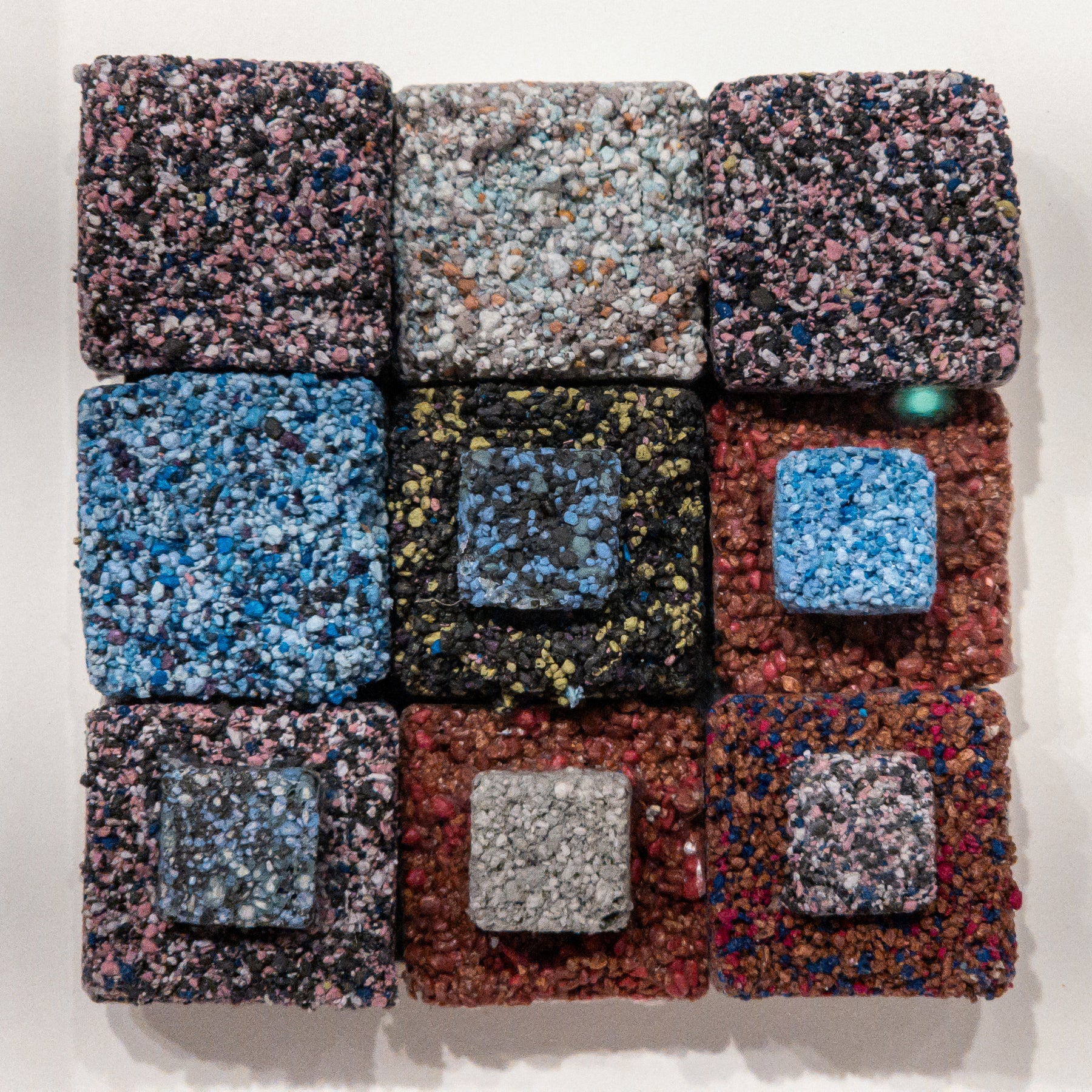 Bob Landström is an artist who primarily works with crushed, pigmented volcanic rock. His abstract paintings, with their highly granulated texture and color combinations, only achieved through such a medium, reconsider our relationship with meaning by eliciting the iconography of ancient languages, science, religions, and mysticism.
